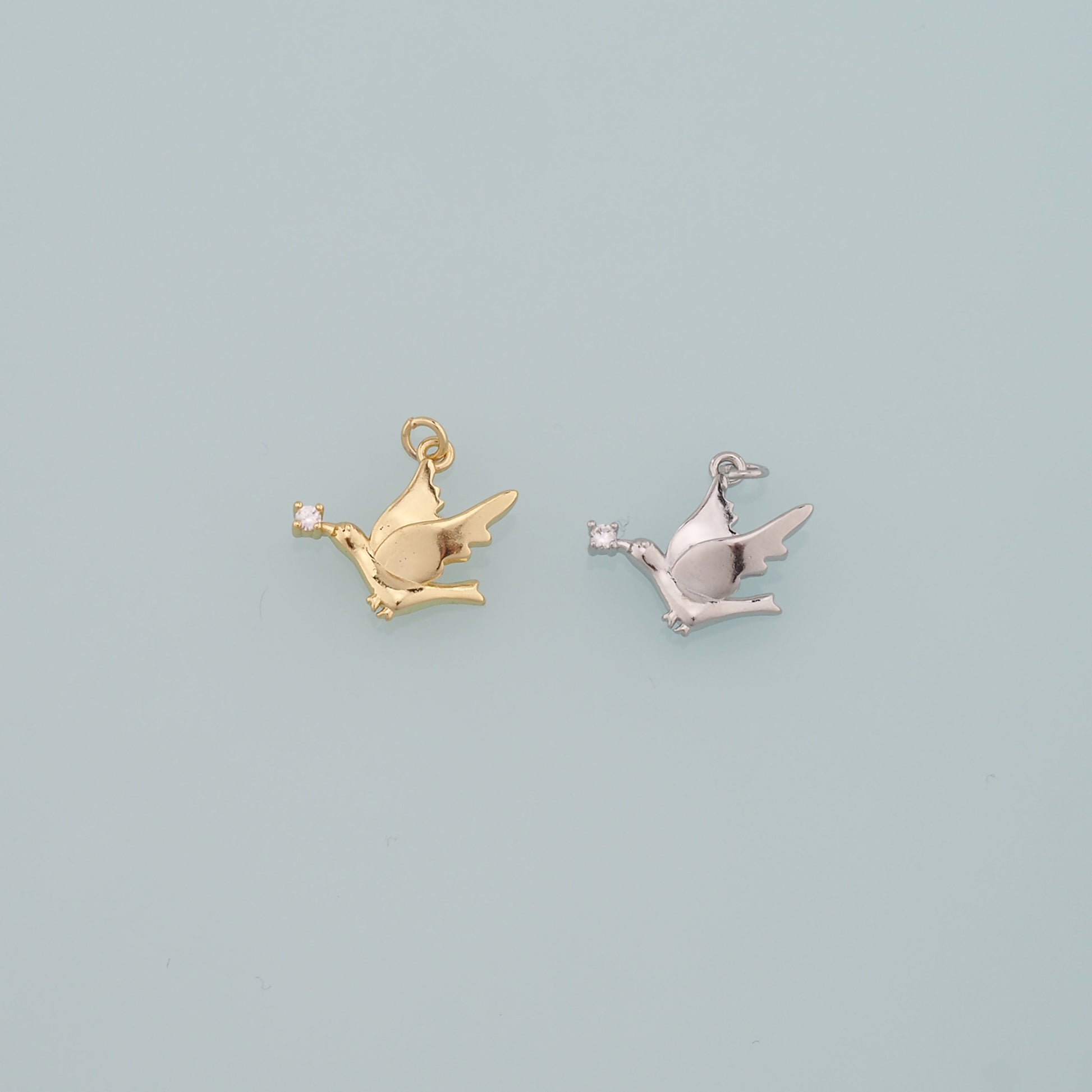 Gold Animal Charms,18K Gold Filled Bird Pendant,CZ Micro Pave Bird Charm Bracelet Necklace for DIY Jewelry Making Supply