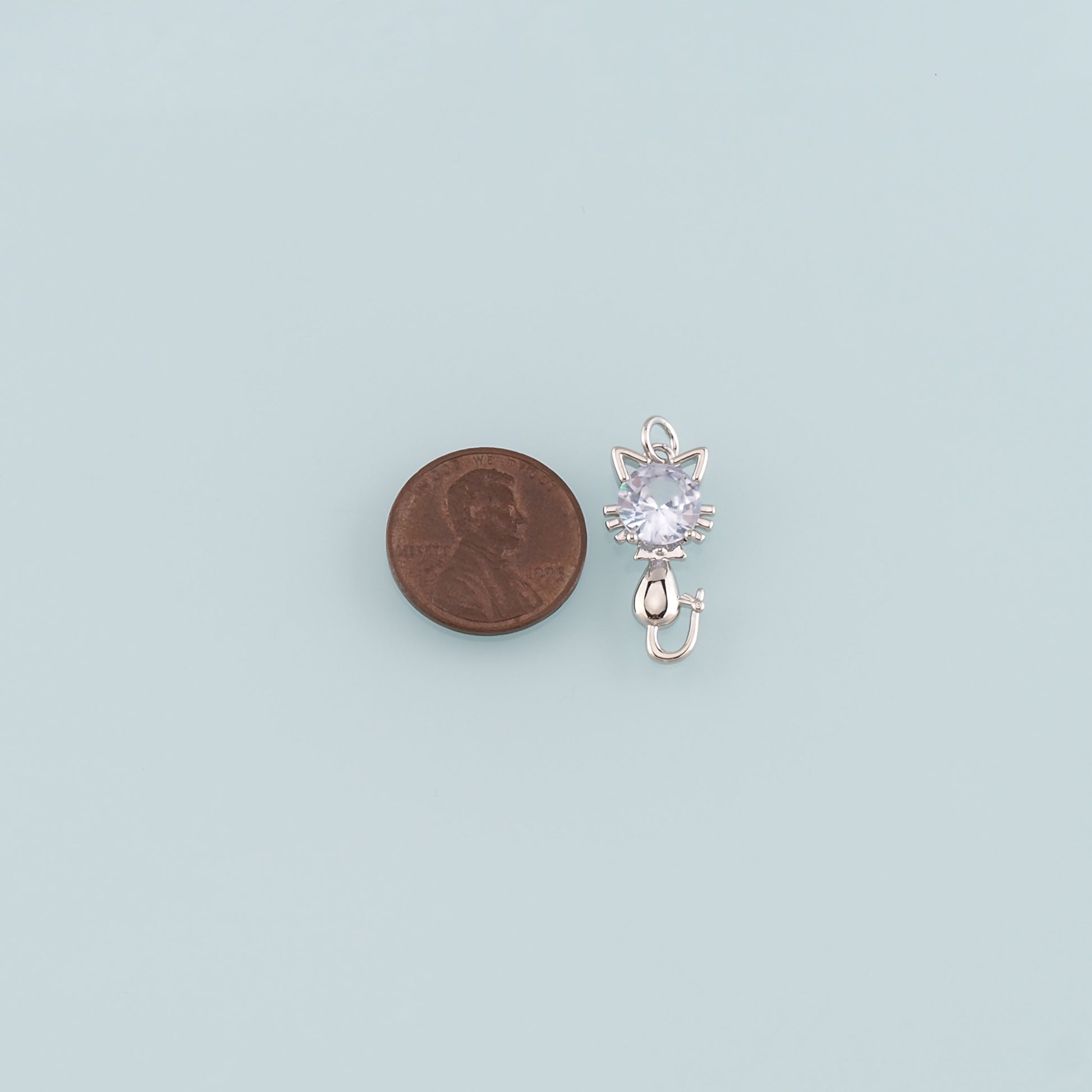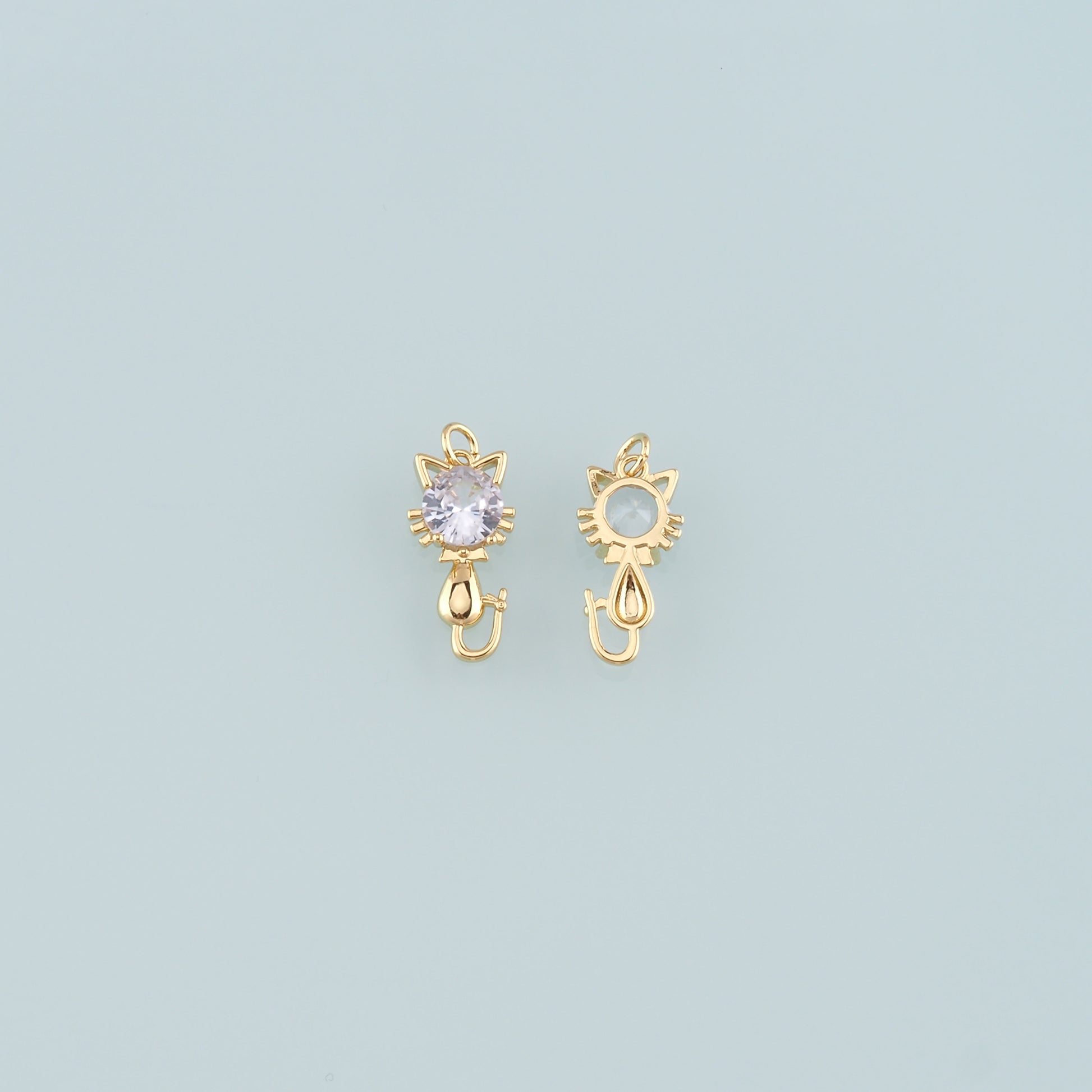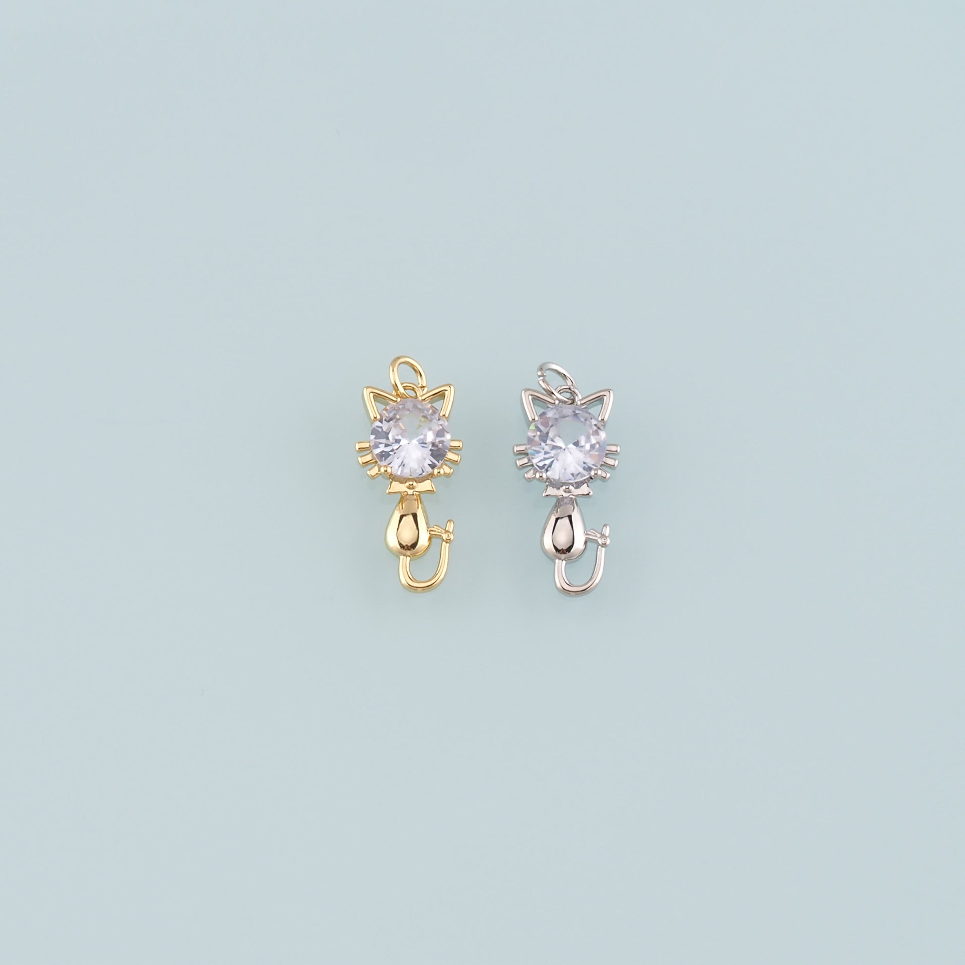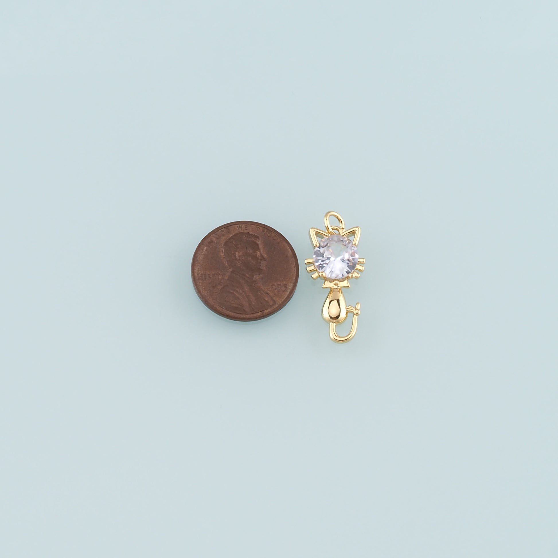 Gold Animal Charms,18K Gold Filled Cat Pendant,CZ Micro Pave Cat Charm Bracelet Necklace for DIY Jewelry Making Supply