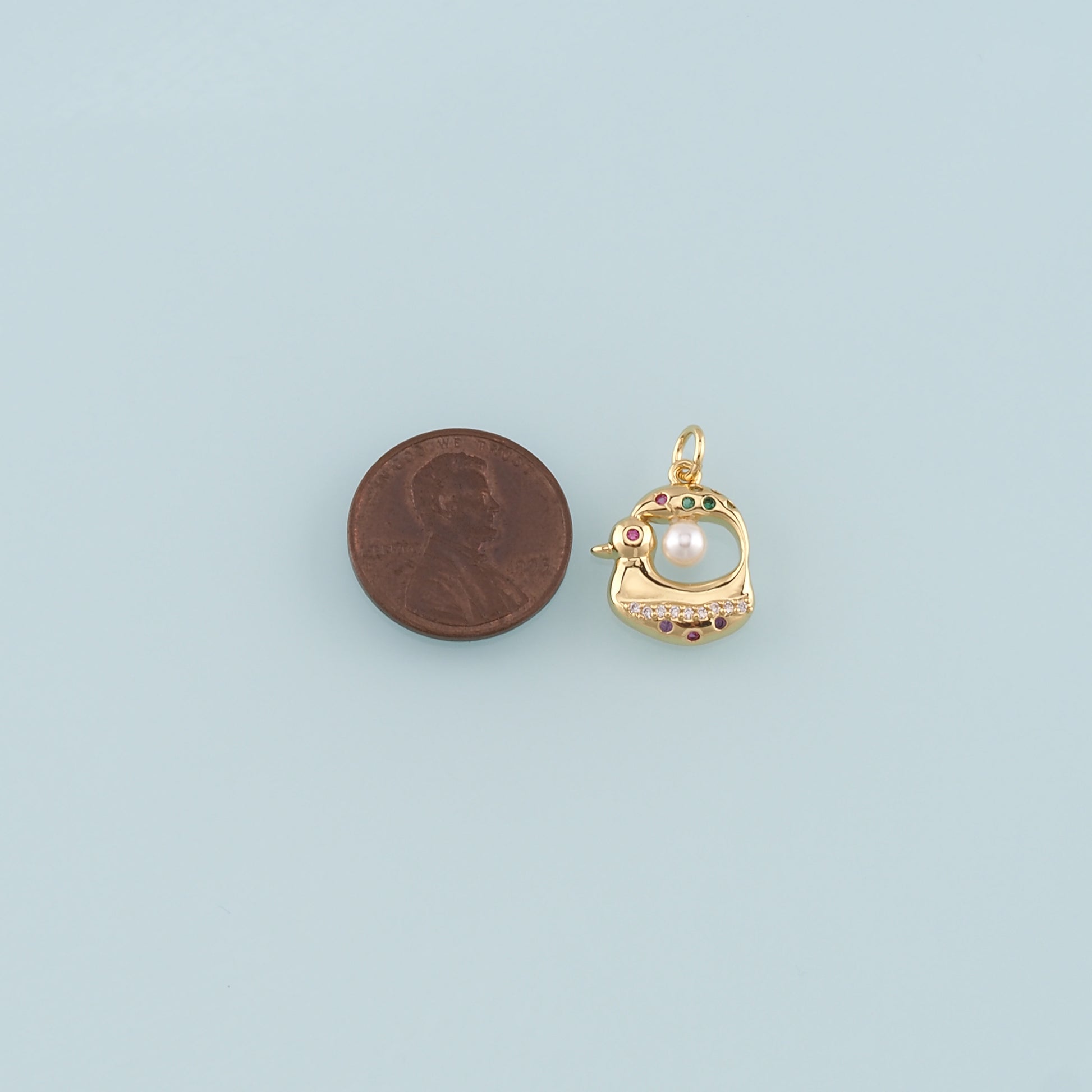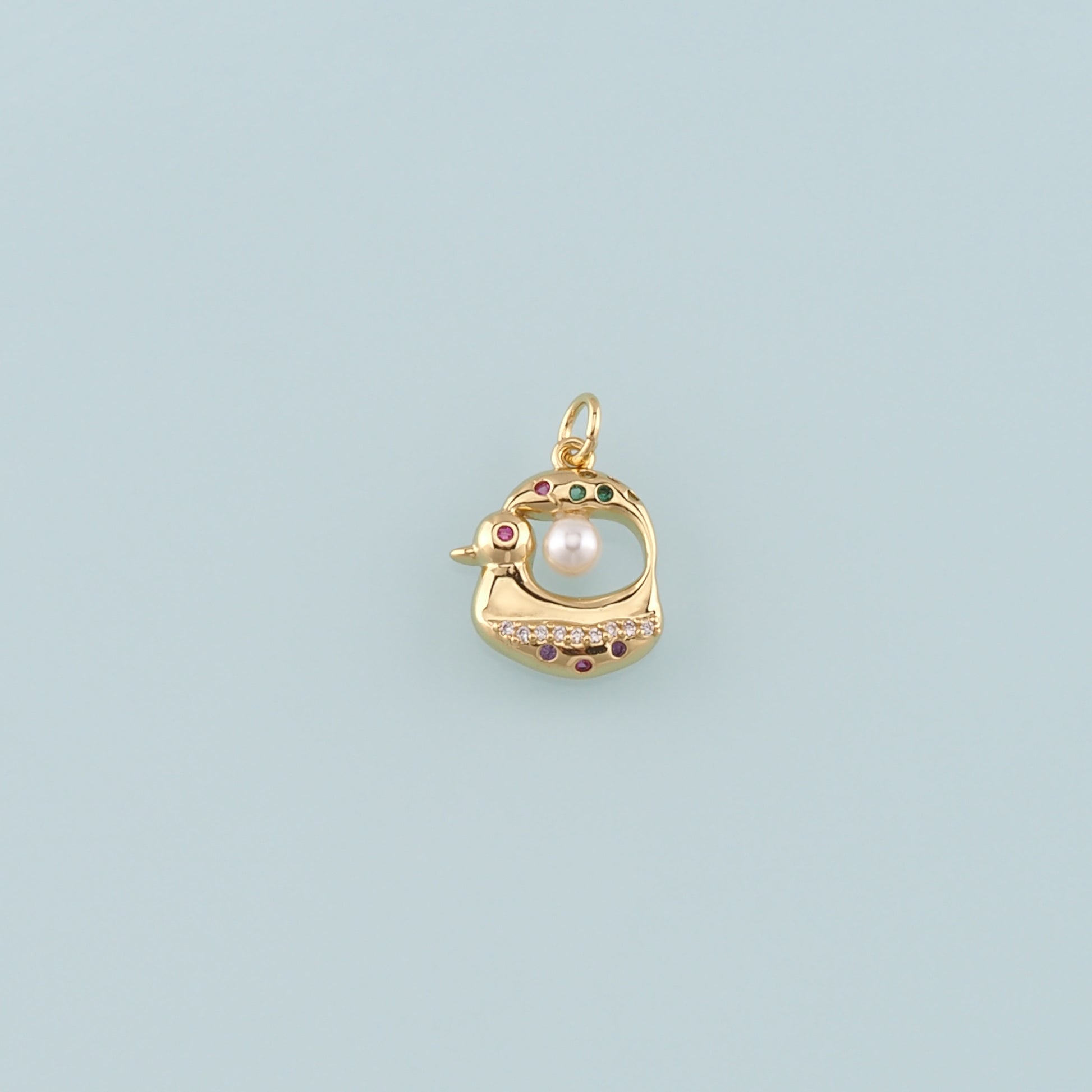 Gold Animal Charms,18K Gold Filled Pearl Duck Pendant,CZ Micro Pave Duck Charm Bracelet Necklace for DIY Jewelry Making Supply