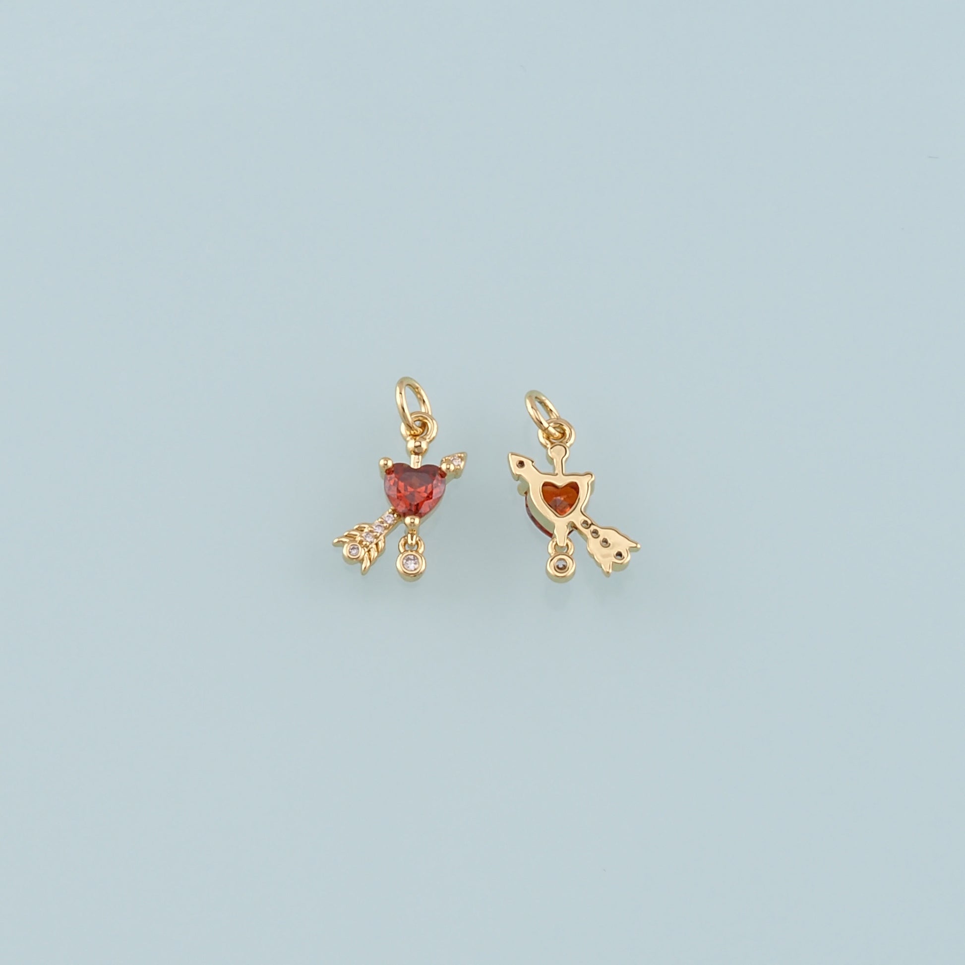 Gold Arrow Charms,18K Gold Filled Heart Arrow Pendant,CZ Micro Pave Heart Charm Bracelet Necklace for DIY Jewelry Making Supply