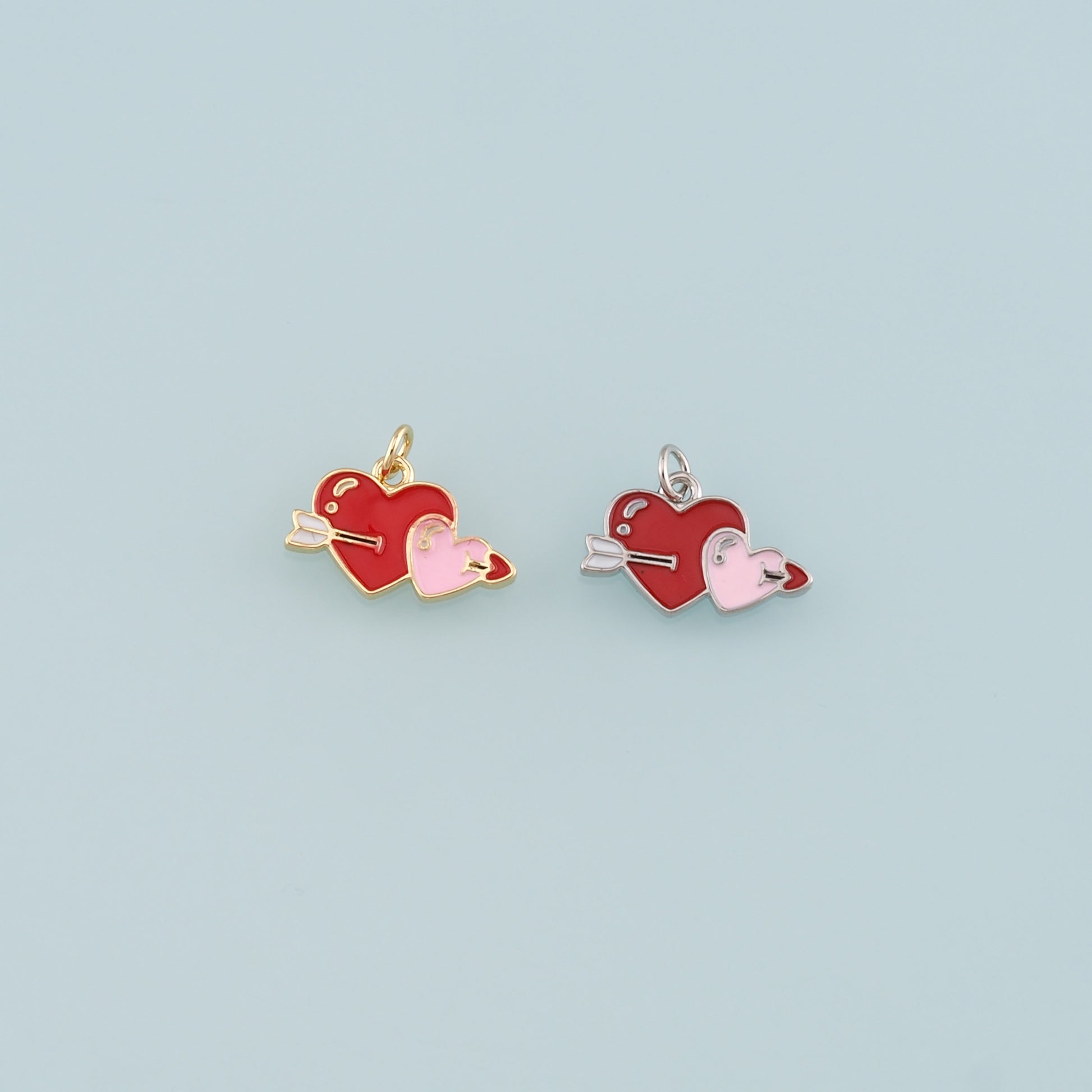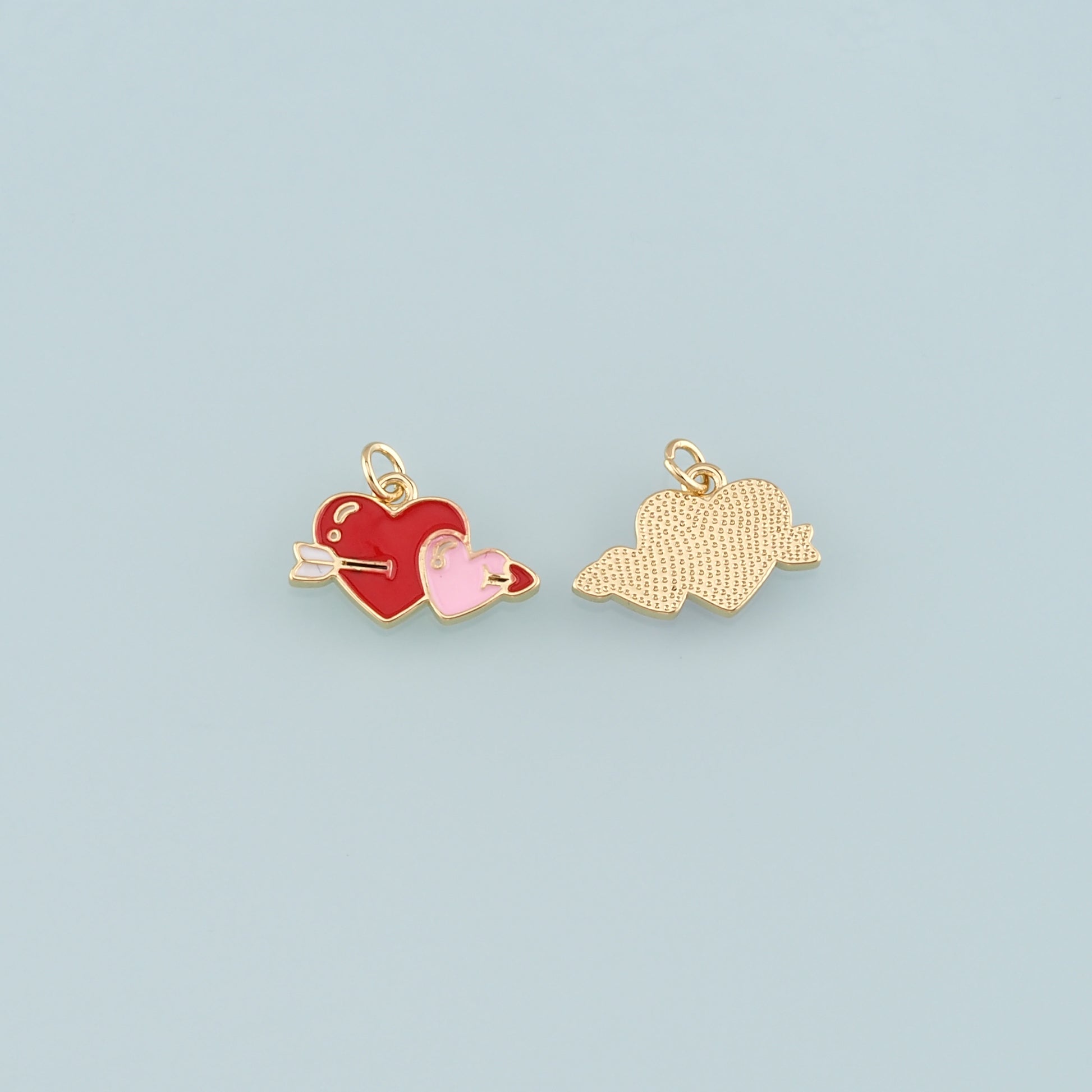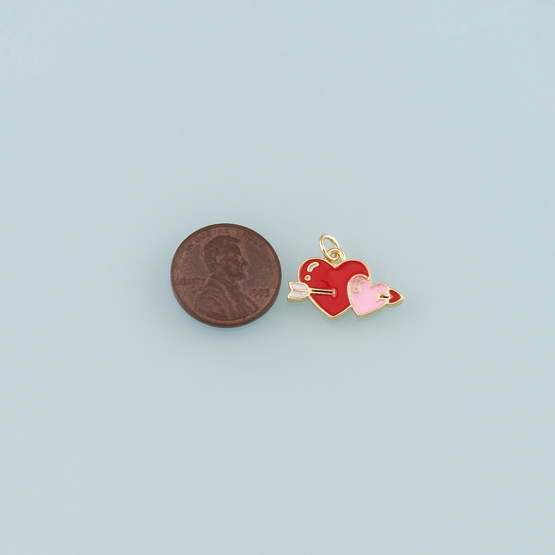 Gold Arrow Charms,18K Gold Filled Heart Arrow Pendant,Enamel Heart Charm Bracelet Necklace for DIY Jewelry Making Supply