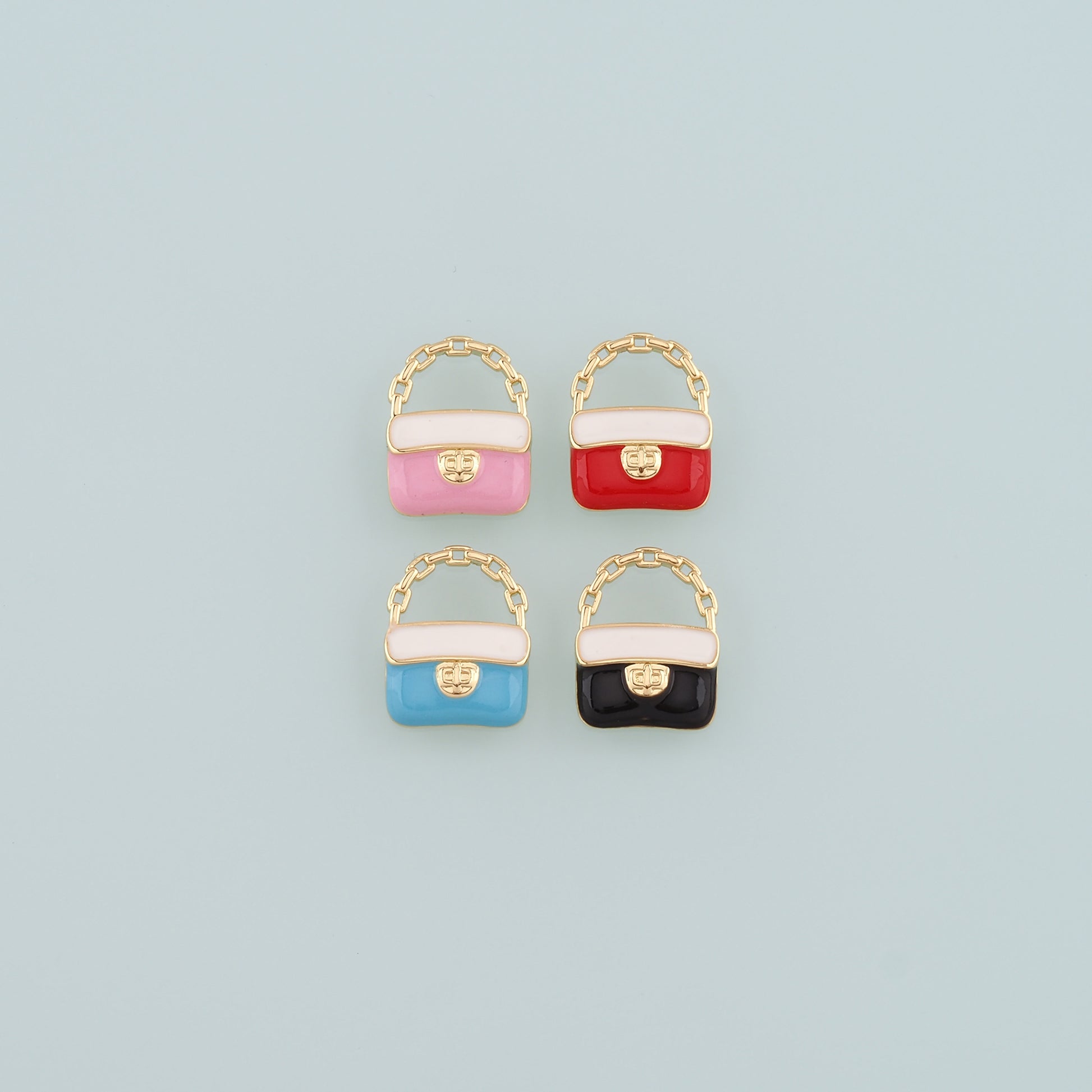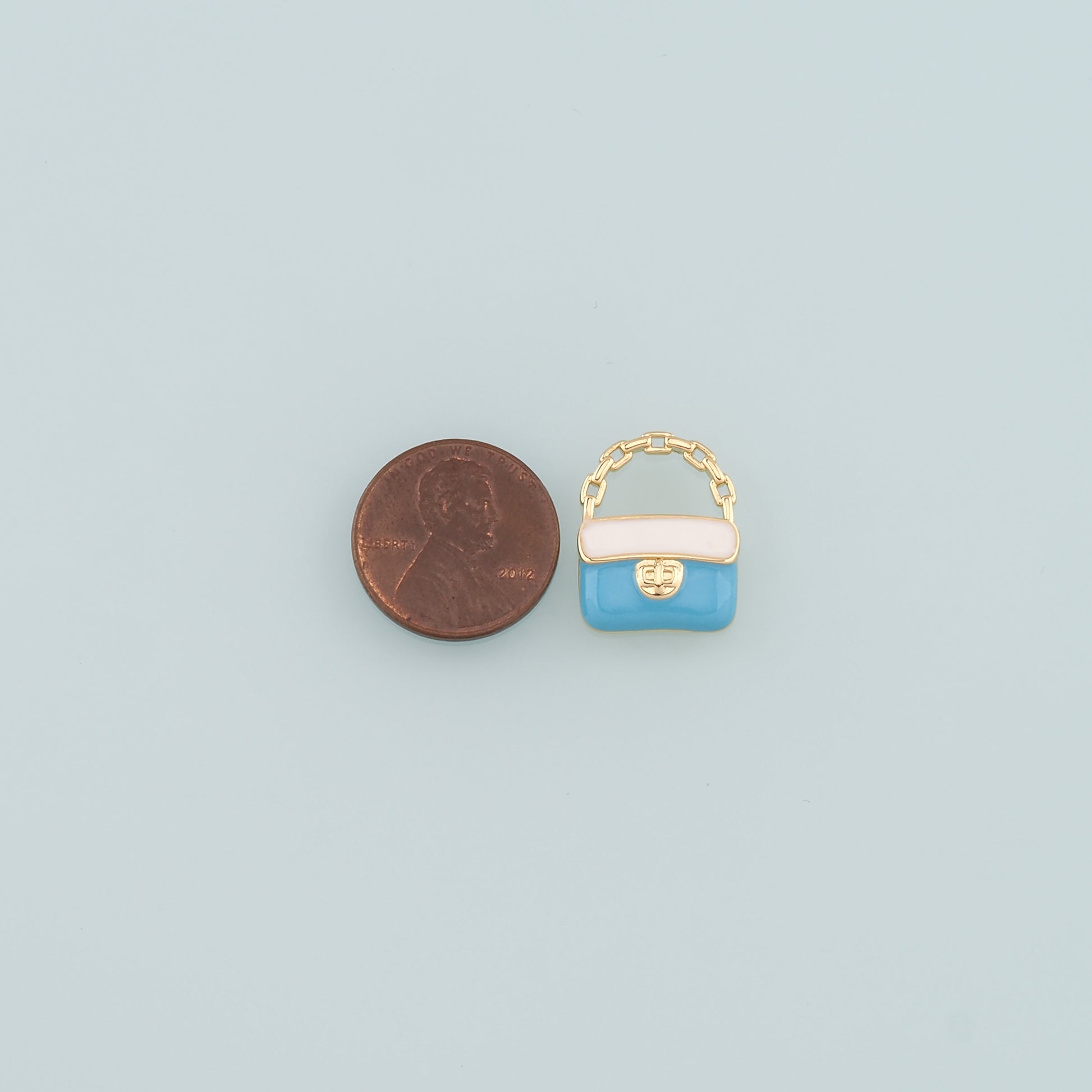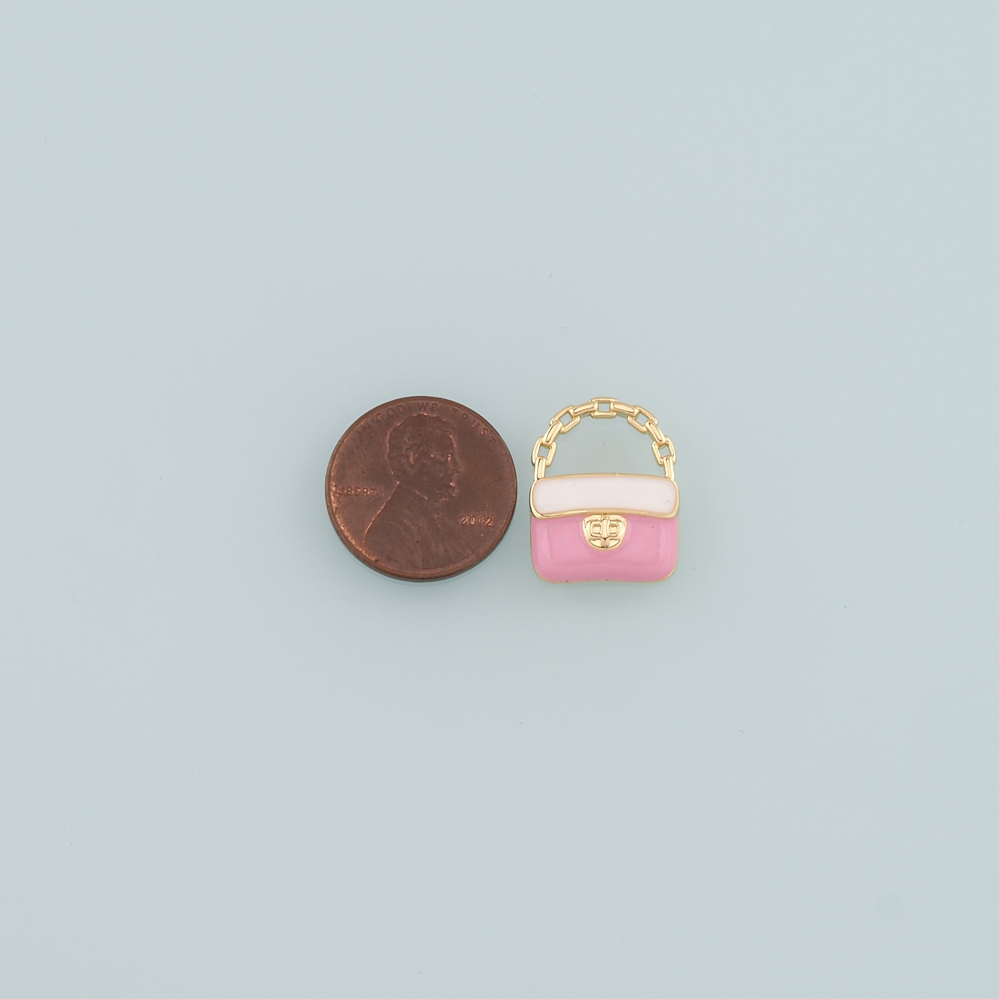 Gold Bag Charms,18K Gold Filled Handbag Pendant,Enamel Handbag Charm Bracelet Necklace for DIY Jewelry Making Supply