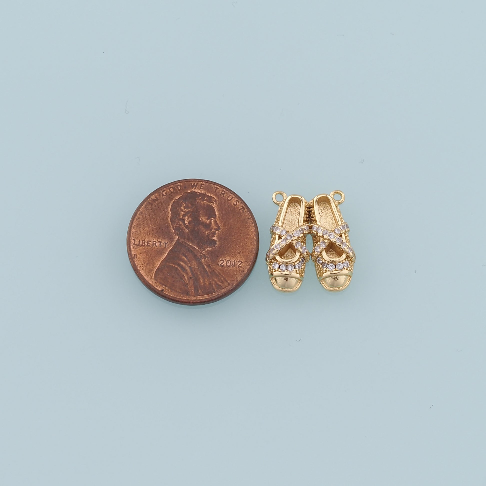 Gold Ballerina Shoes Dangle Charms,18K Gold Filled Flat Shoes Pendant,Shoes Charm Bracelet Necklace for DIY Jewelry Making Supply