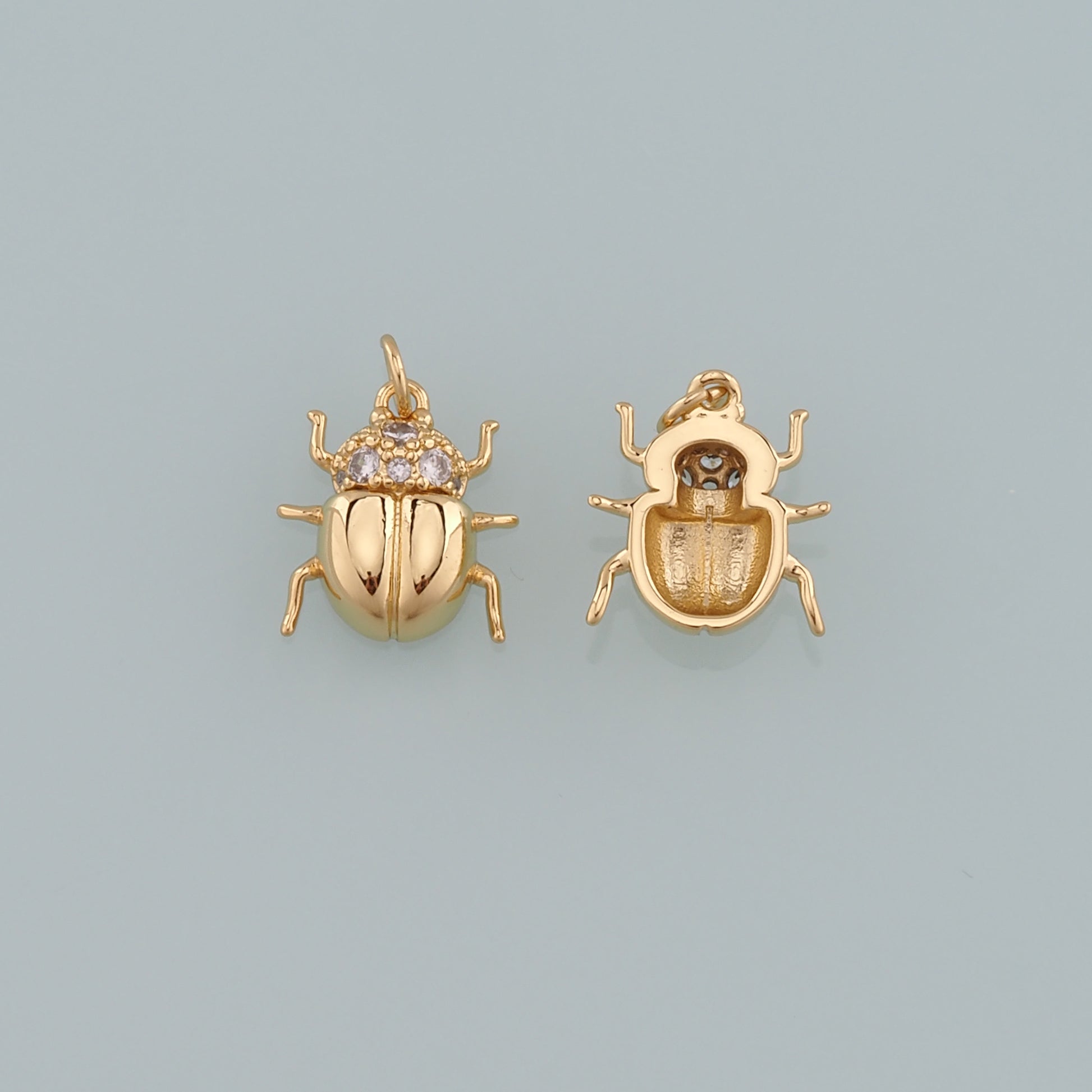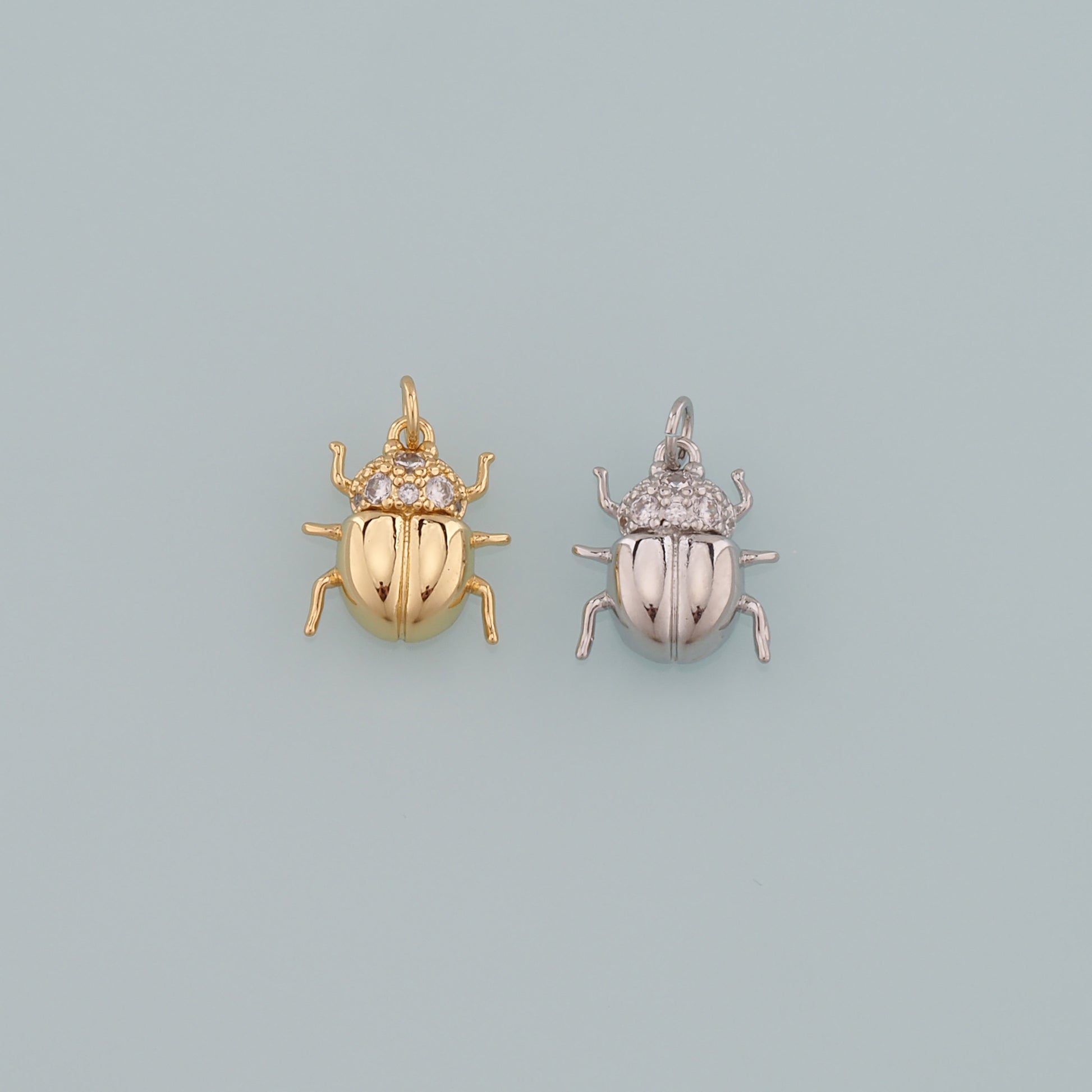 Gold Beetle Charms,18K Gold Filled Beetle Pendant,CZ Micro Pave Insect Charm Bracelet Necklace for DIY Jewelry Making Supply