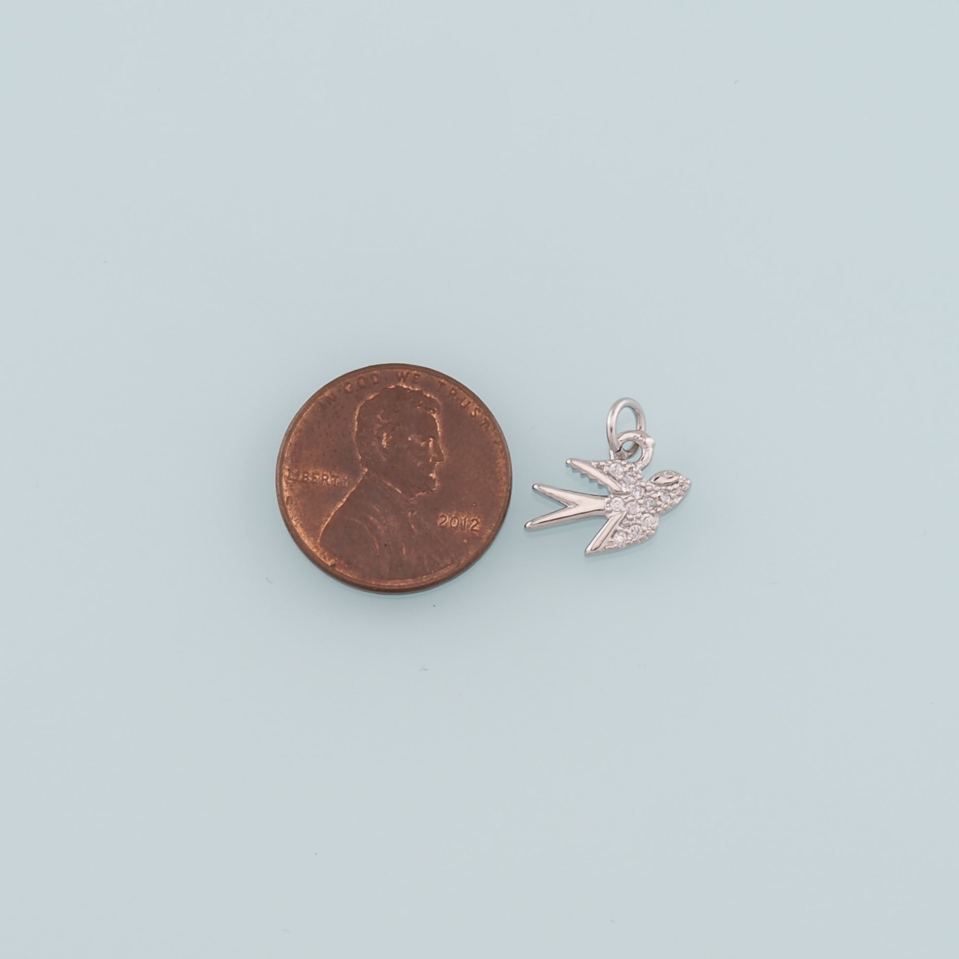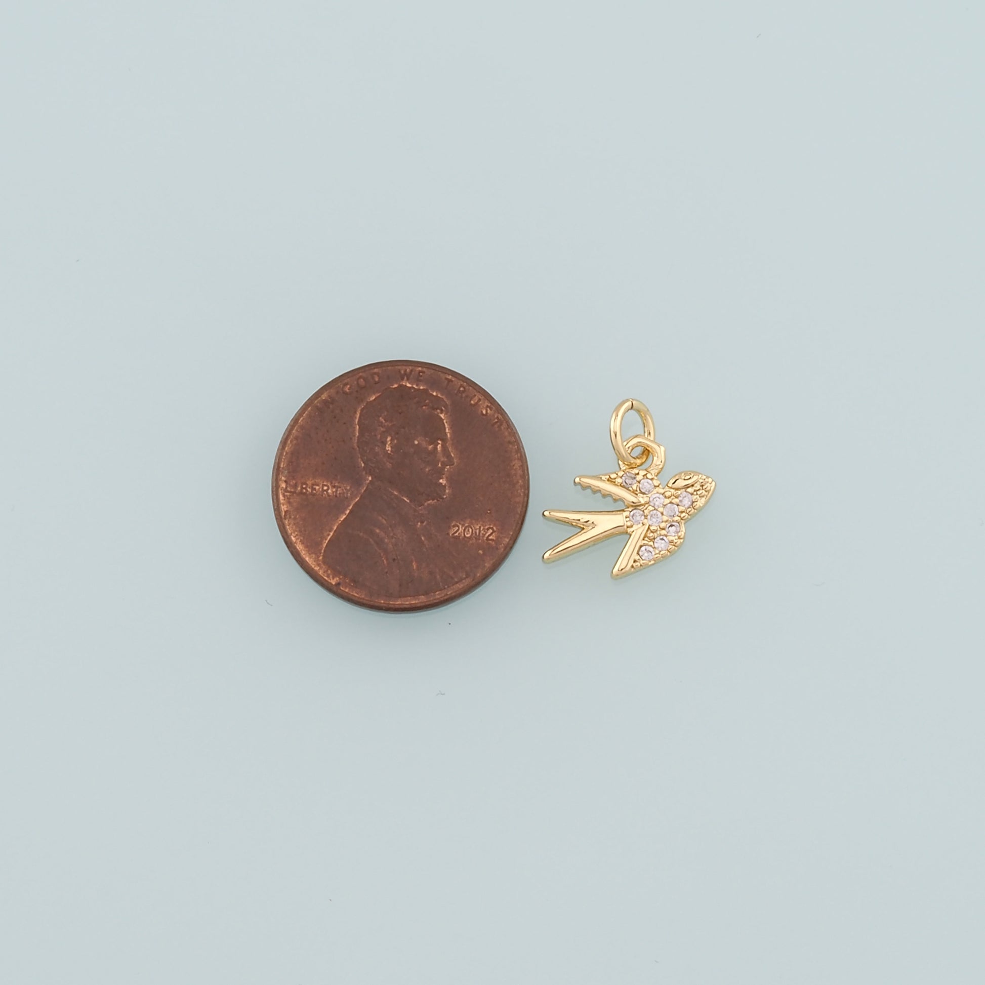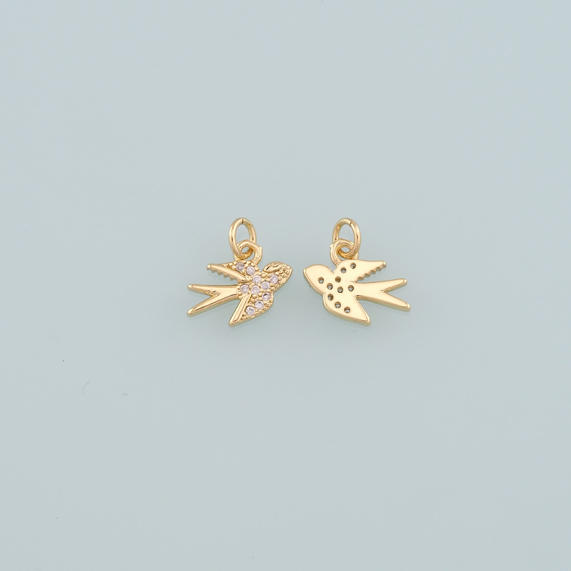 Gold Bird Charms,18K Gold Filled Swallow Pendant,CZ Micro Pave Bird Charm Bracelet Necklace for DIY Jewelry Making Supply