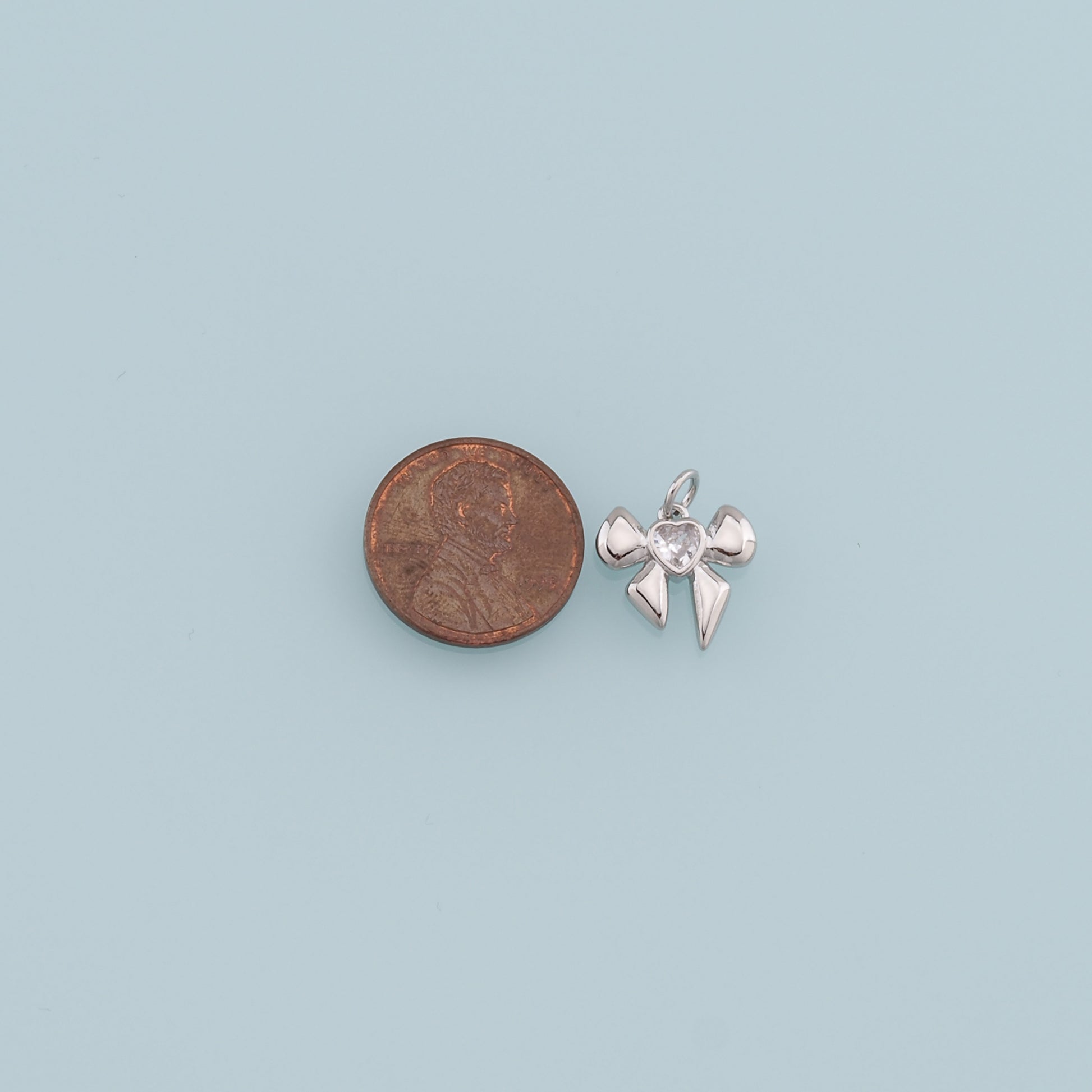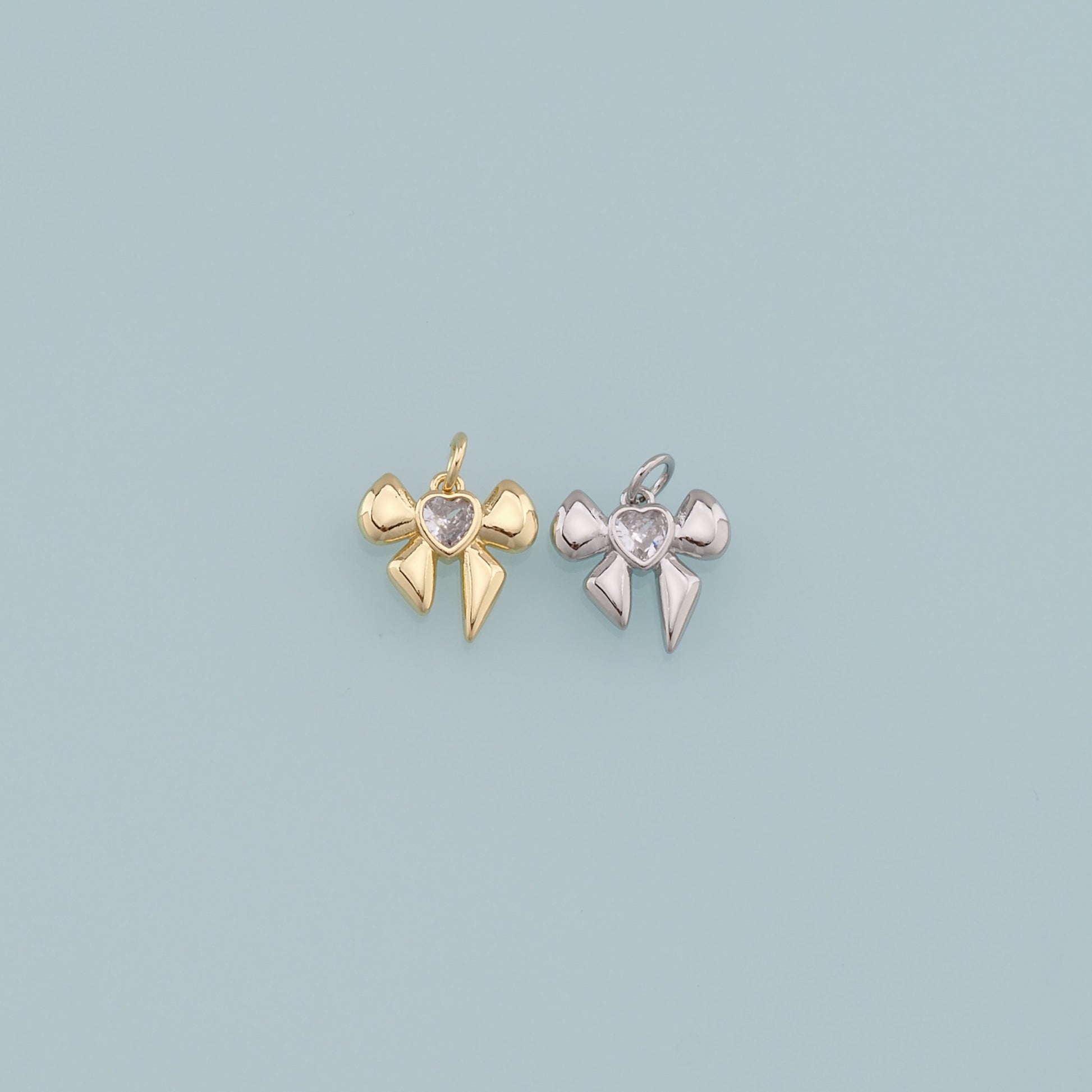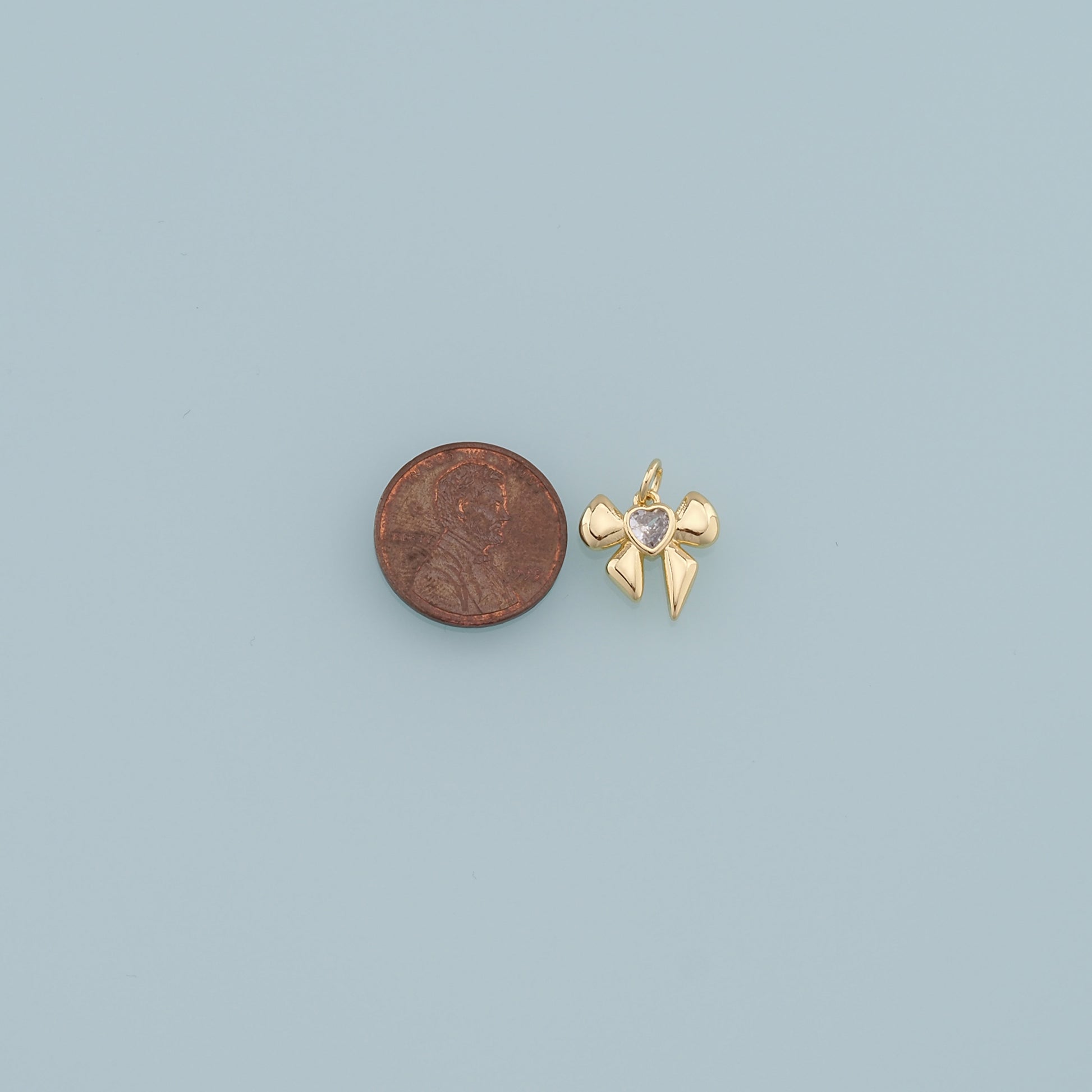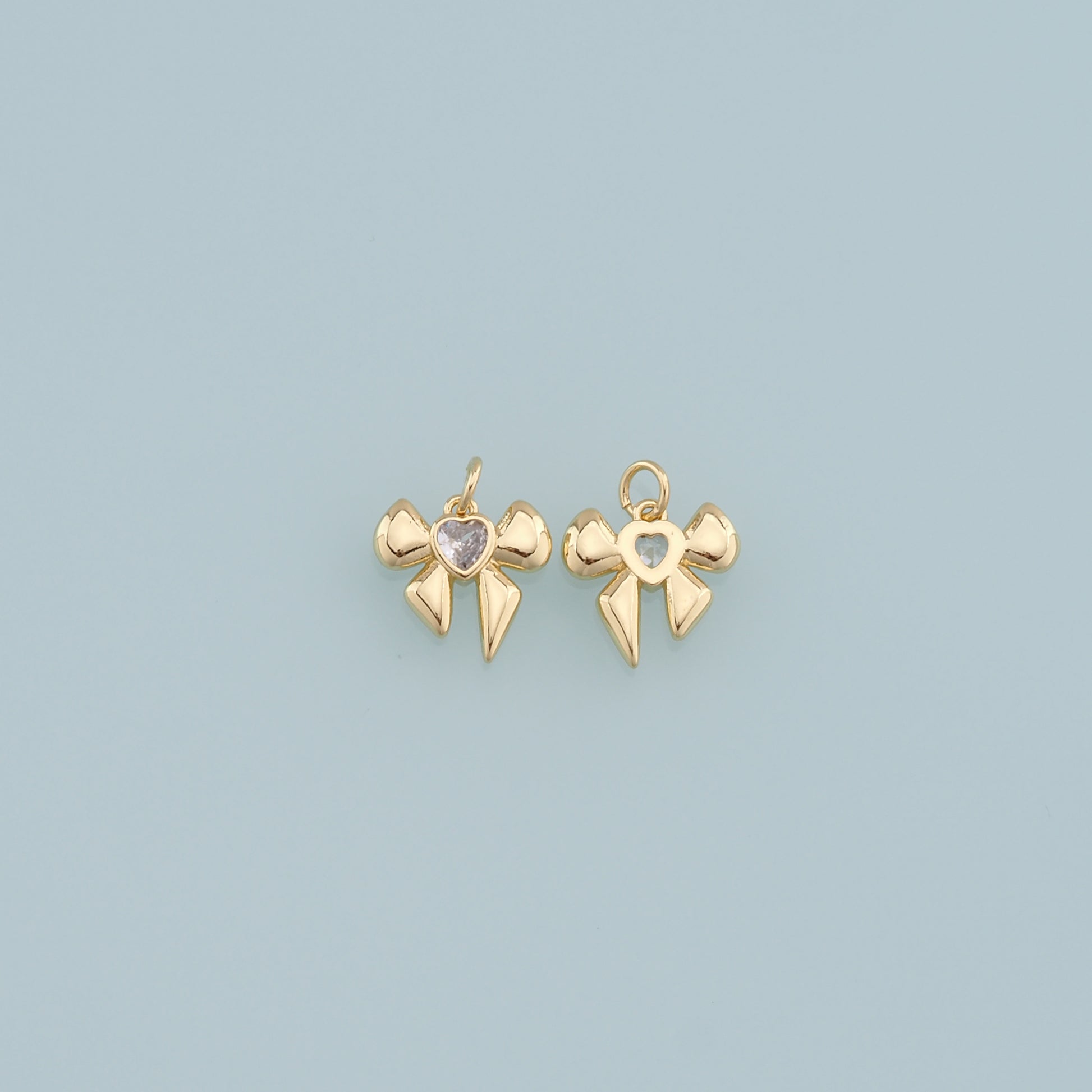 Gold Bow Charms,18K Gold Filled Bow Heart Pendant,bow tie Charm Bracelet Necklace for DIY Jewelry Making Supply