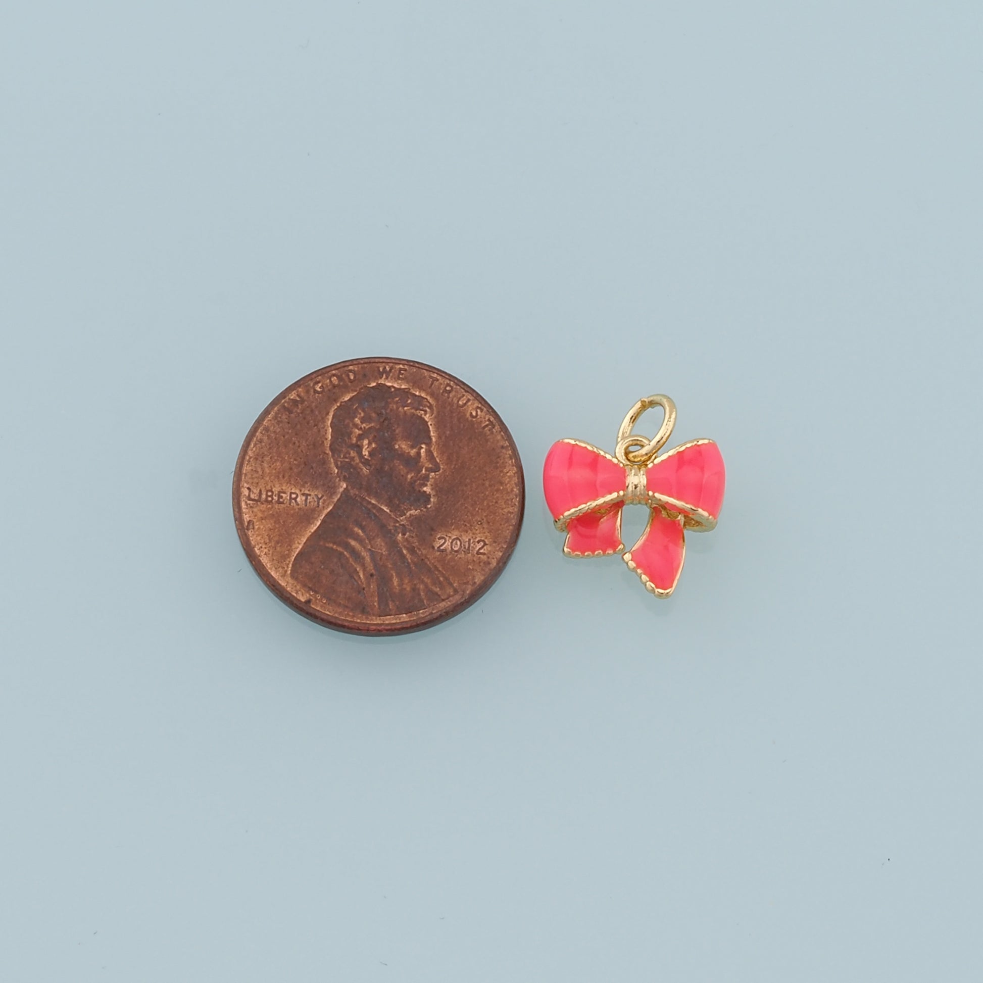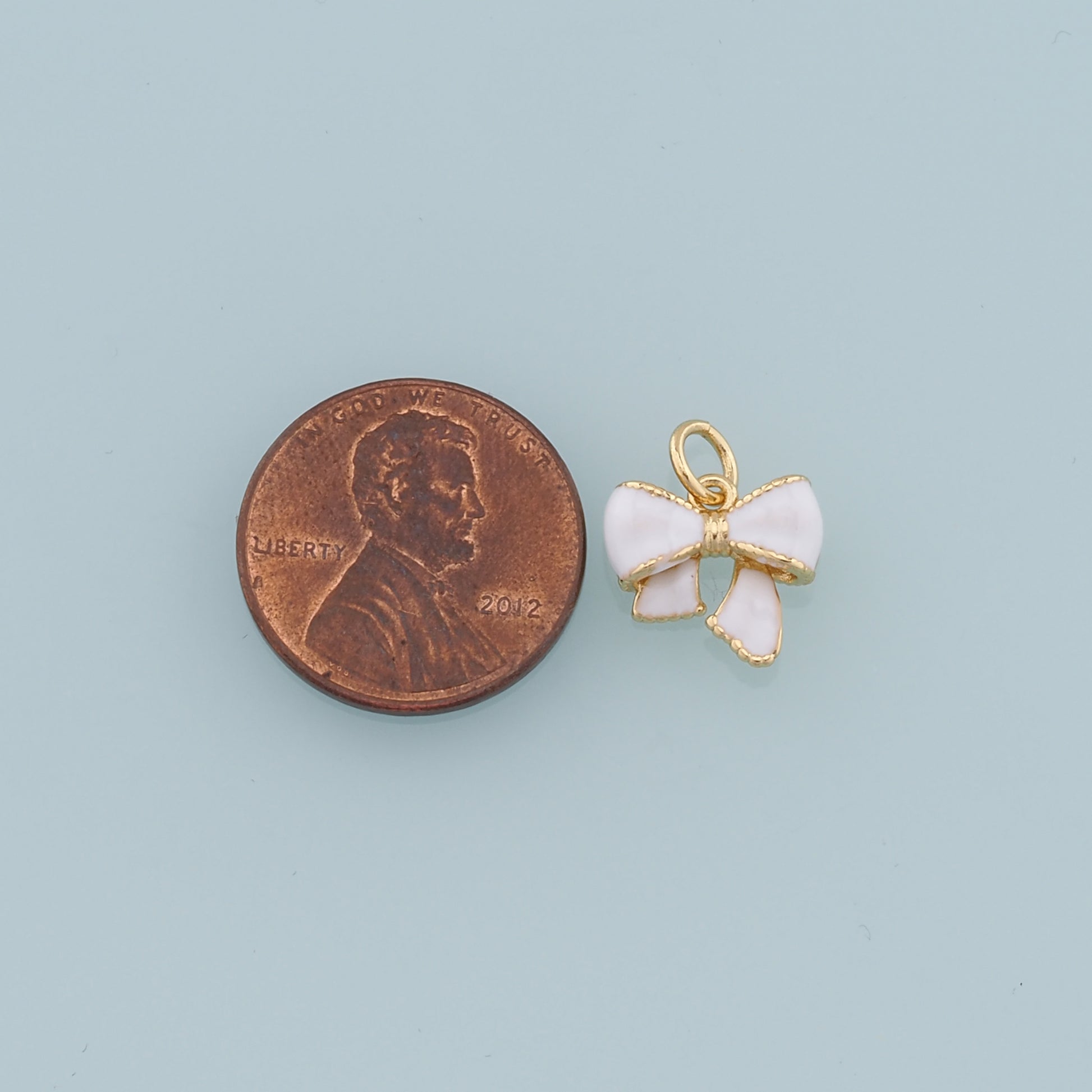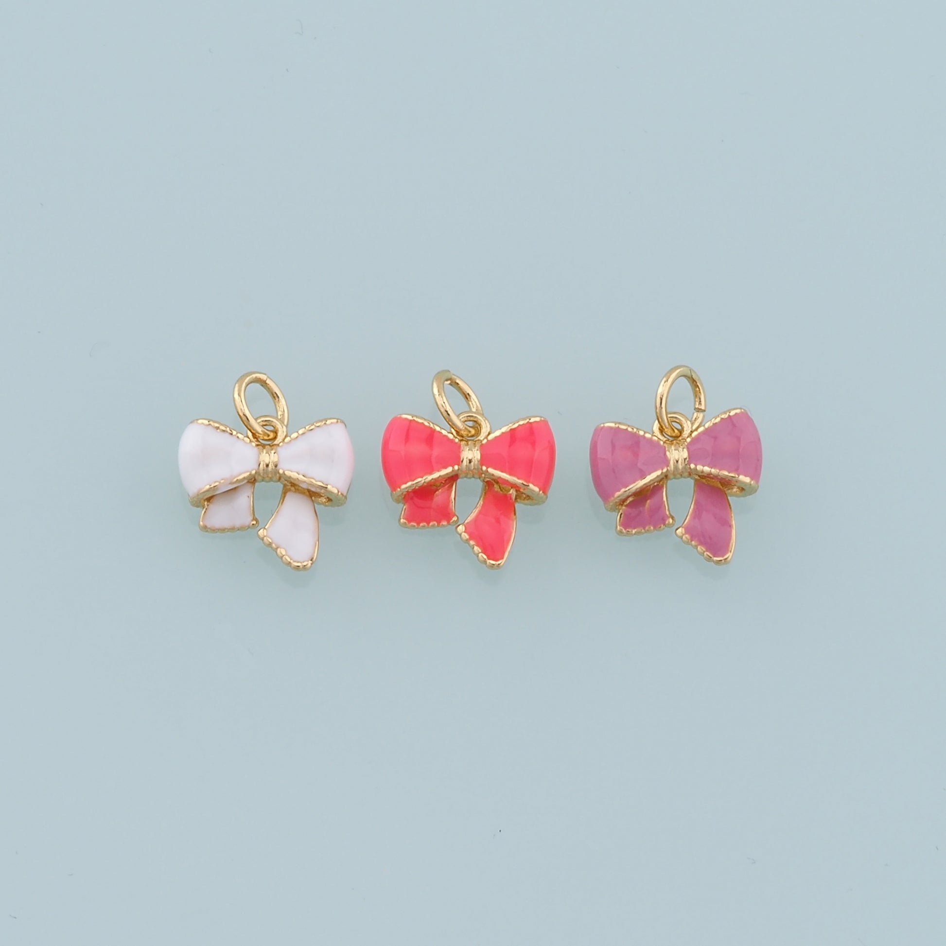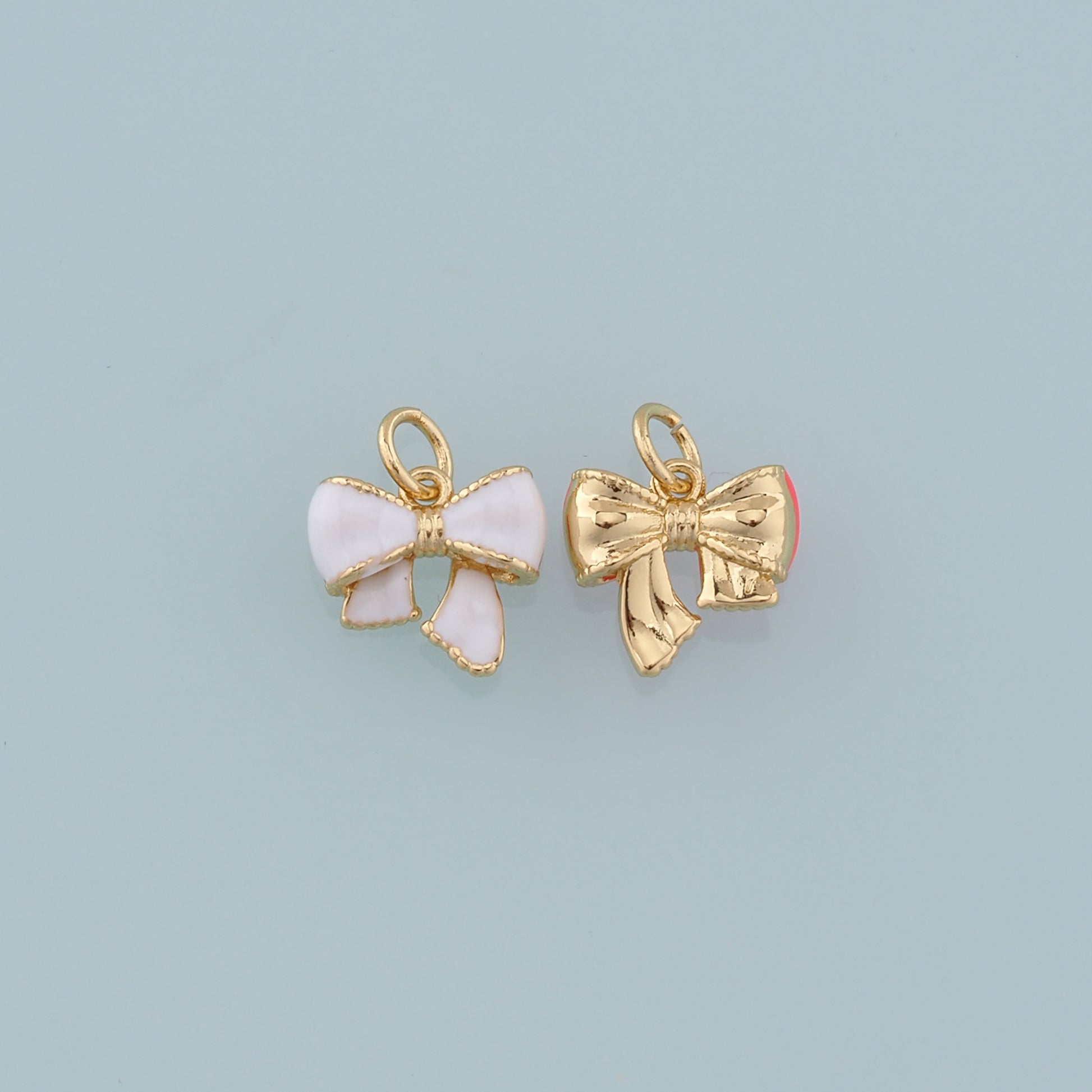 Gold Bow Charms,18K Gold Filled Bow Pendant,Enamel Bow Tie Charm Bracelet Necklace for DIY Jewelry Making Supply