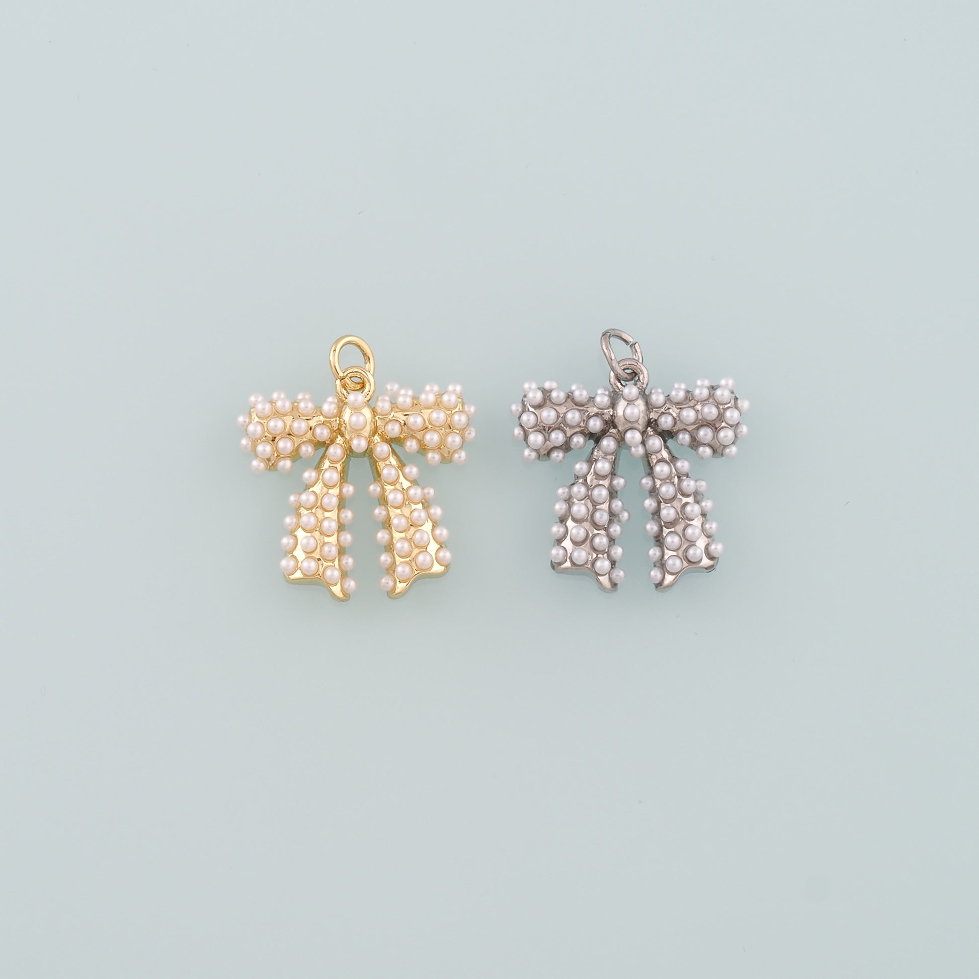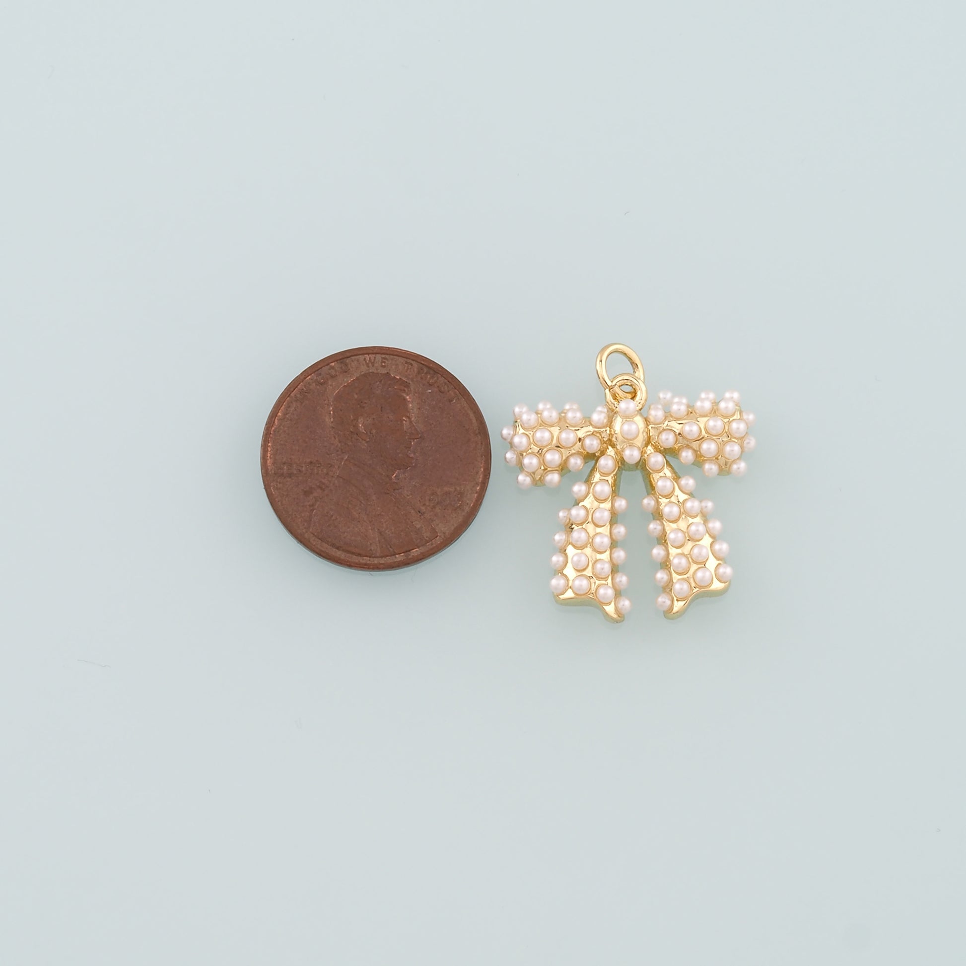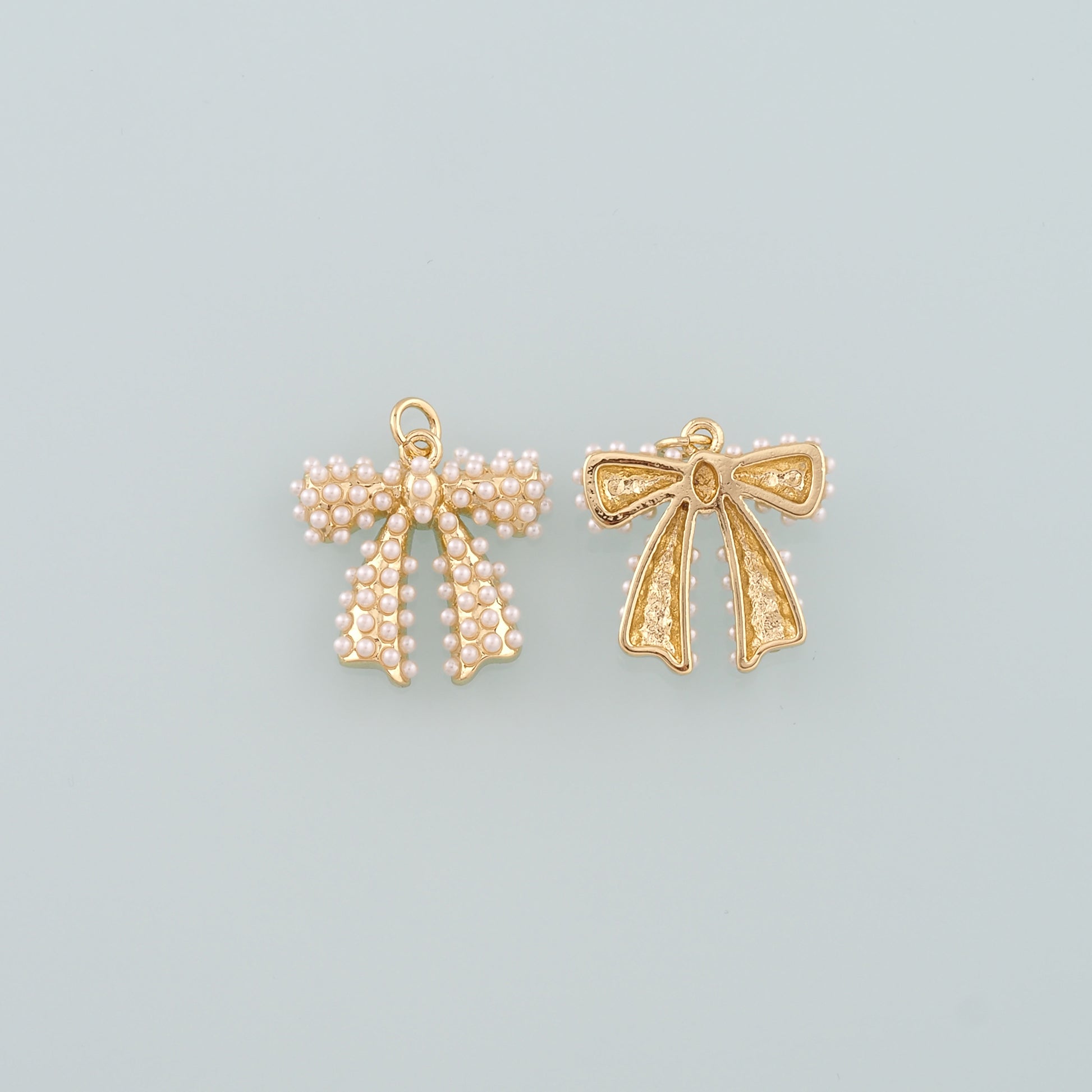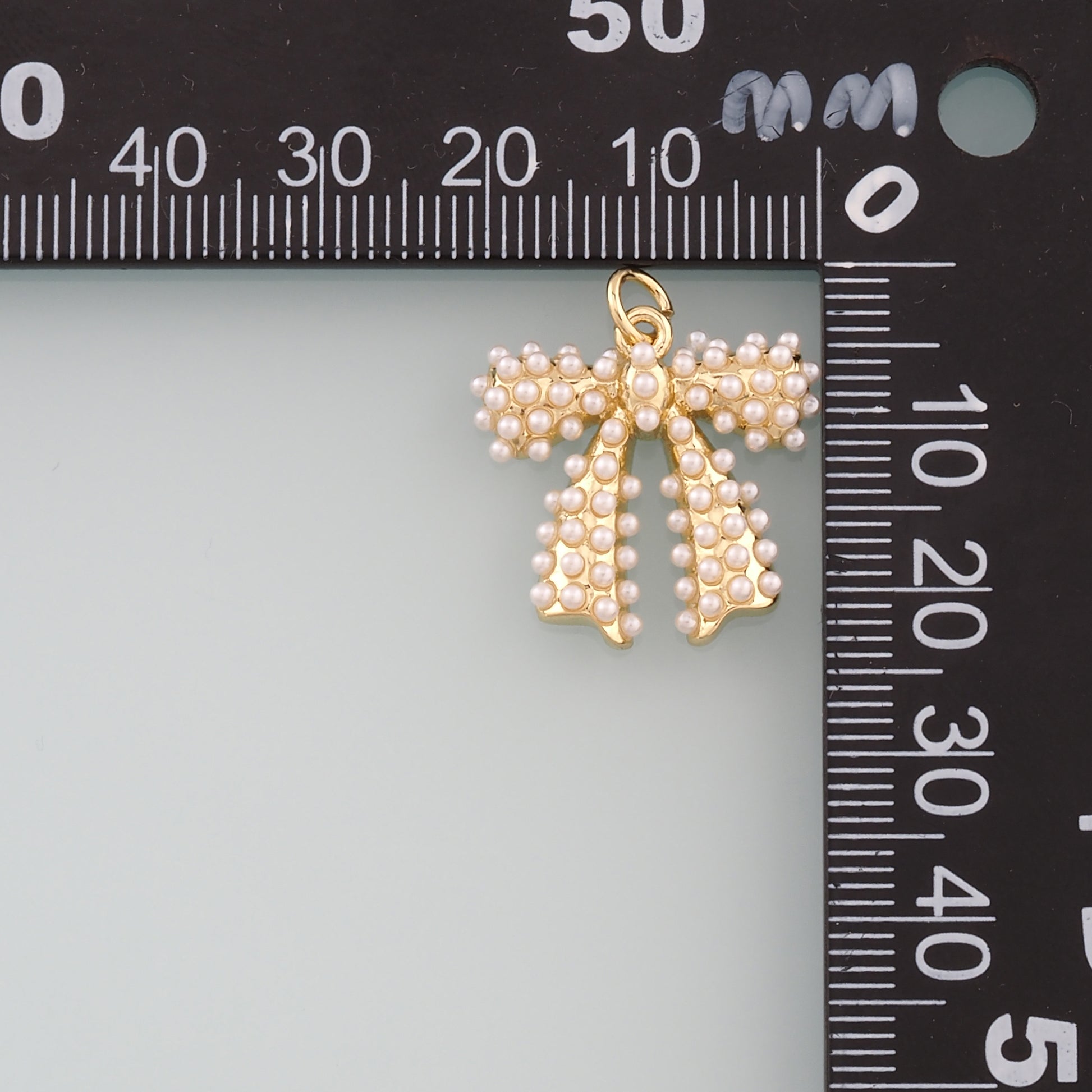 Gold Bow Charms,18K Gold Filled Pearl Bow Pendant,Bow Tie Charm Bracelet Necklace for DIY Jewelry Making Supply