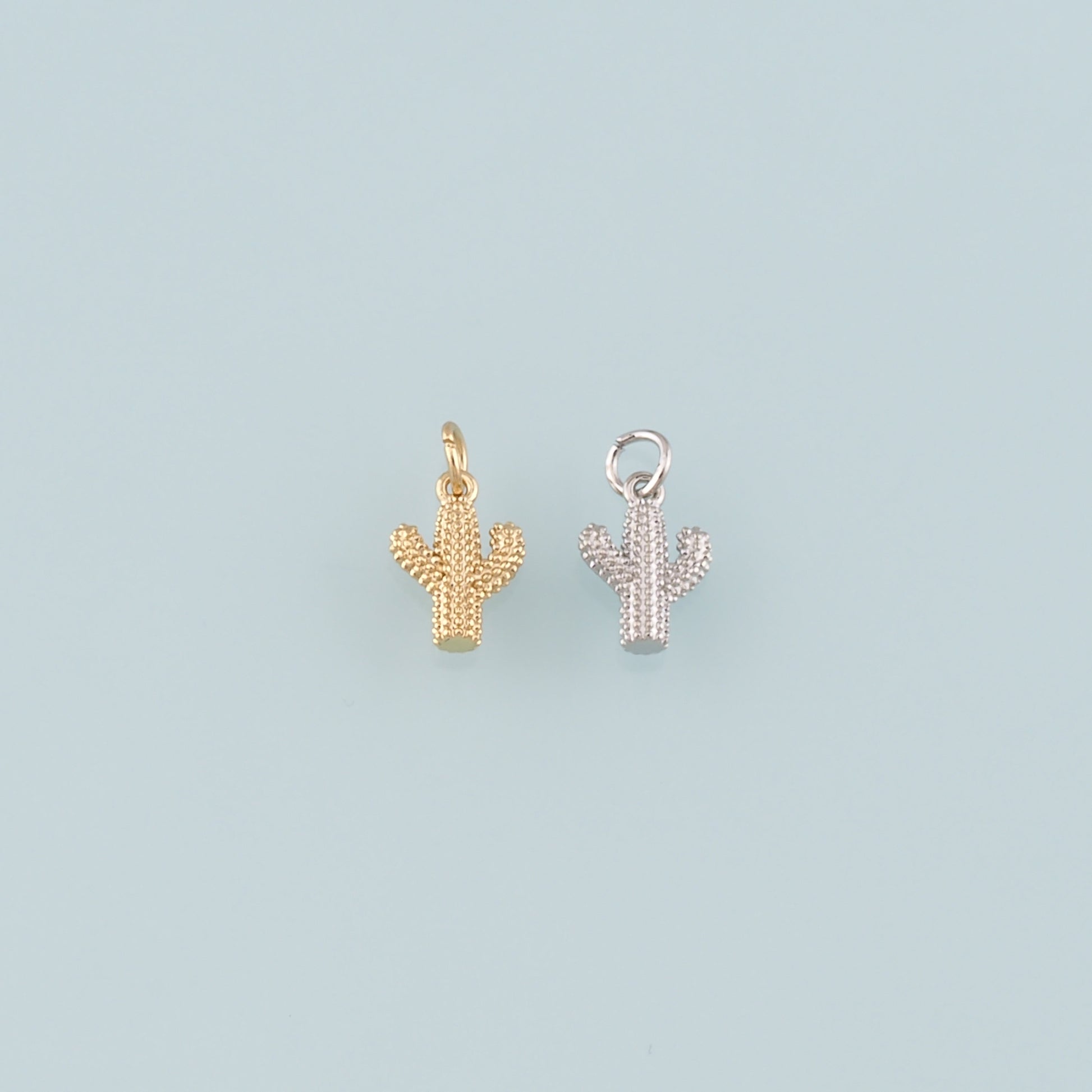 Gold Cactus Charms,18K Gold Filled Cactus Pendant,Desert Charm Bracelet Necklace for DIY Jewelry Making Supply
