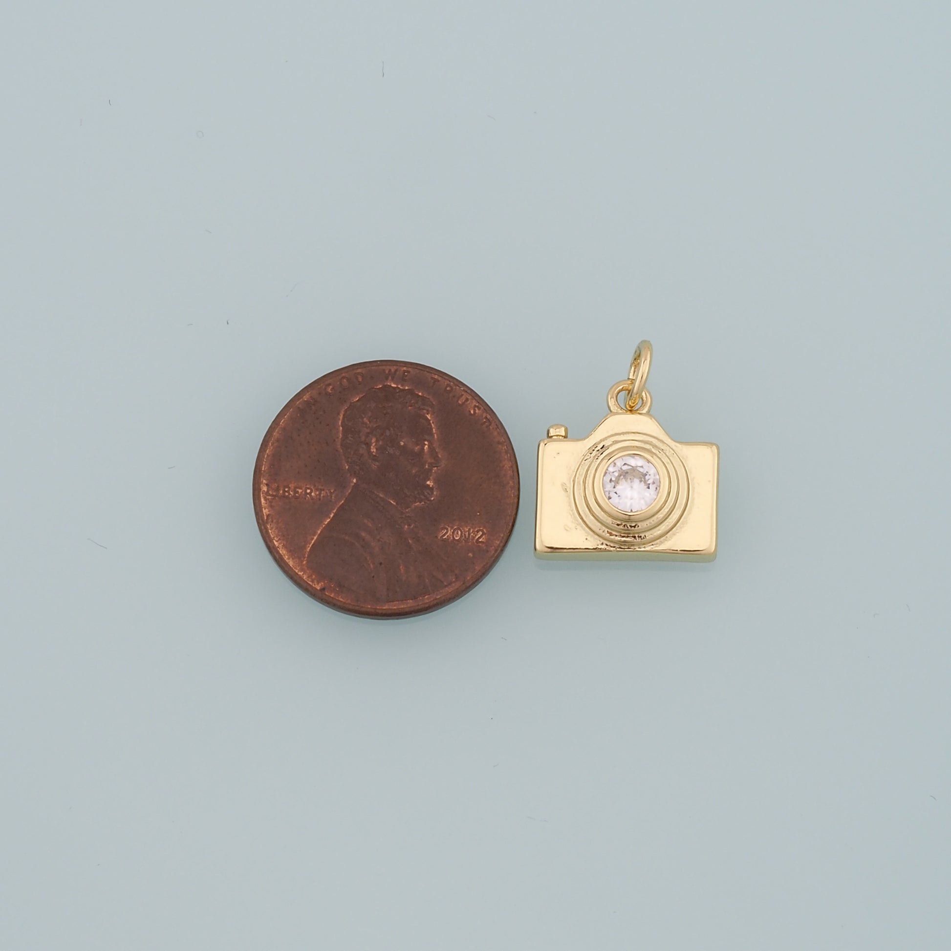 Gold Camera Charms,18K Gold Filled Camera Pendant,Camera Charm Bracelet Necklace for DIY Jewelry Making Supply