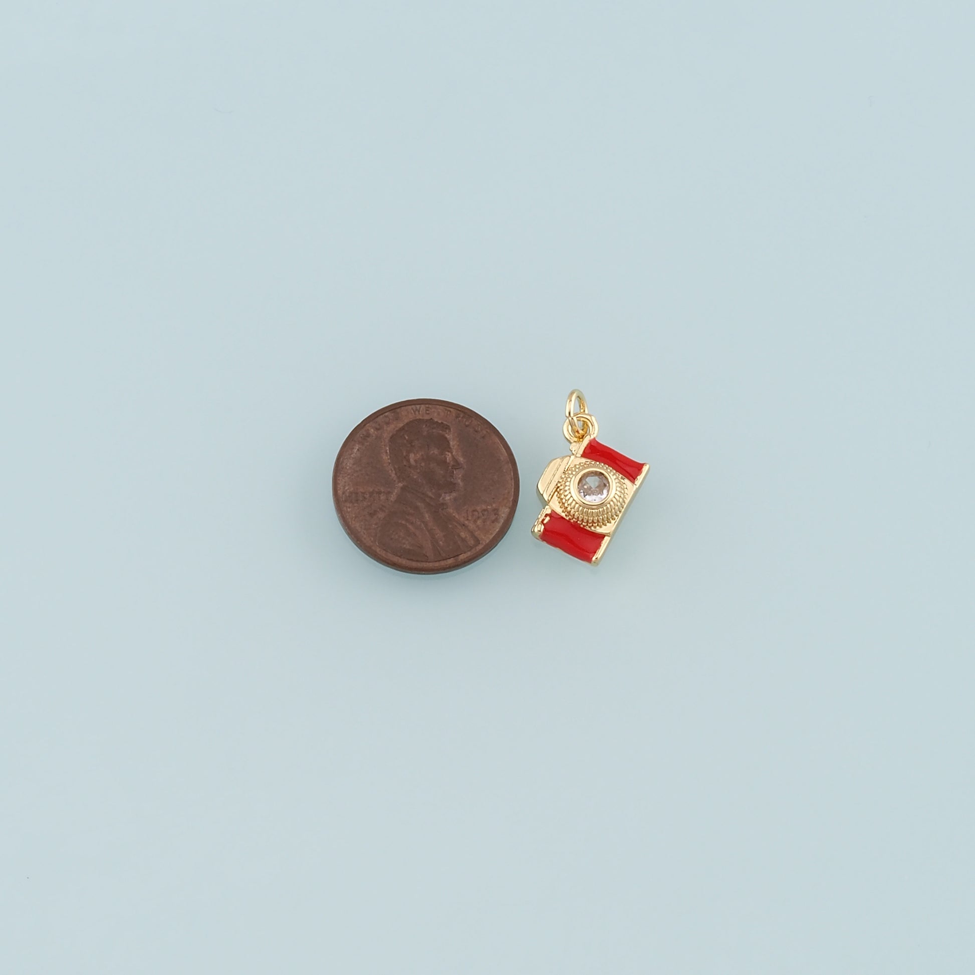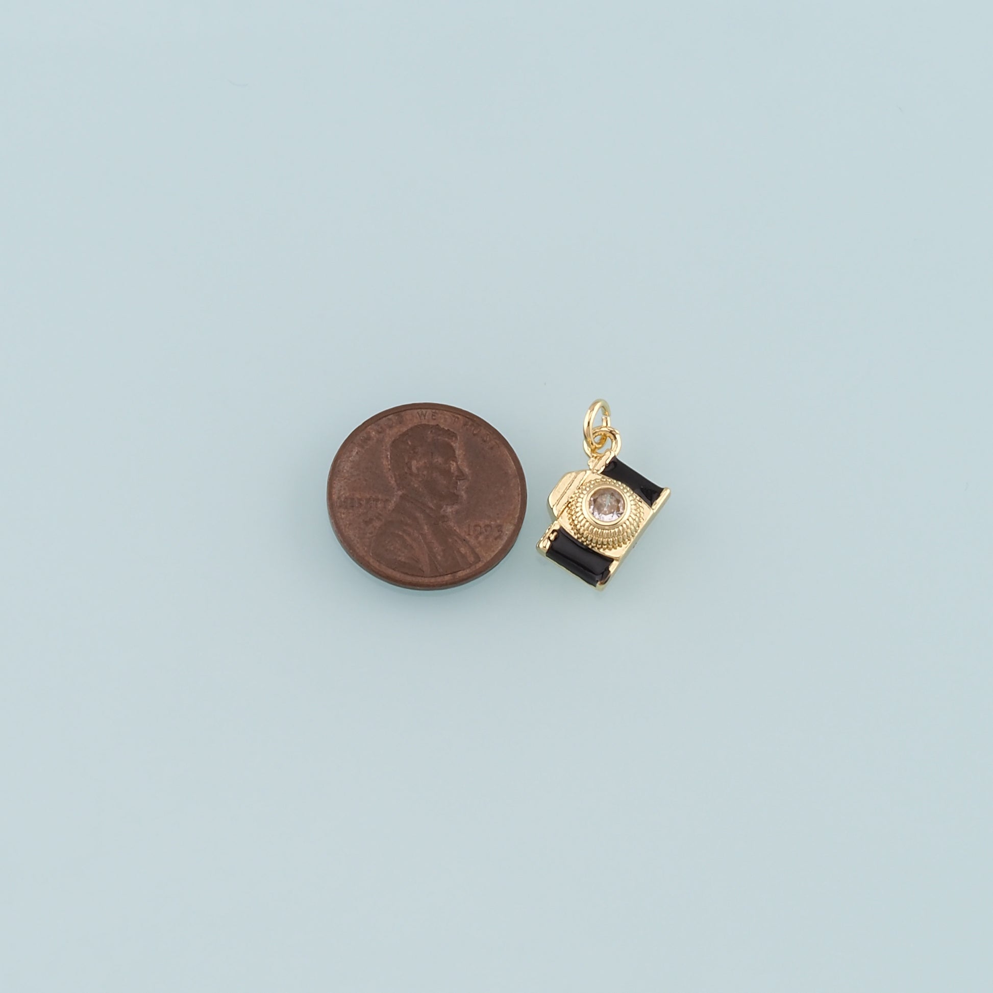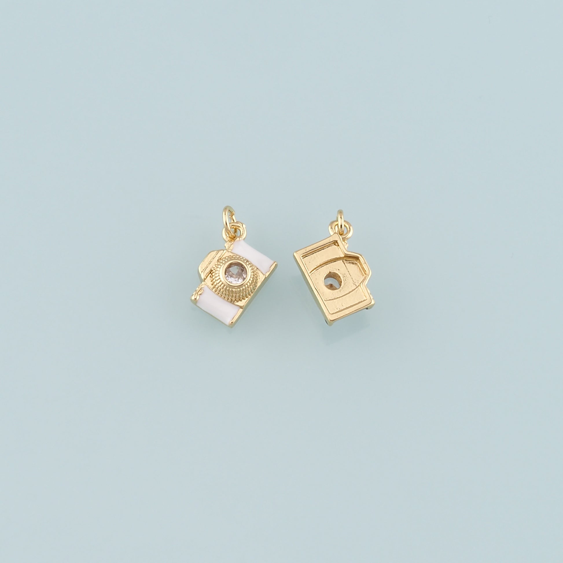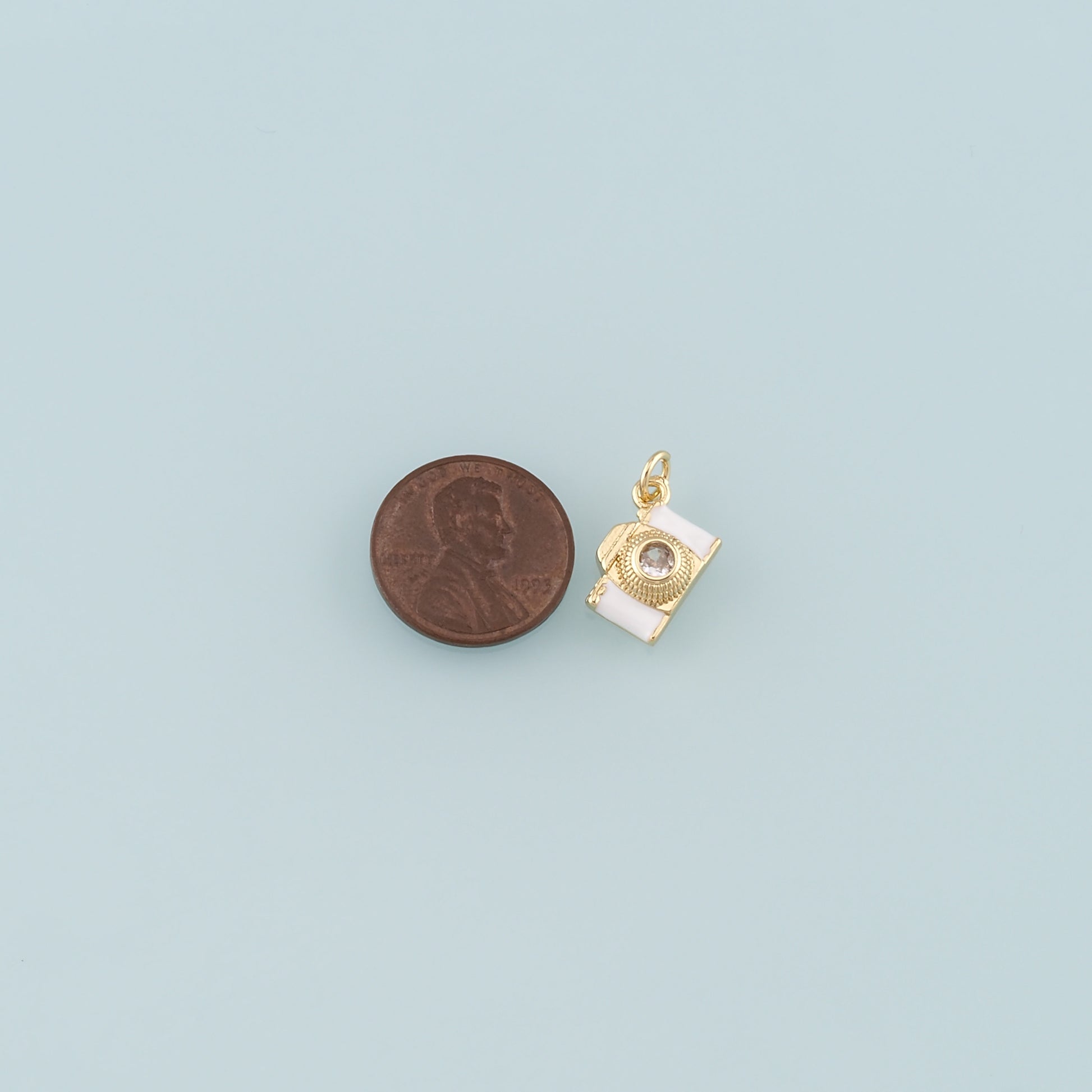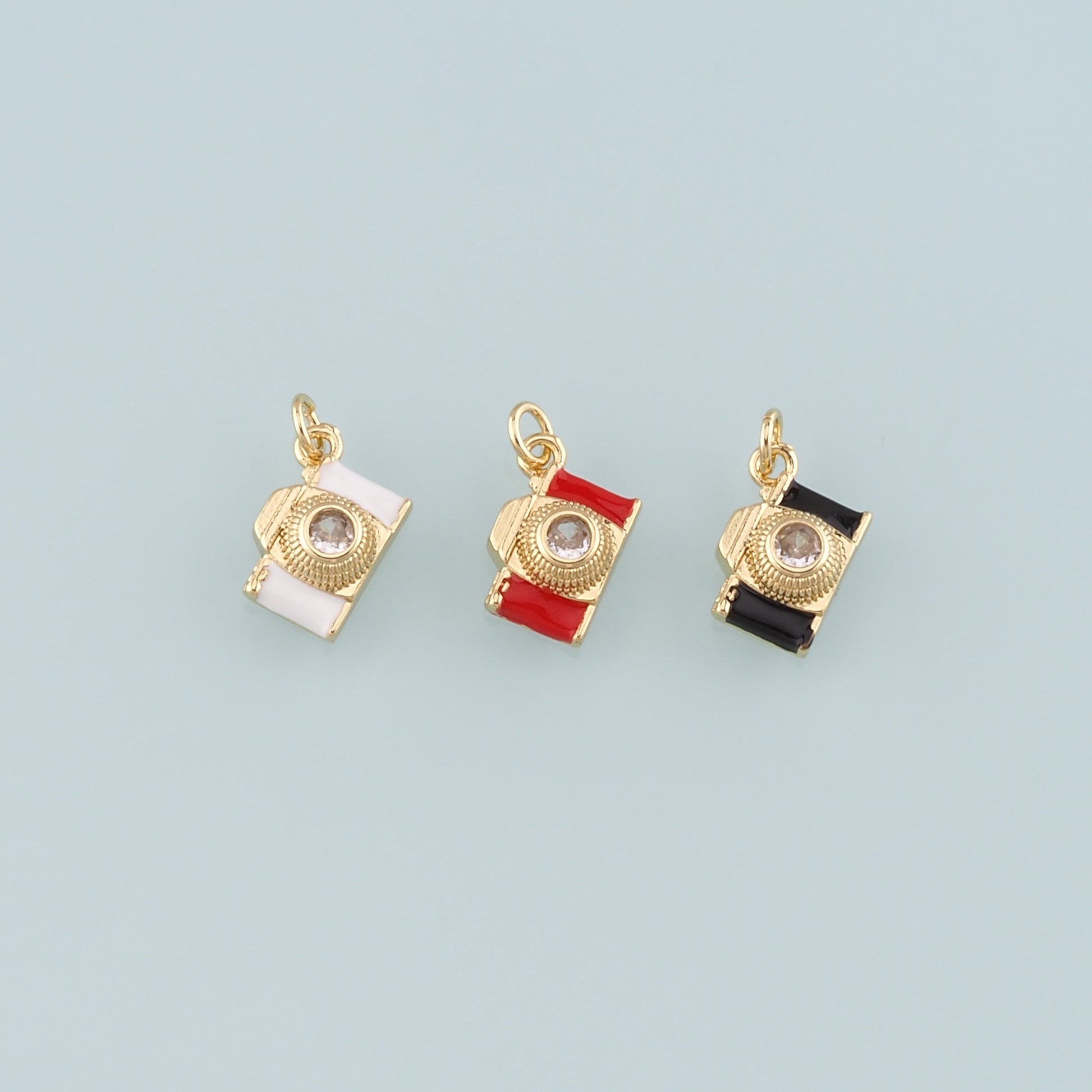 Gold Camera Charms,18K Gold Filled Camera Pendant,Enamel Camera Charm Bracelet Necklace for DIY Jewelry Making Supply