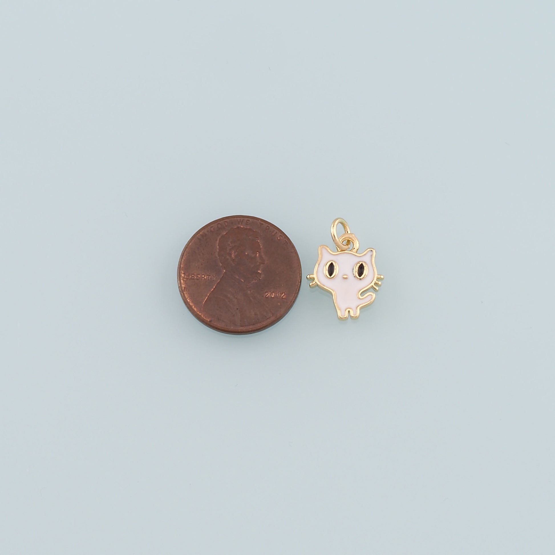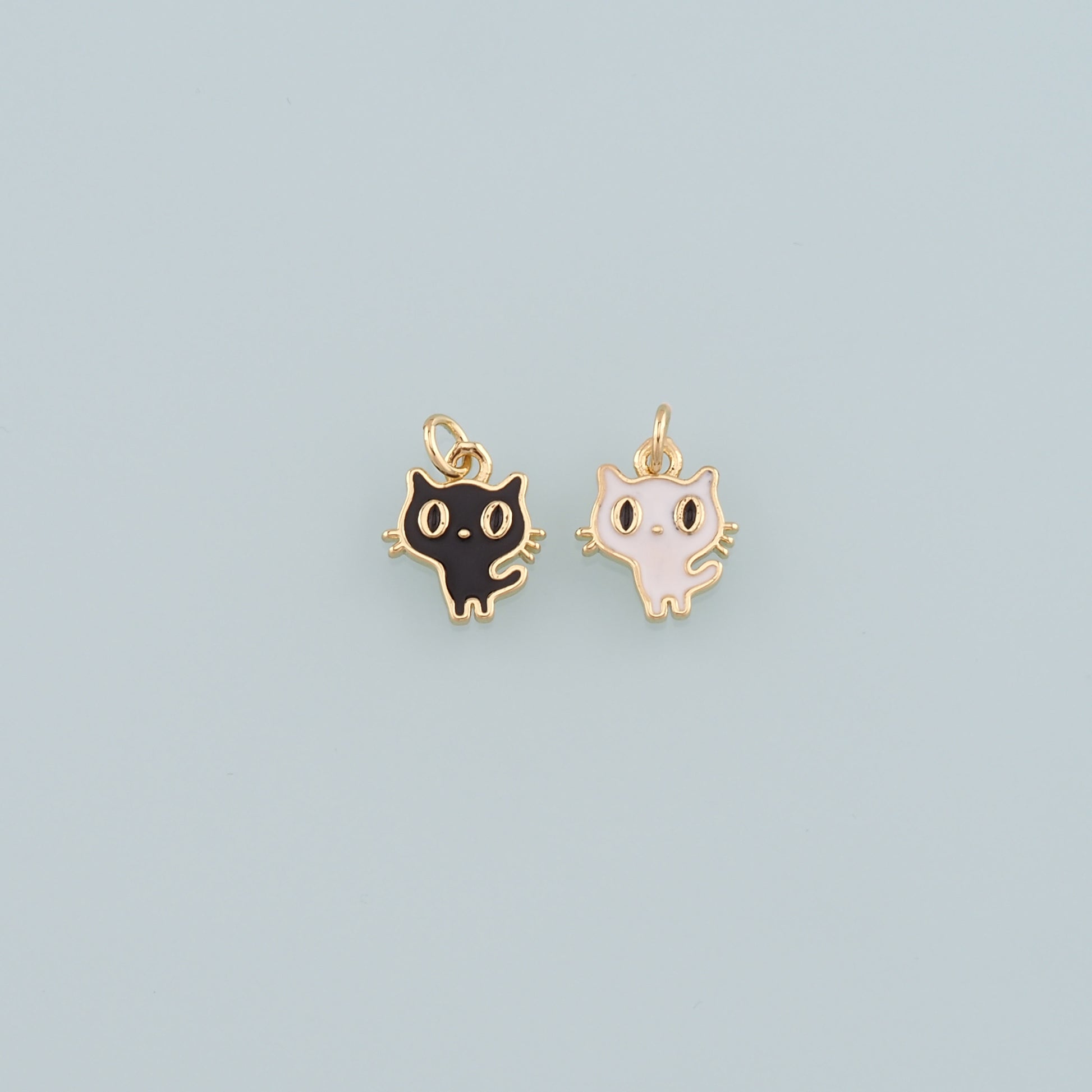 Gold Cat Charm,18K Gold Filled Cat Pendant,Enamel Animal Charm Bracelet Necklace for DIY Jewelry Making Supply