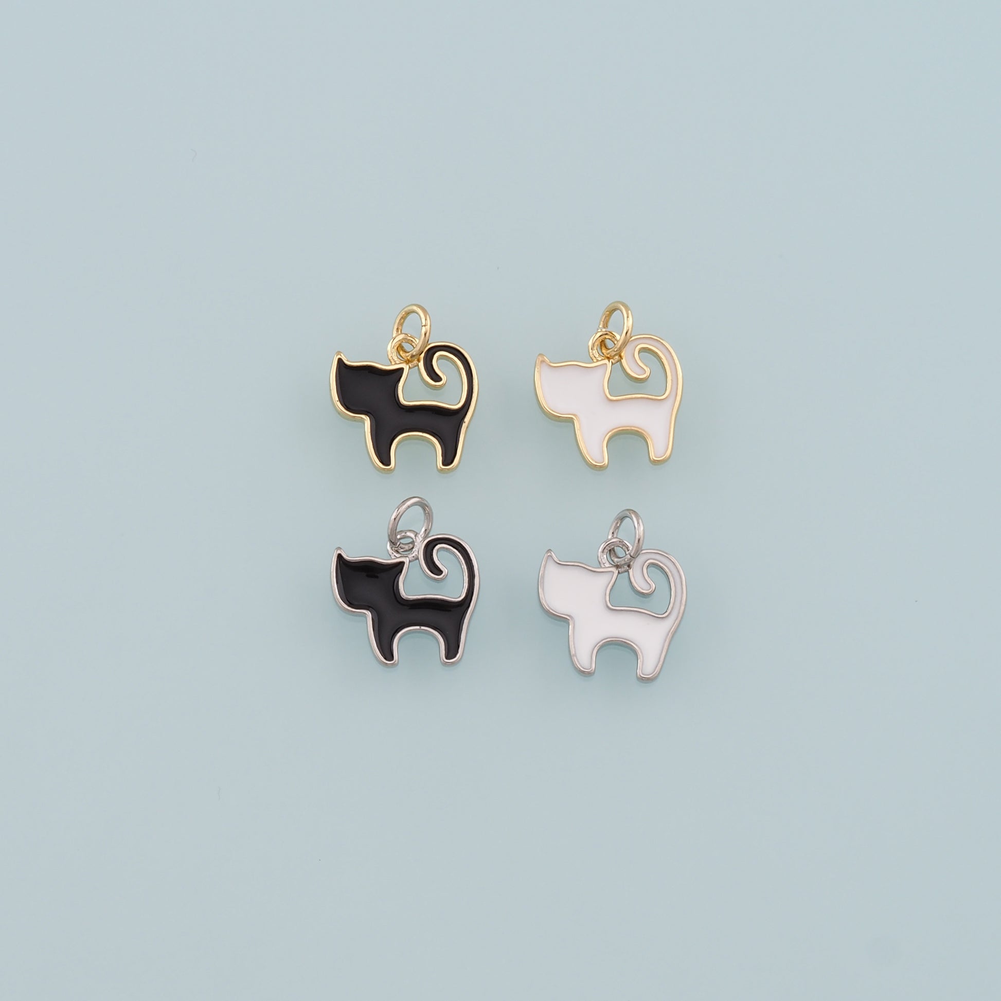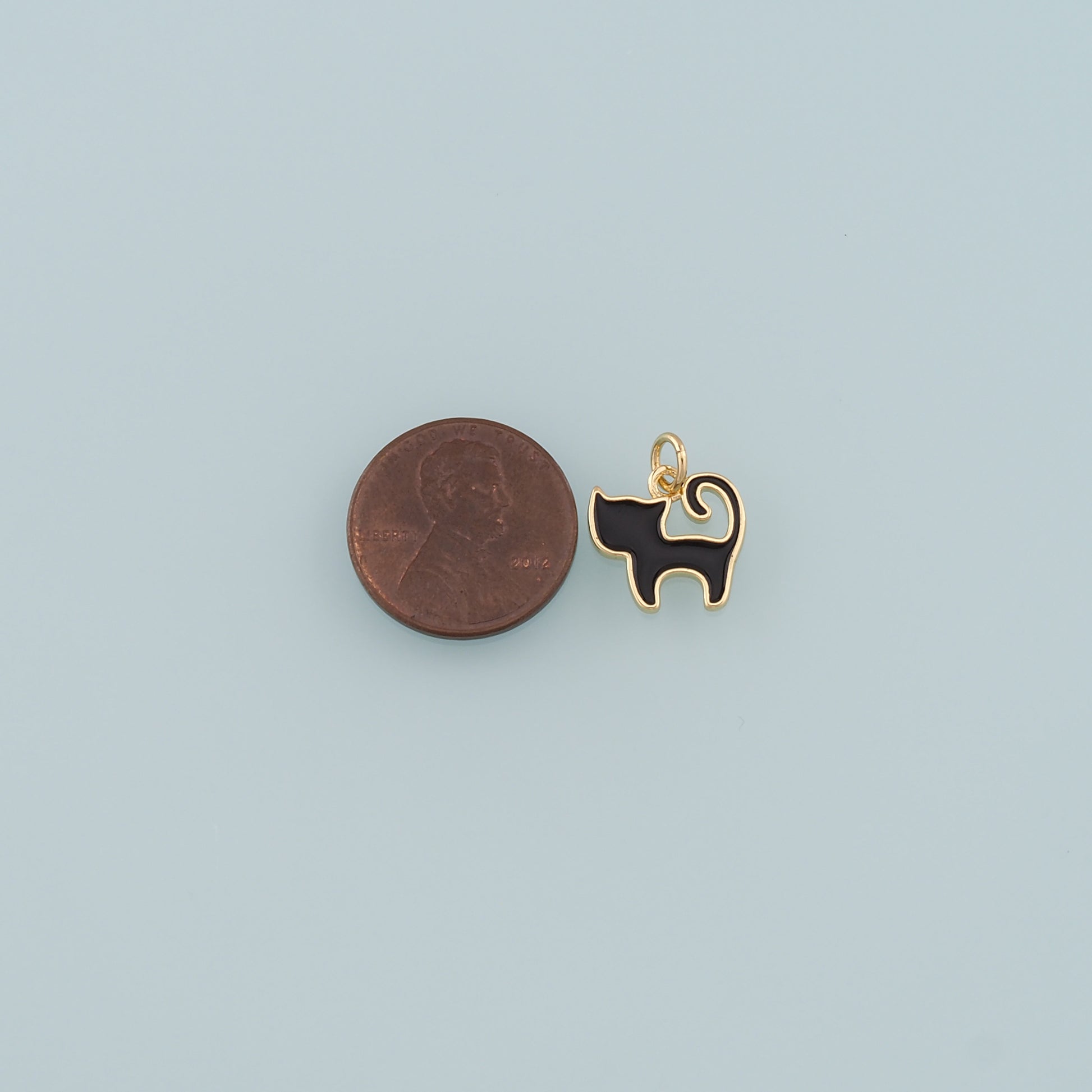 Gold Cat Charm,18K Gold Filled Cat Pendant,Enamel Animal Charm Bracelet Necklace for DIY Jewelry Making Supply