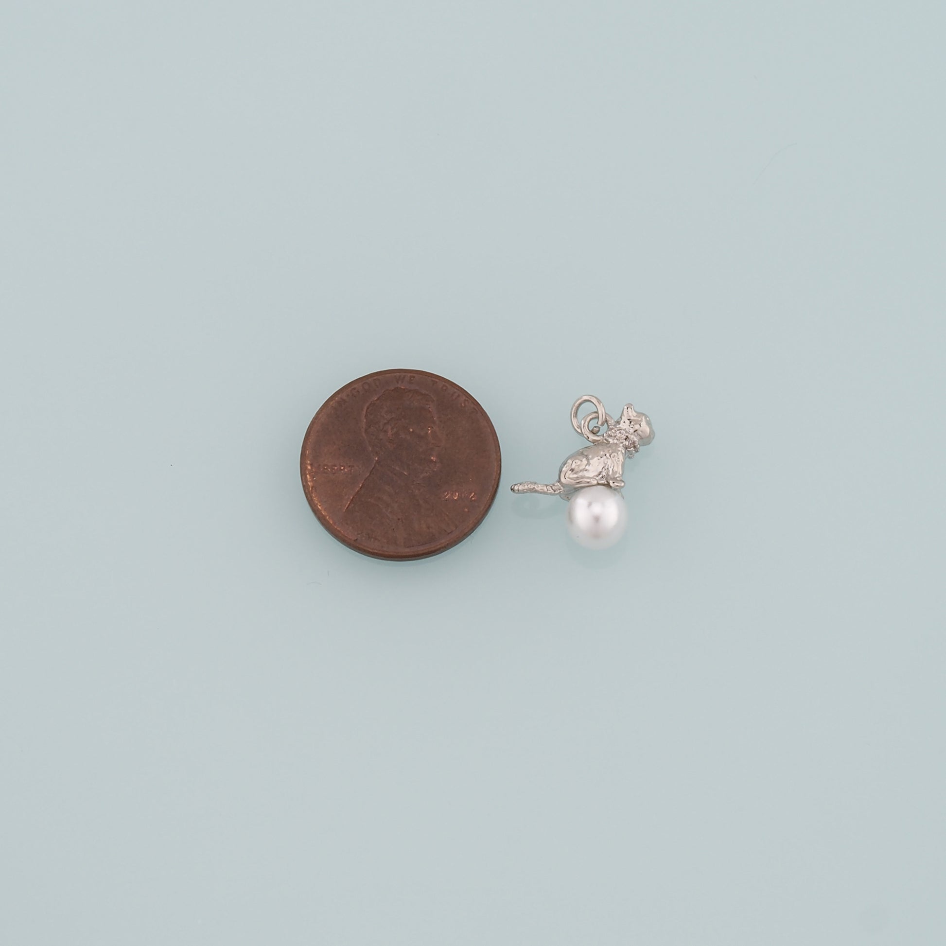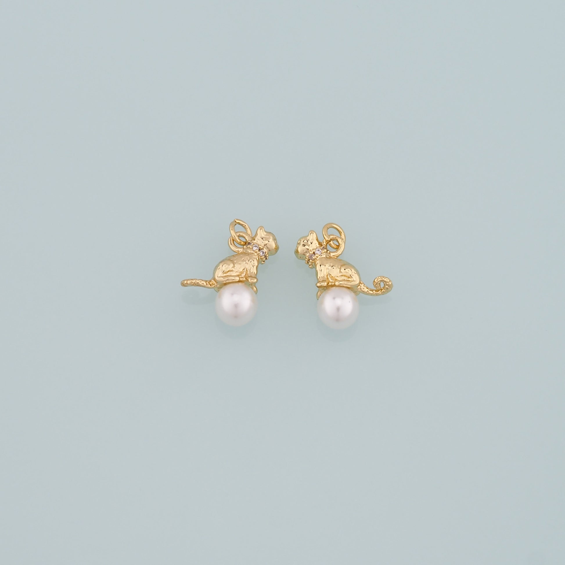 Gold Cat Charm,18K Gold Filled Pearl Cat Pendant,CZ Micro Pave Animal Charm Bracelet Necklace for DIY Jewelry Making Supply