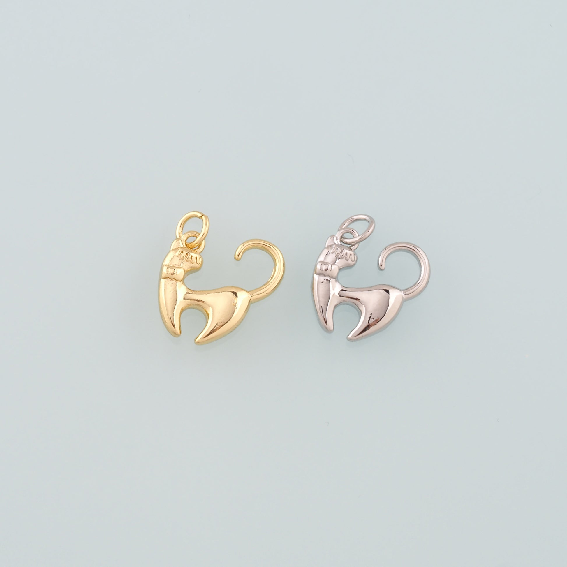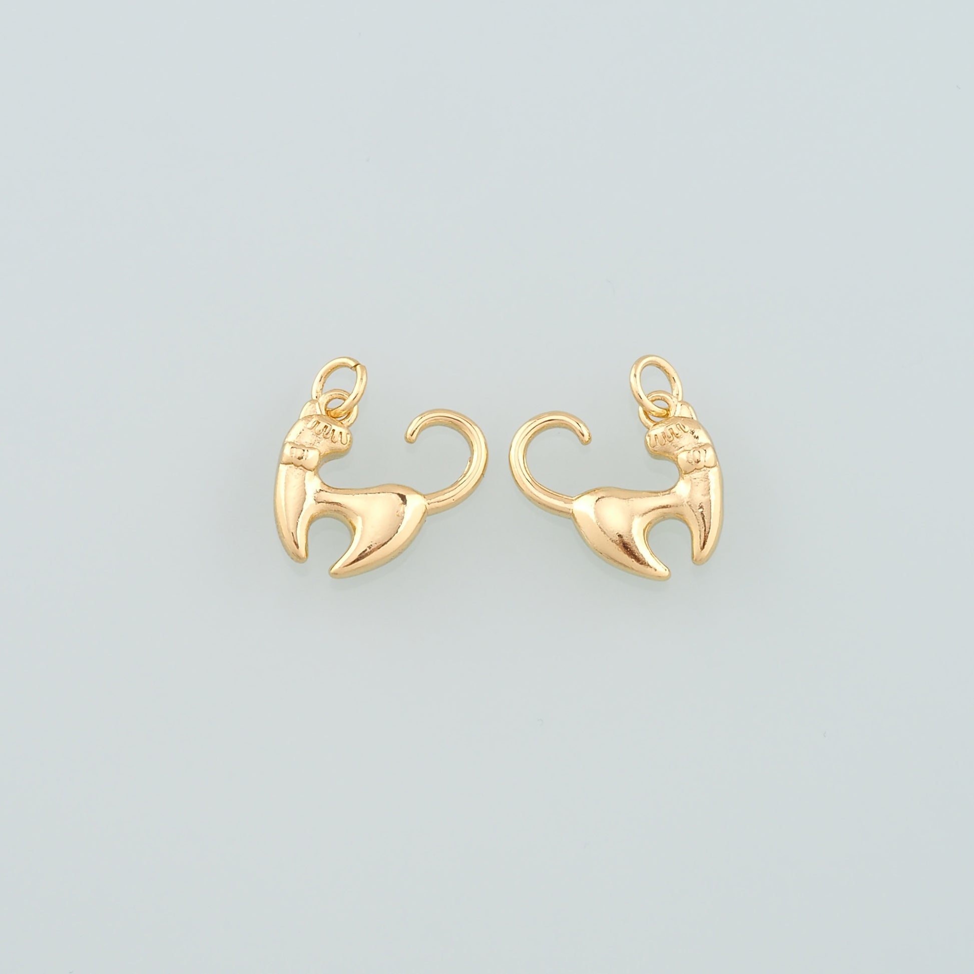 Gold Cat Charms,18K Gold Filled Cat Pendant,Cute Cat Charm Bracelet Necklace for DIY Jewelry Making Supply