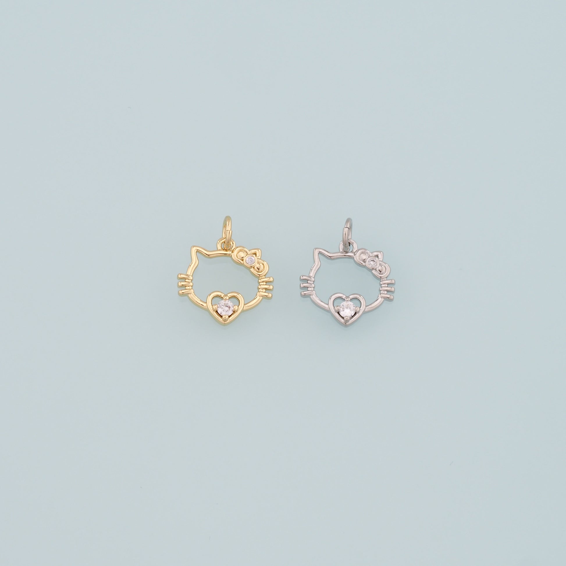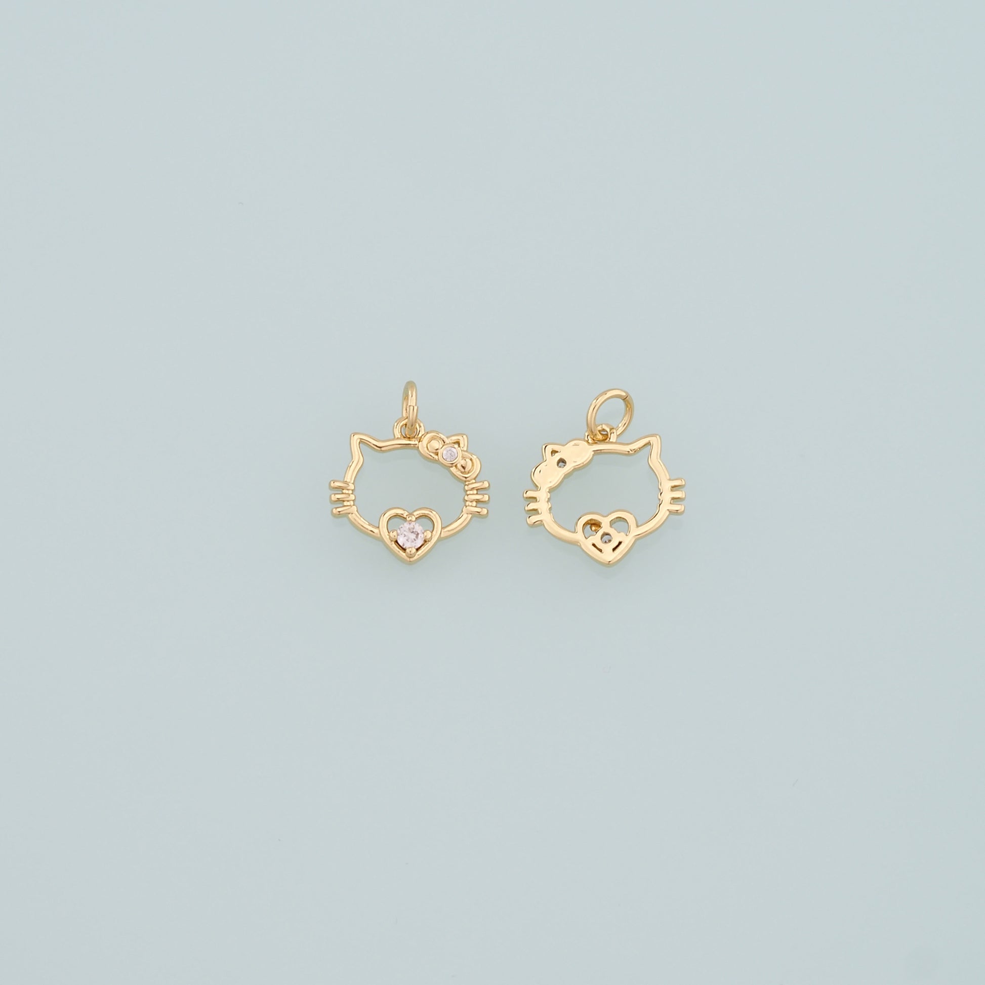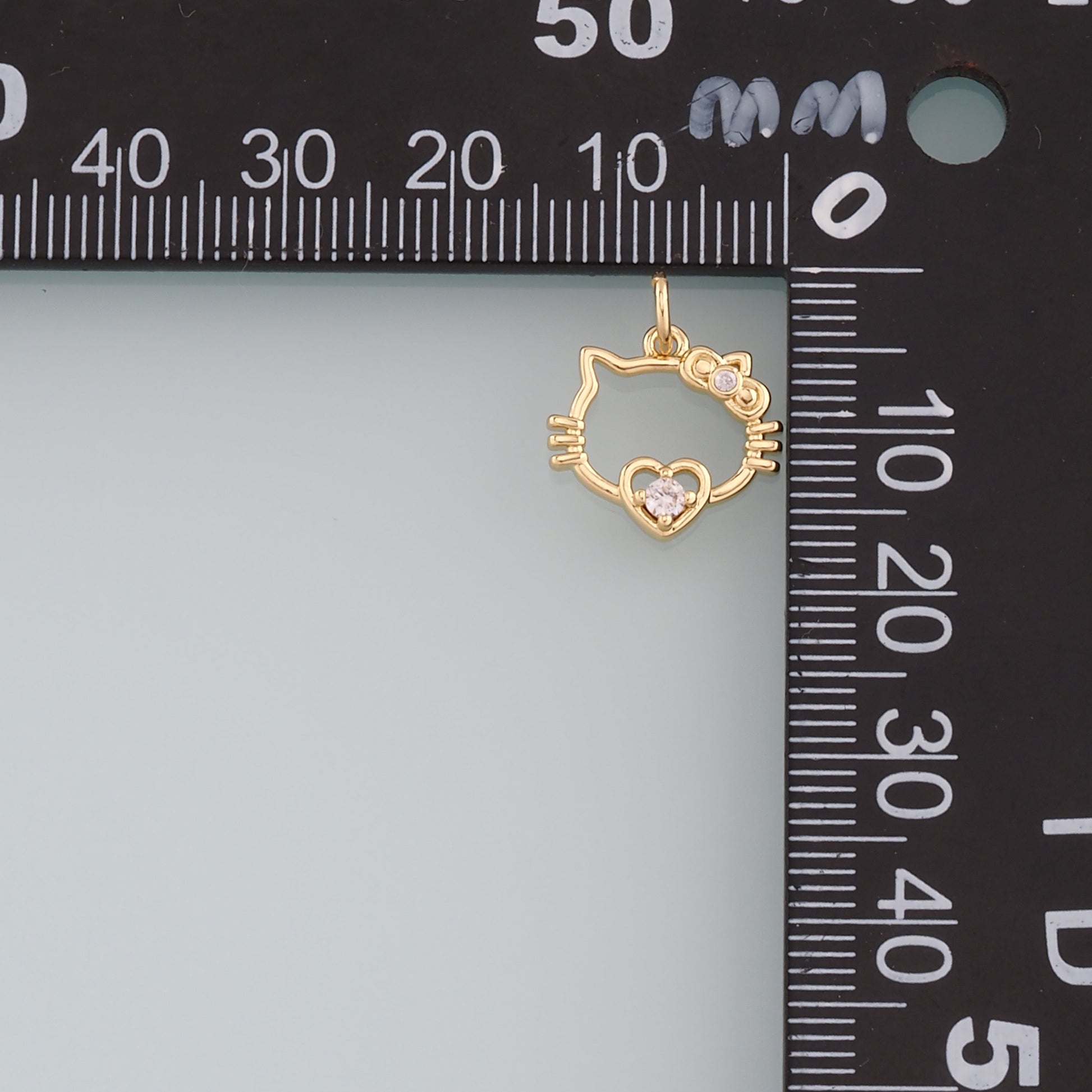 Gold Cat Charms,18K Gold Filled Cat Pendant,CZ Micro Pave Cat Charm Bracelet Necklace for DIY Jewelry Making Supply