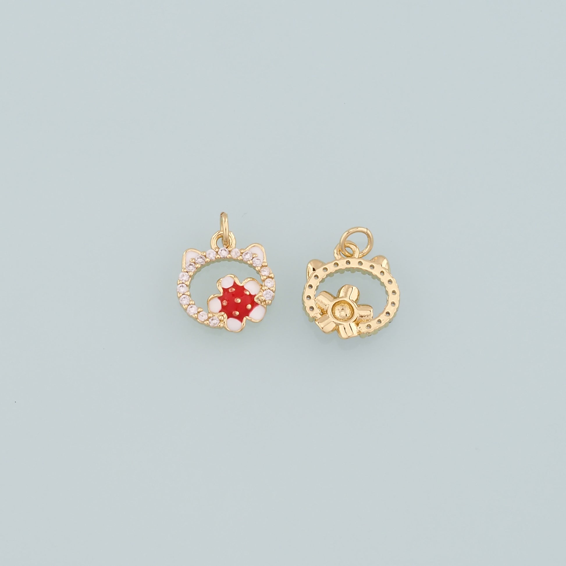 Gold Cat Charms,18K Gold Filled Cat Pendant,CZ Micro Pave Cat Charm Bracelet Necklace for DIY Jewelry Making Supply