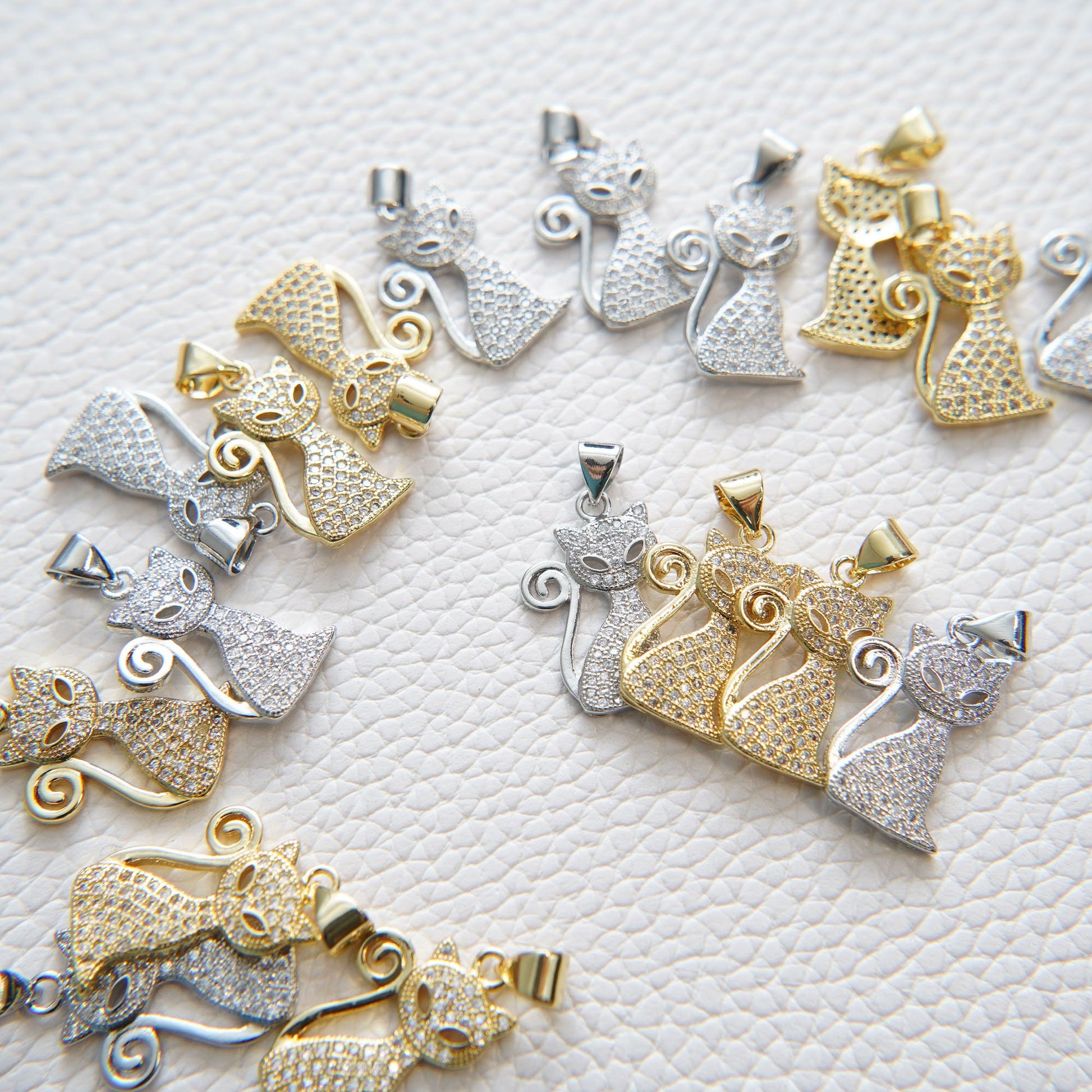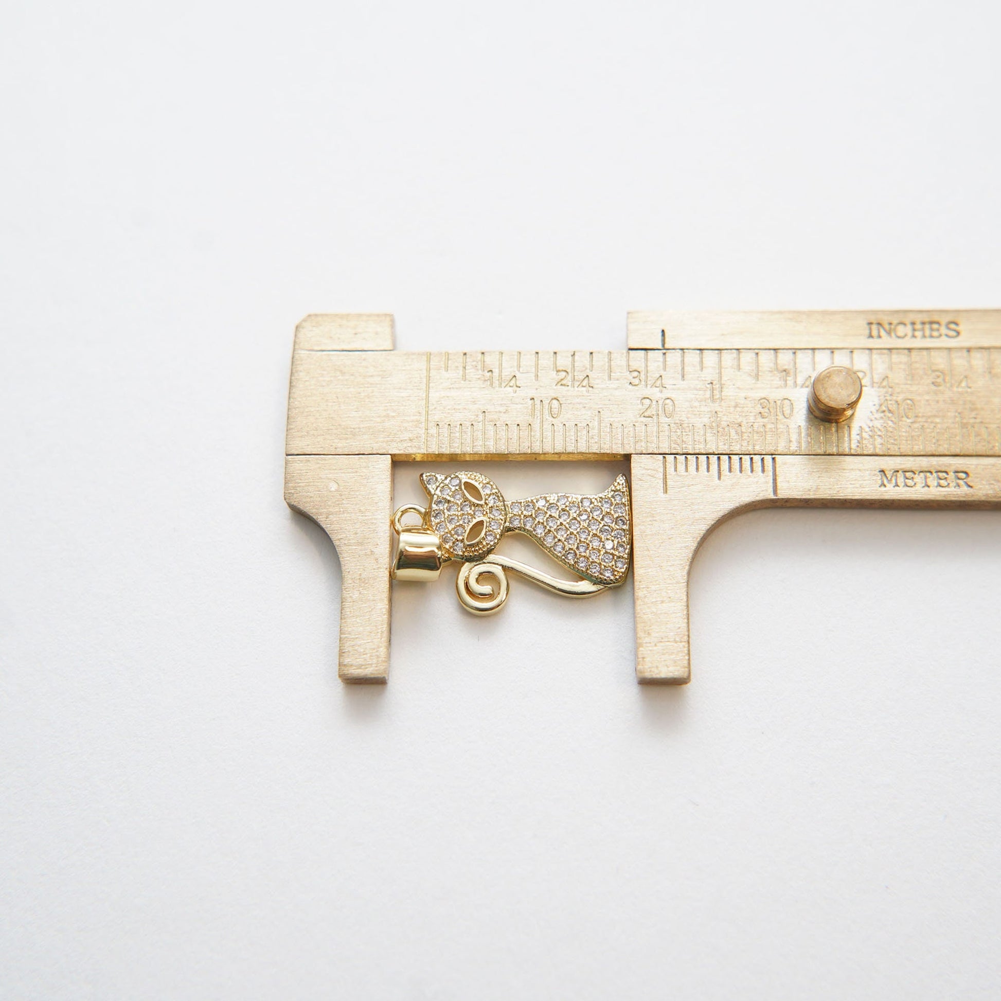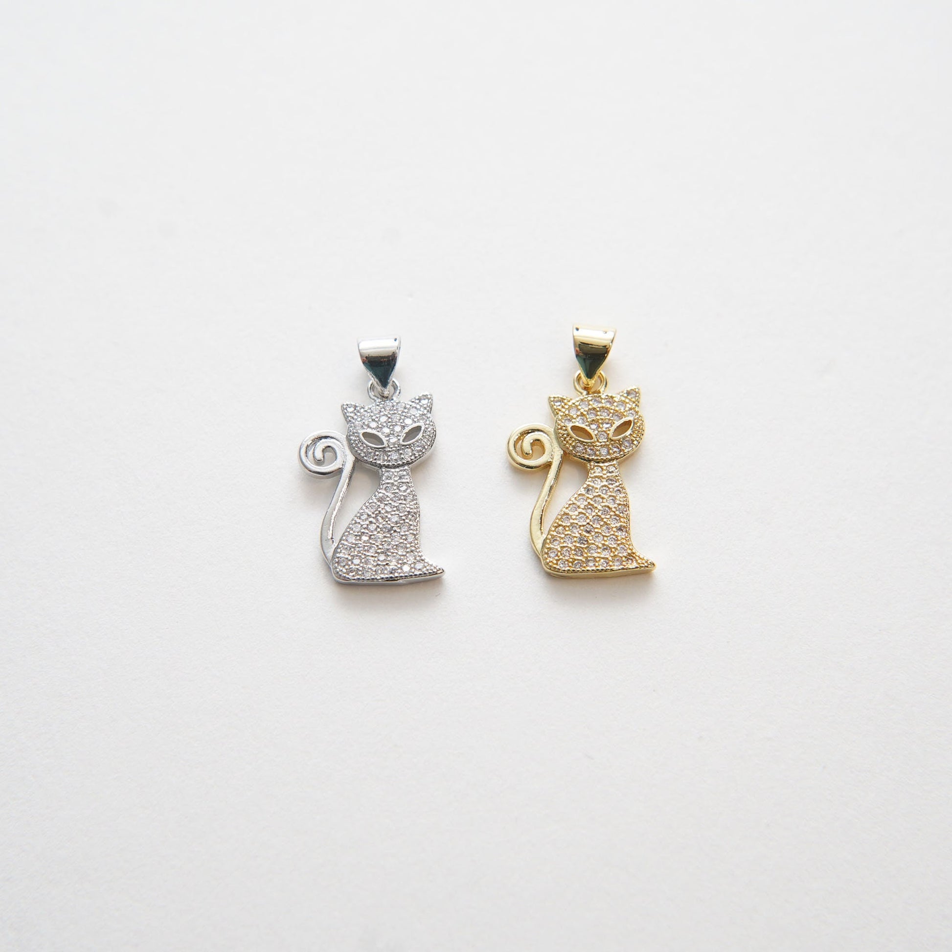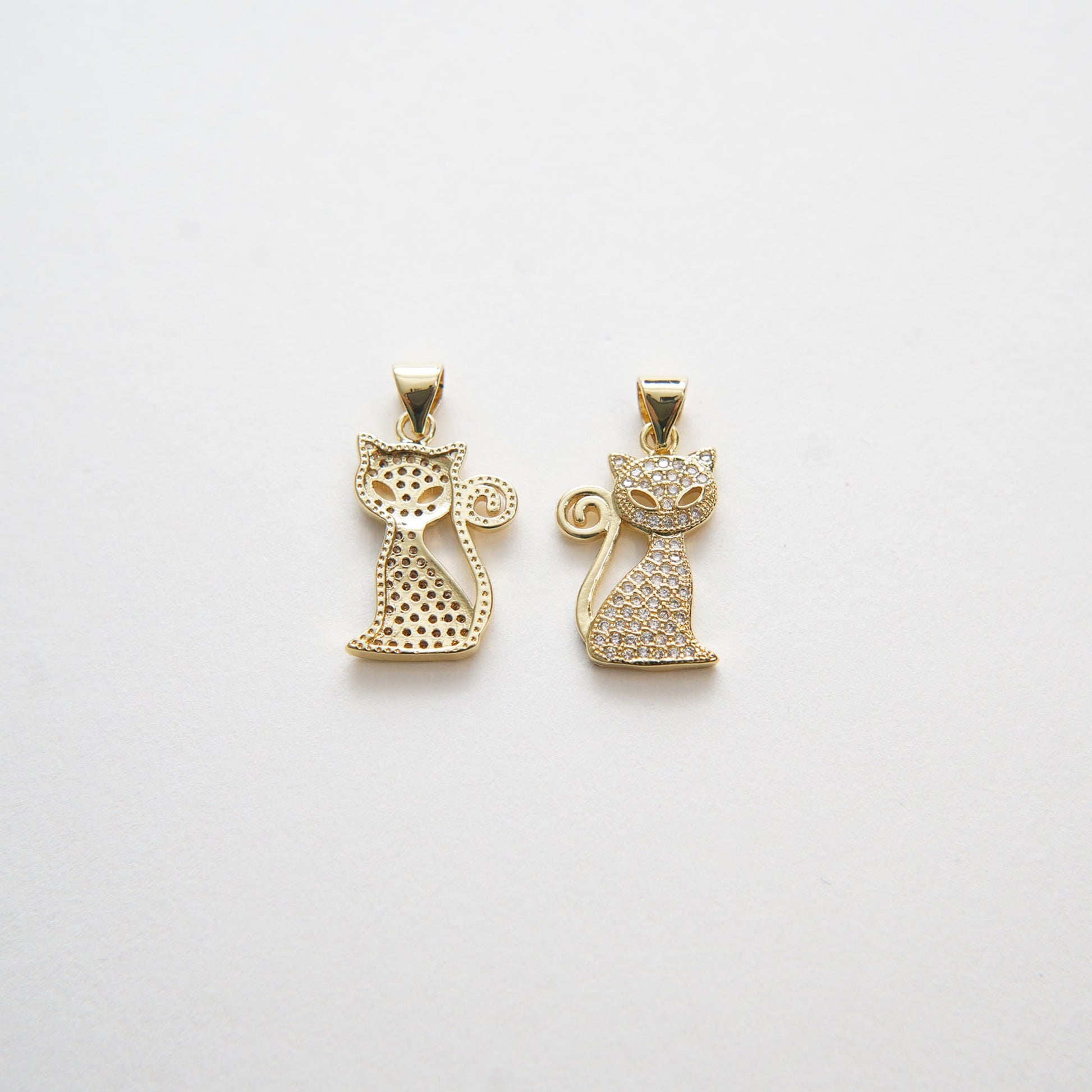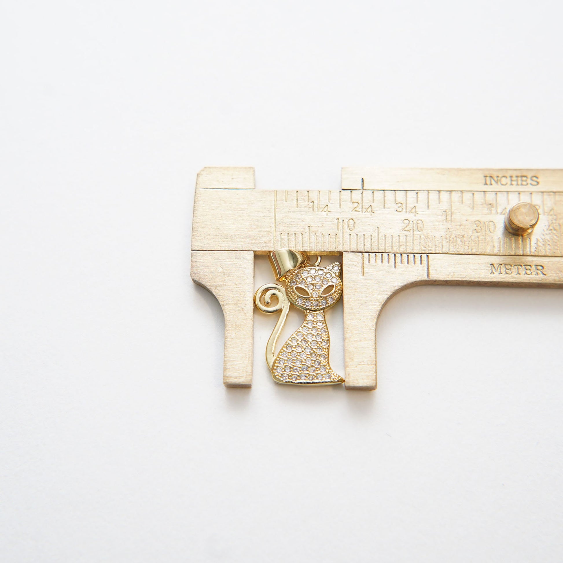 Gold Cat Charms,18K Gold Filled Cat Pendant,CZ Micro Pave Silver Cat Charm Bracelet Necklace for DIY Jewelry Making Supply