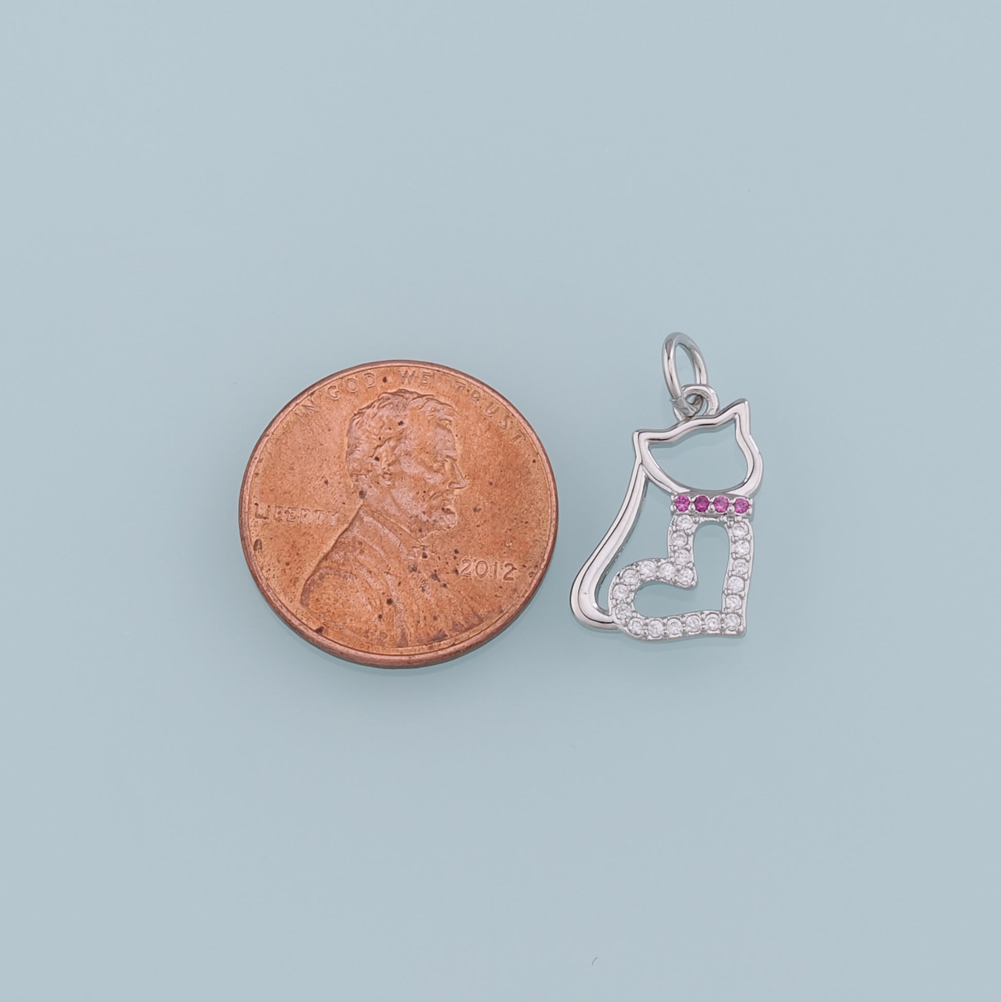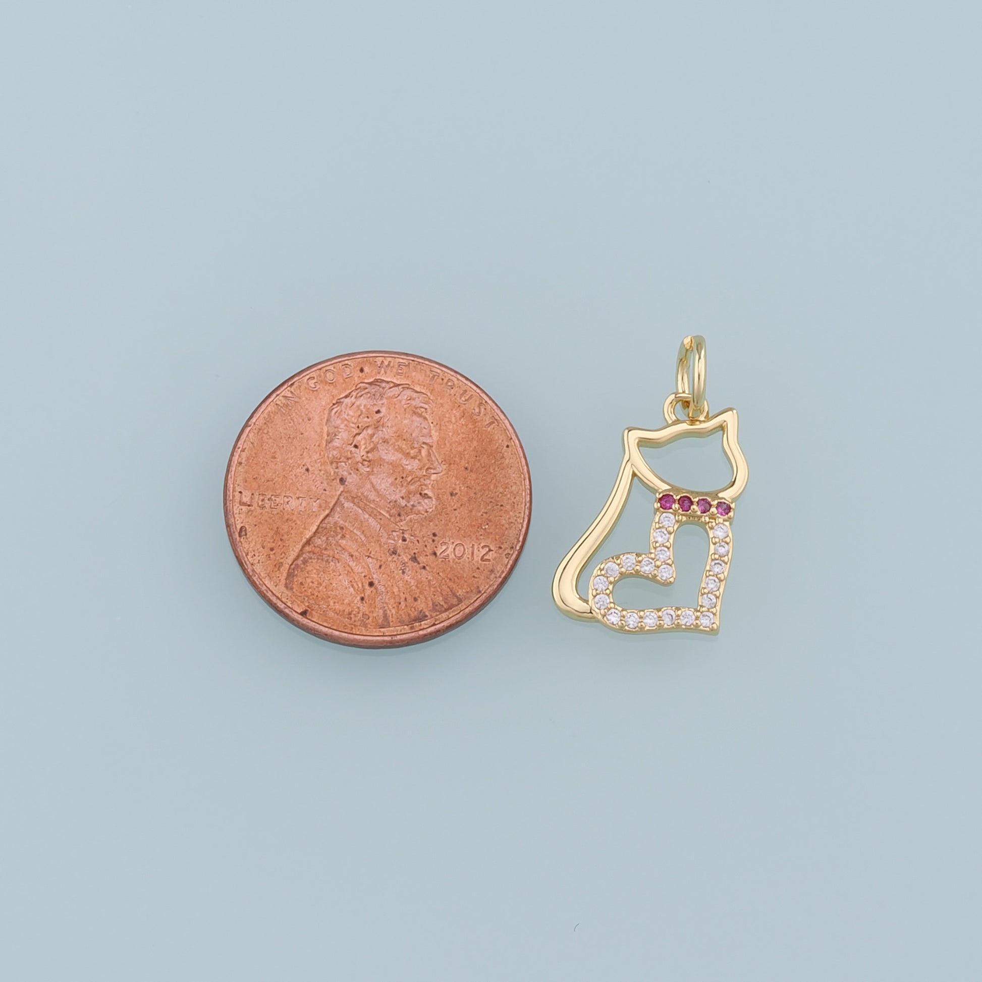 Gold Cat Charms,18K Gold Filled Heart Cat Pendant,CZ Micro Pave Cat Charm Bracelet Necklace for DIY Jewelry Making Supply