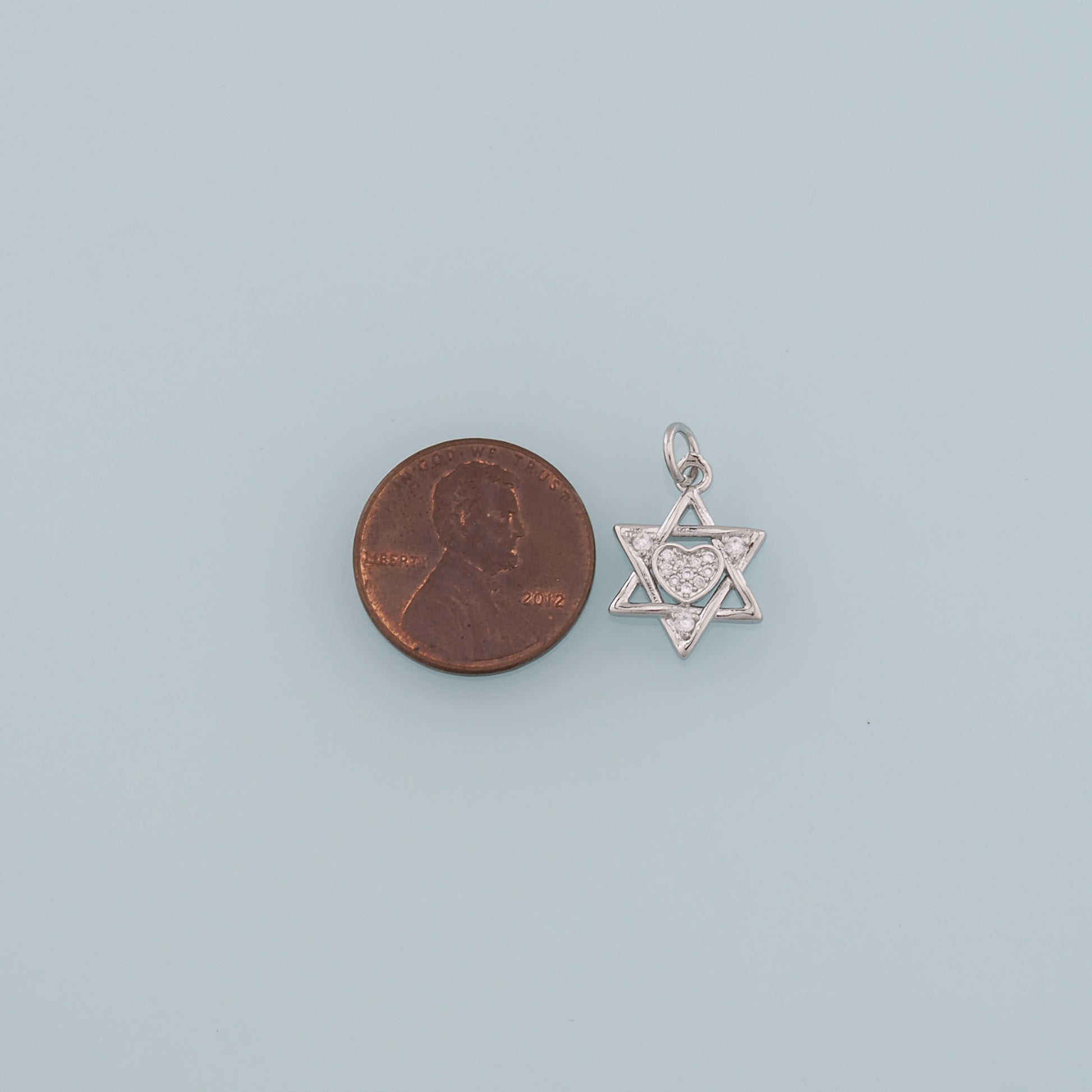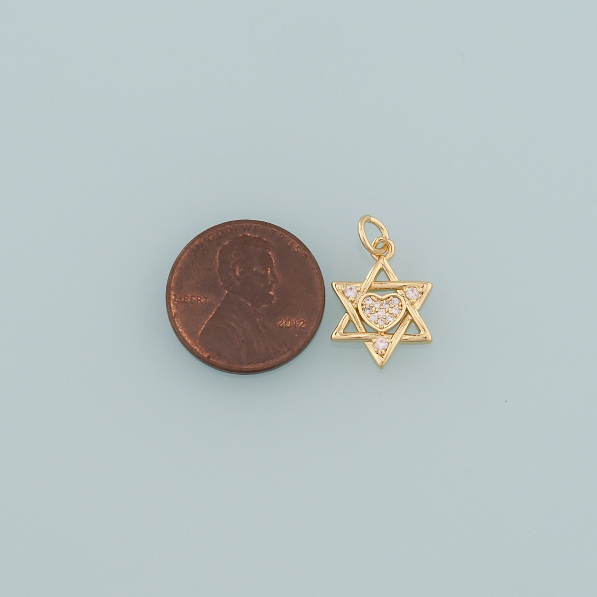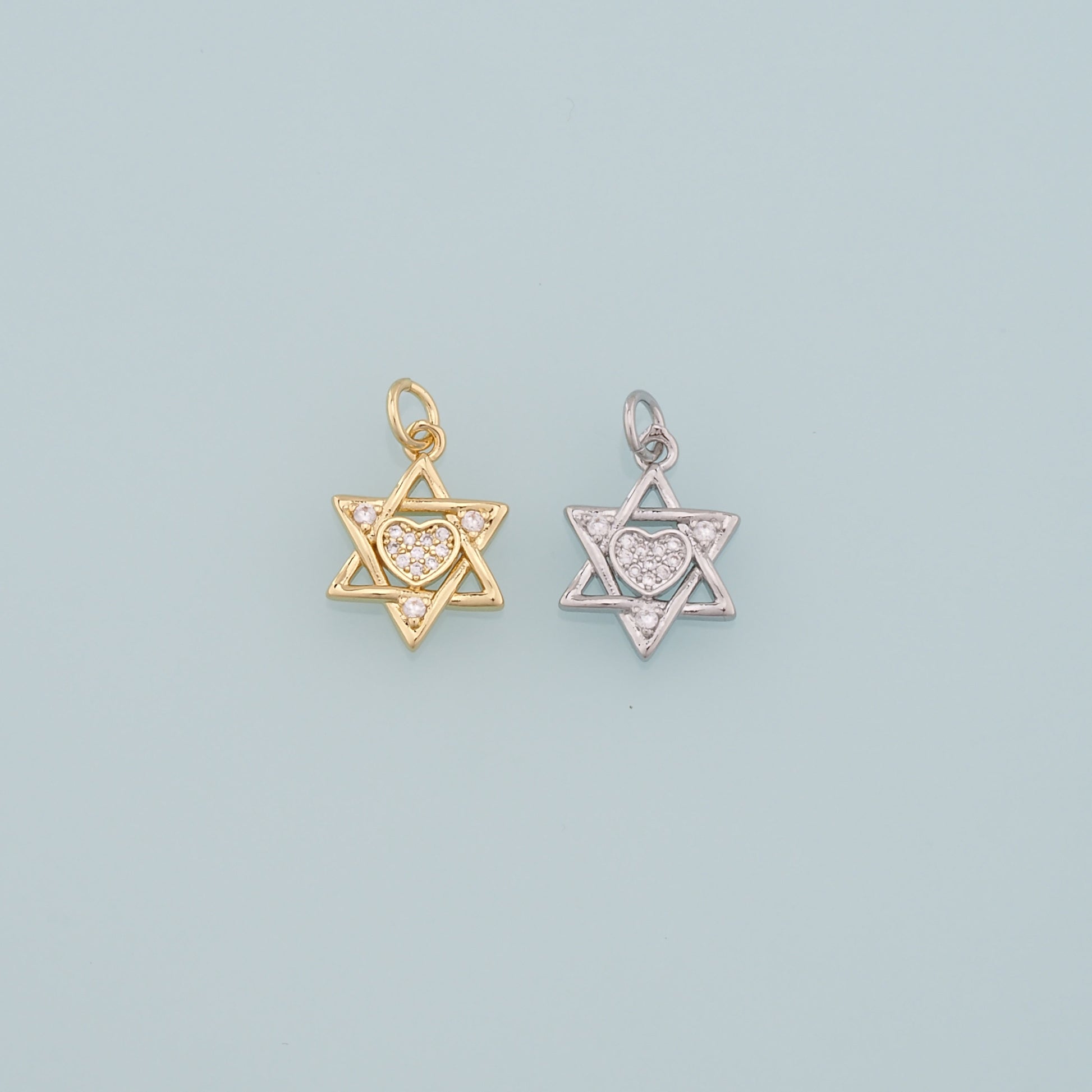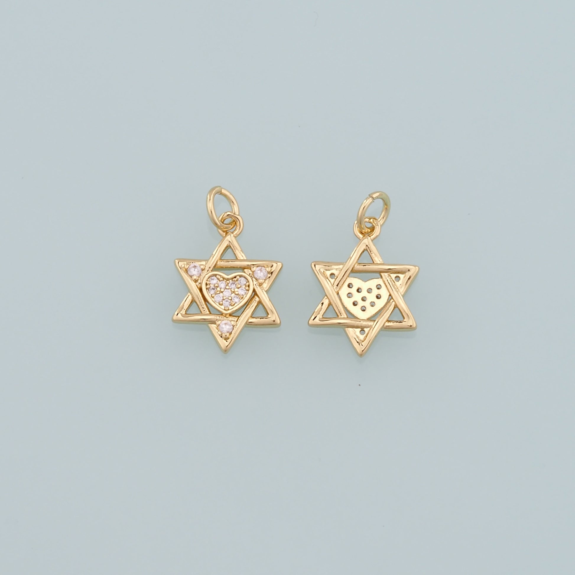 Gold Celestial Charms,18K Gold Filled David Star Pendant,CZ Micro Pave Heart Charm Bracelet Necklace for DIY Jewelry Making Supply