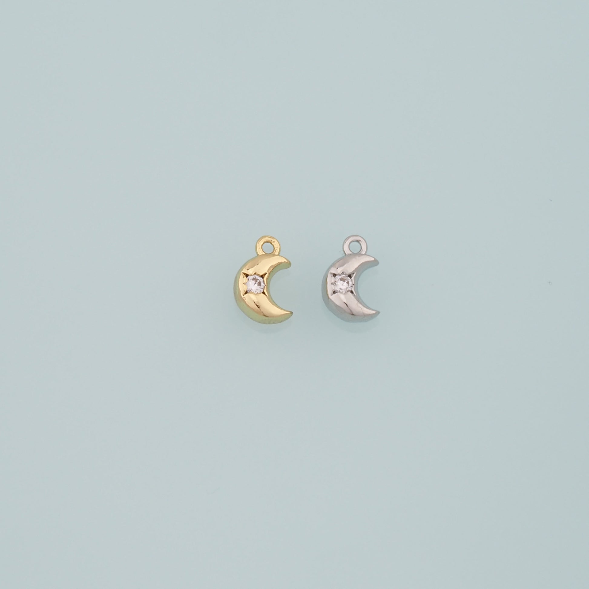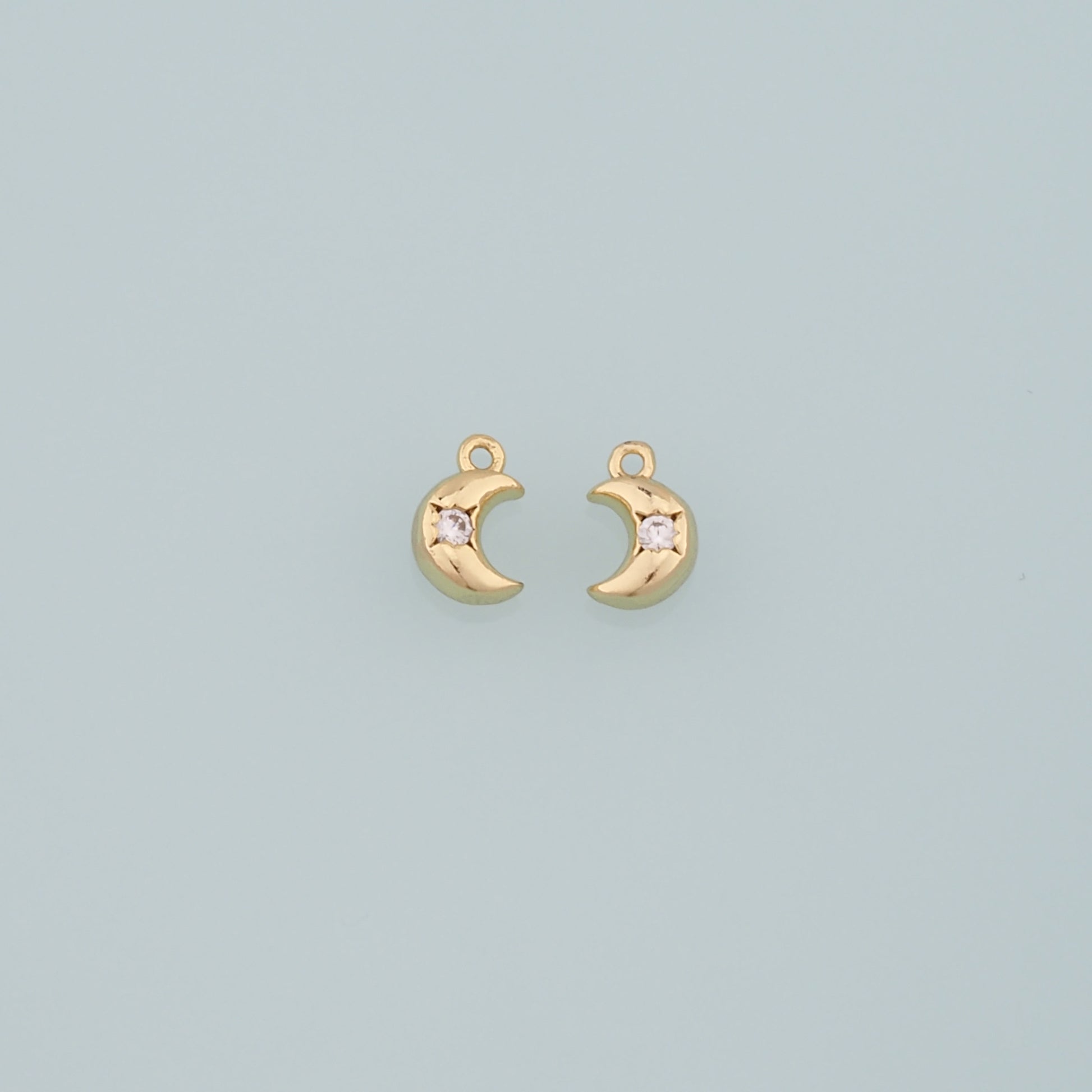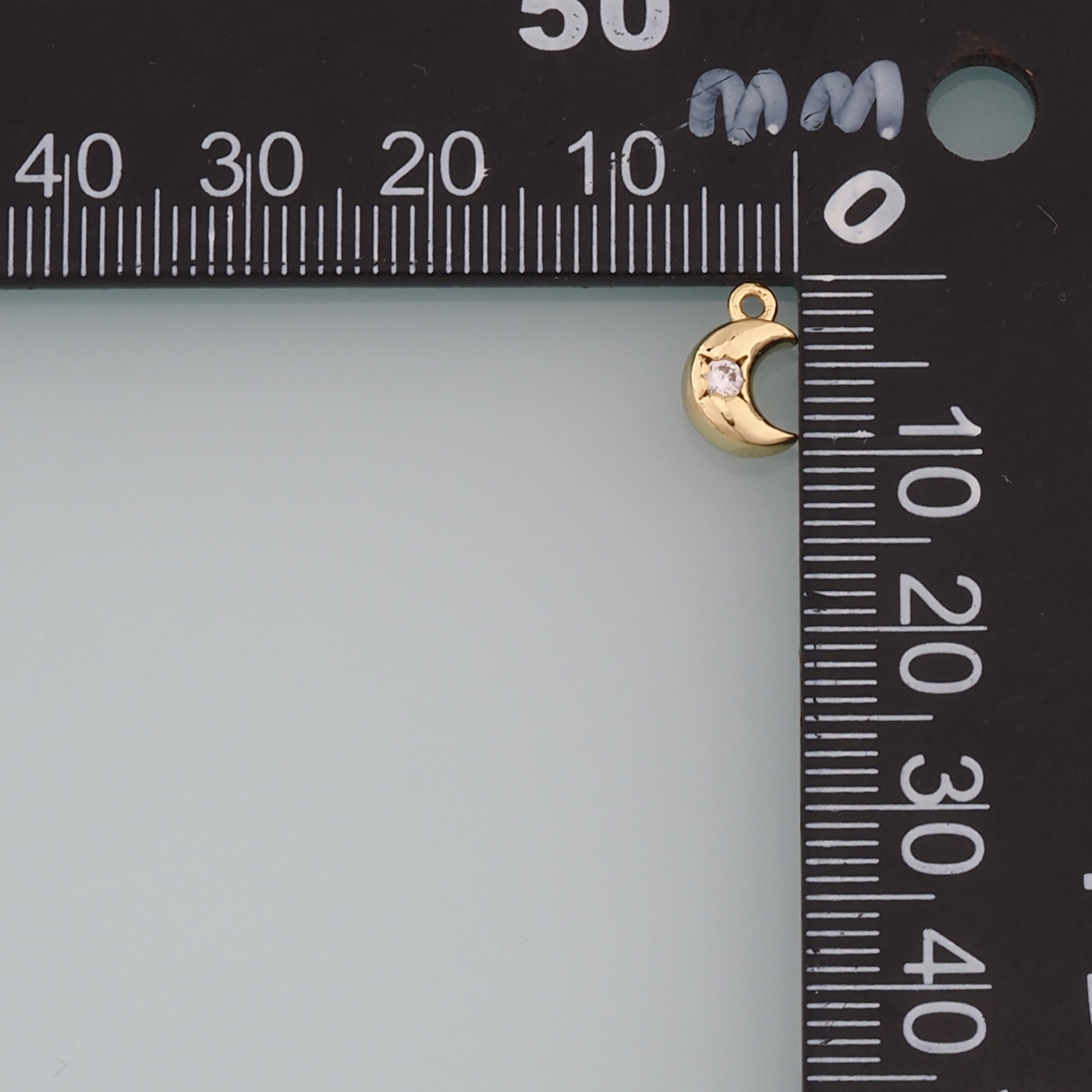 Gold Celestial Charms,18K Gold Filled Moon Pendant,CZ Micro Pave Moon Charm Bracelet Necklace for DIY Jewelry Making Supply