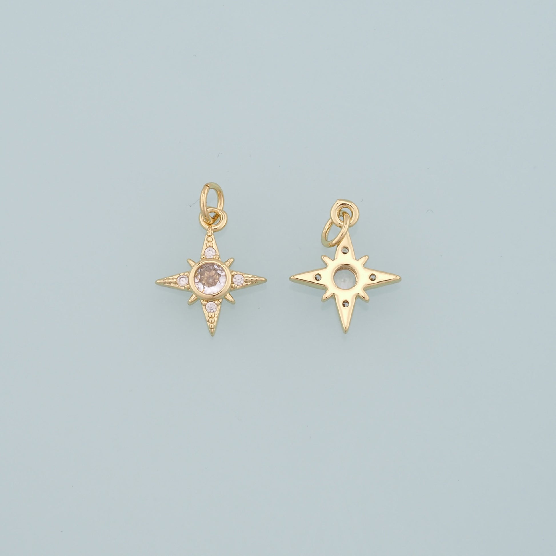 Gold Celestial Charms,18K Gold Filled Star Pendant,CZ Micro Pave North Star Charm Bracelet Necklace for DIY Jewelry Making Supply
