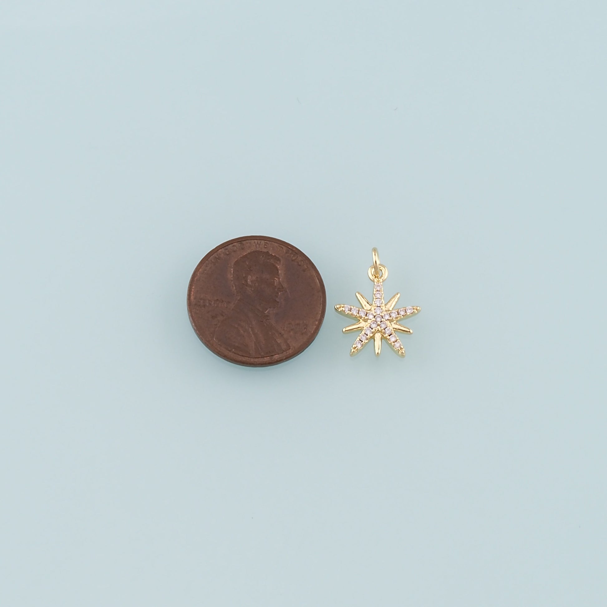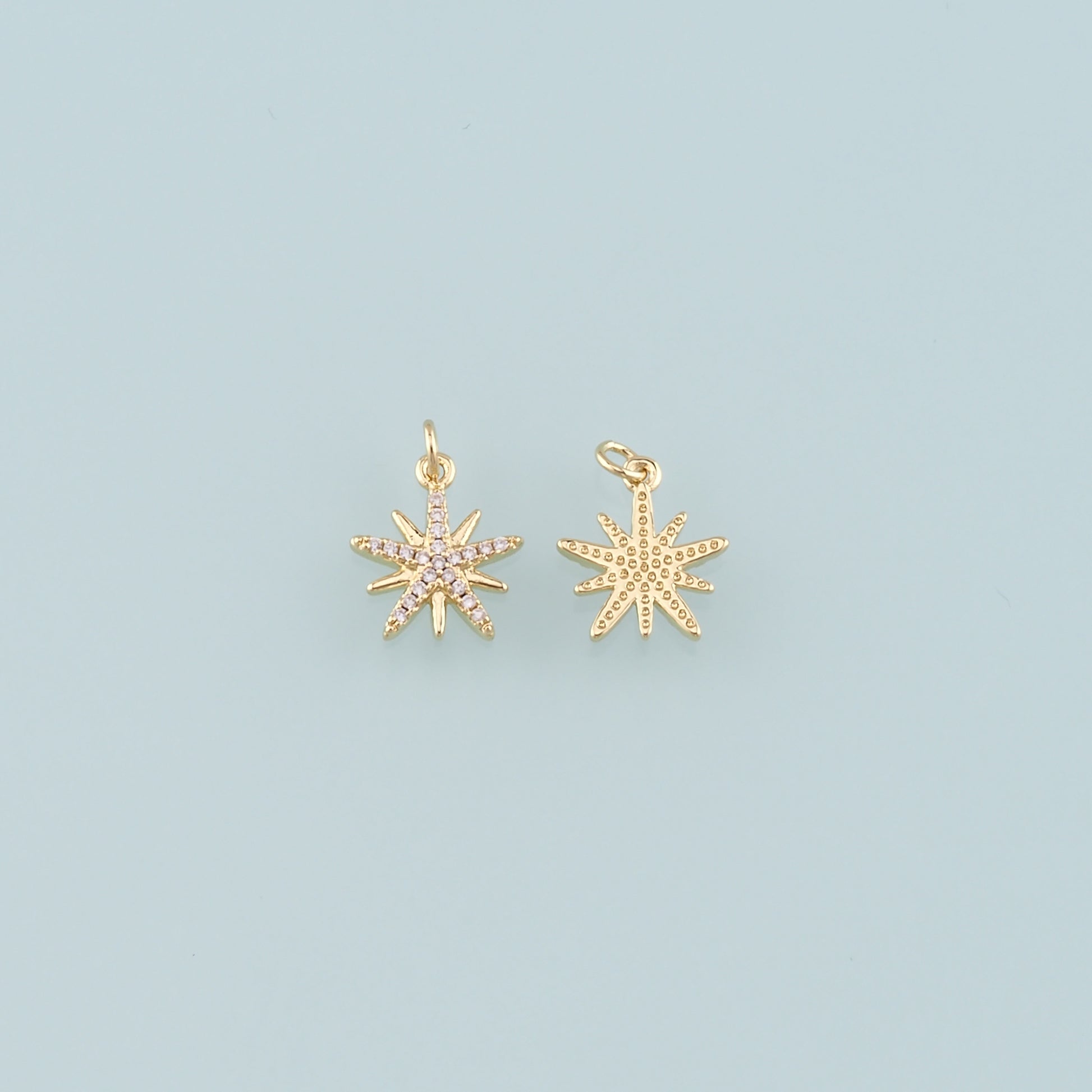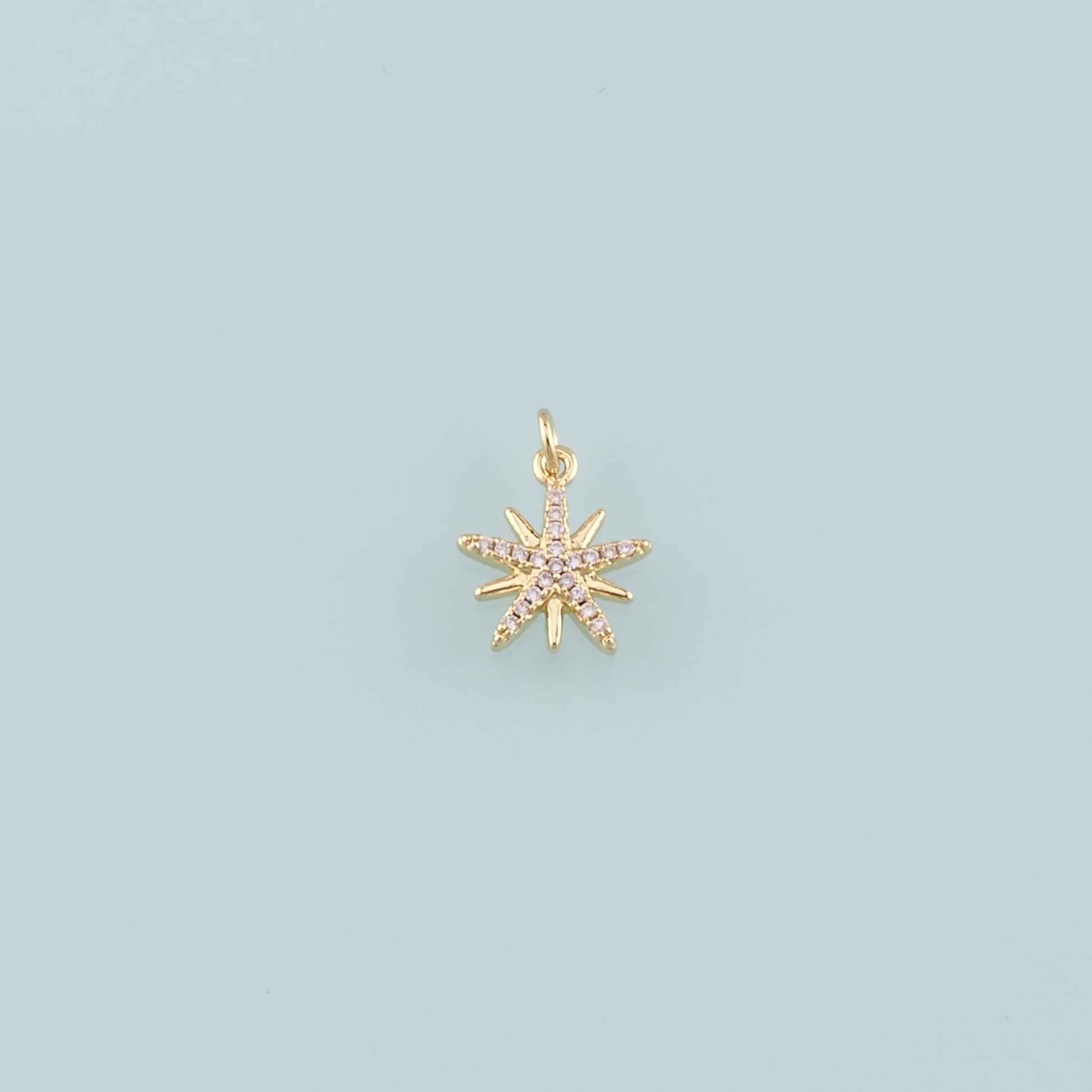 Gold Celestial Charms,18K Gold Filled Star Pendant,CZ Micro Pave North Star Charm Bracelet Necklace for DIY Jewelry Making Supply