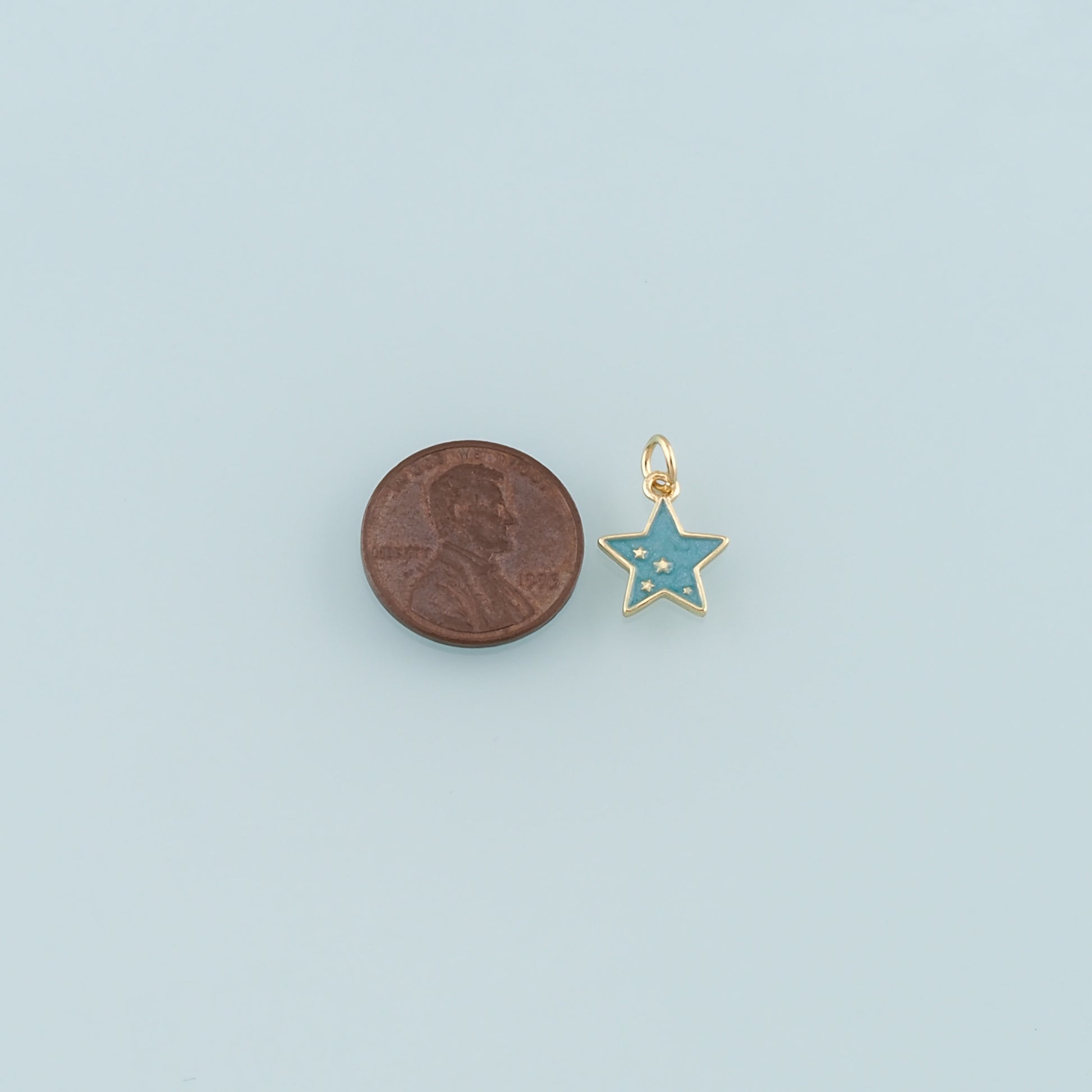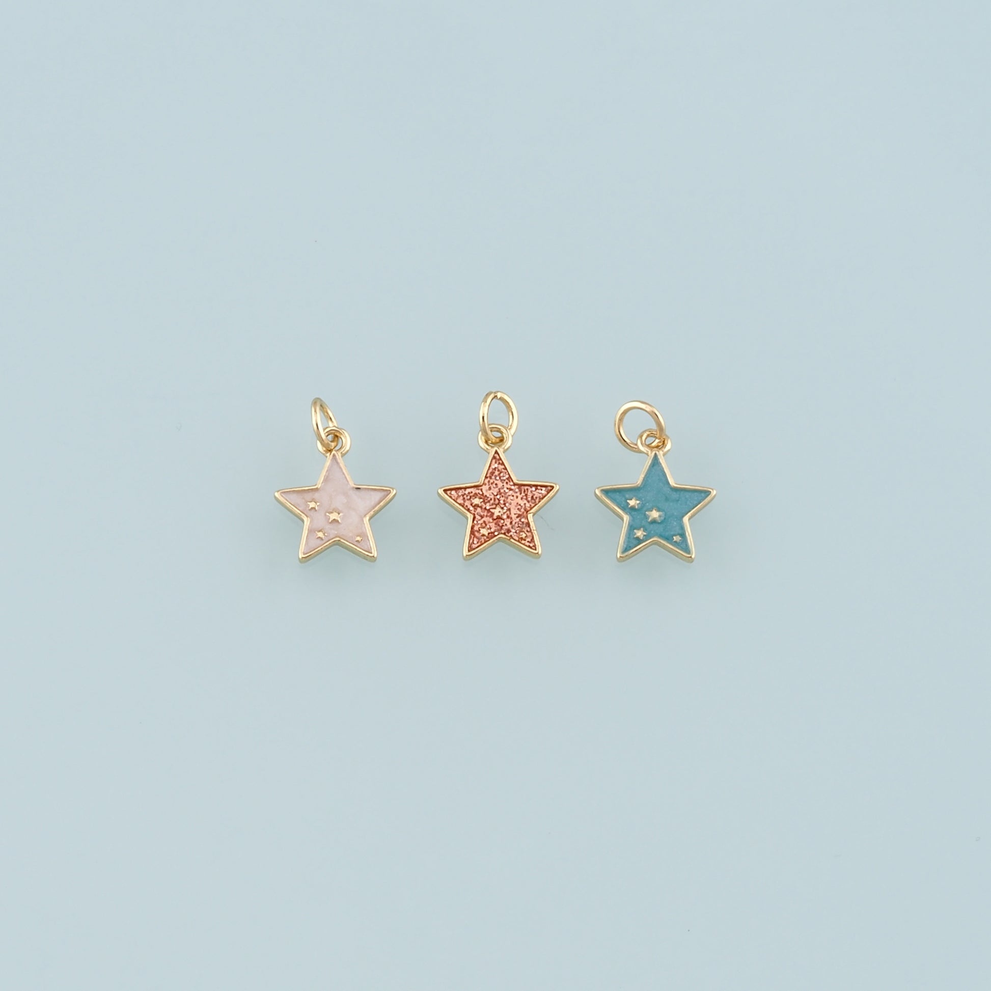 Gold Celestial Charms,18K Gold Filled Star Pendant,Enamel Star Charm Bracelet Necklace for DIY Jewelry Making Supply
