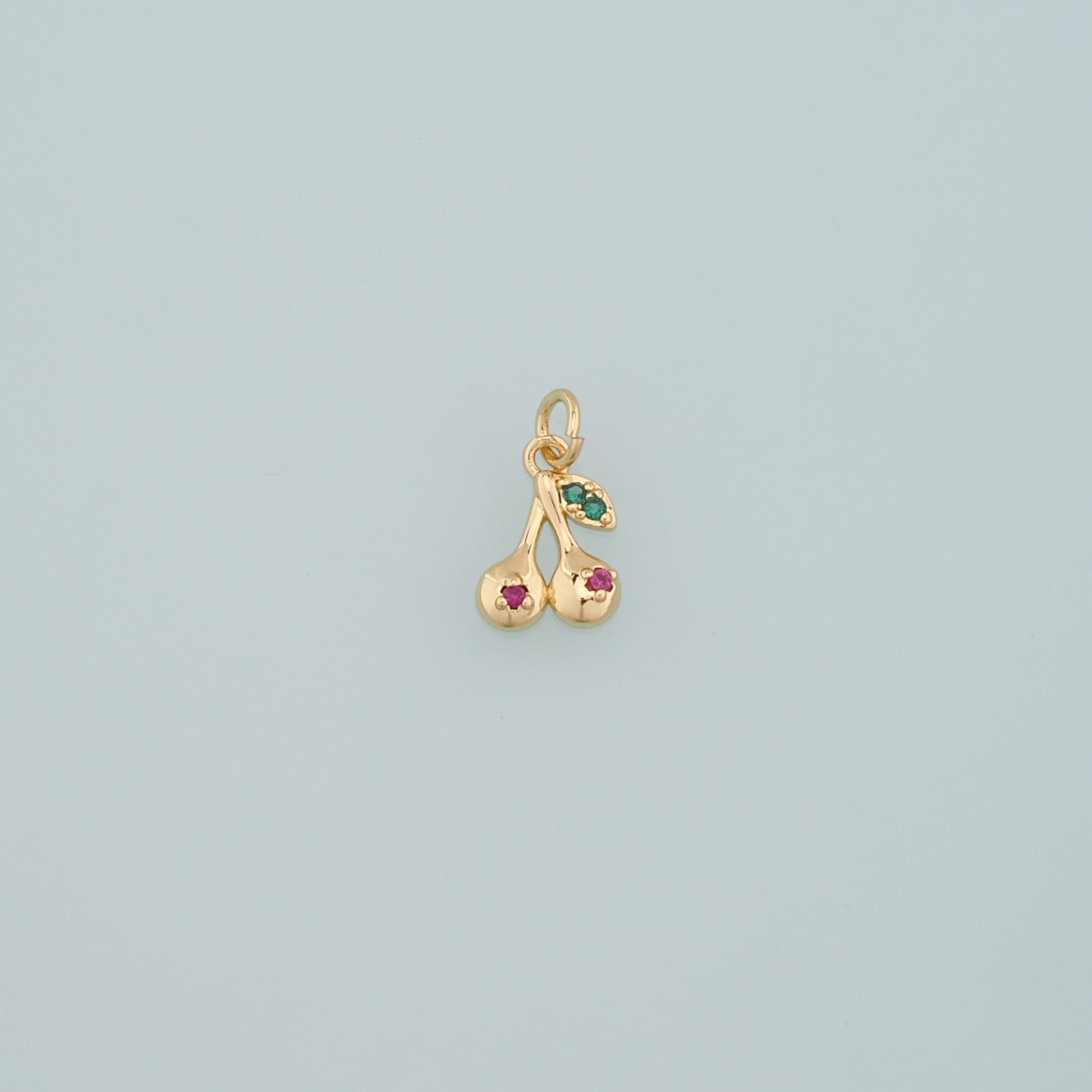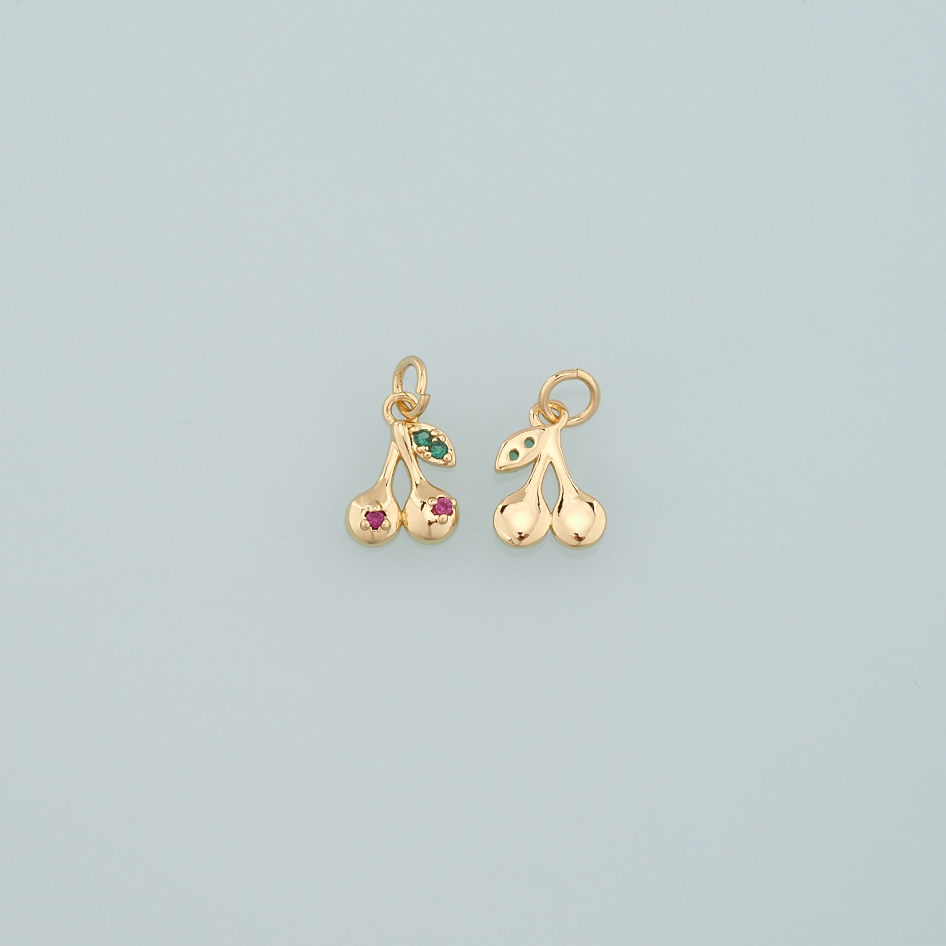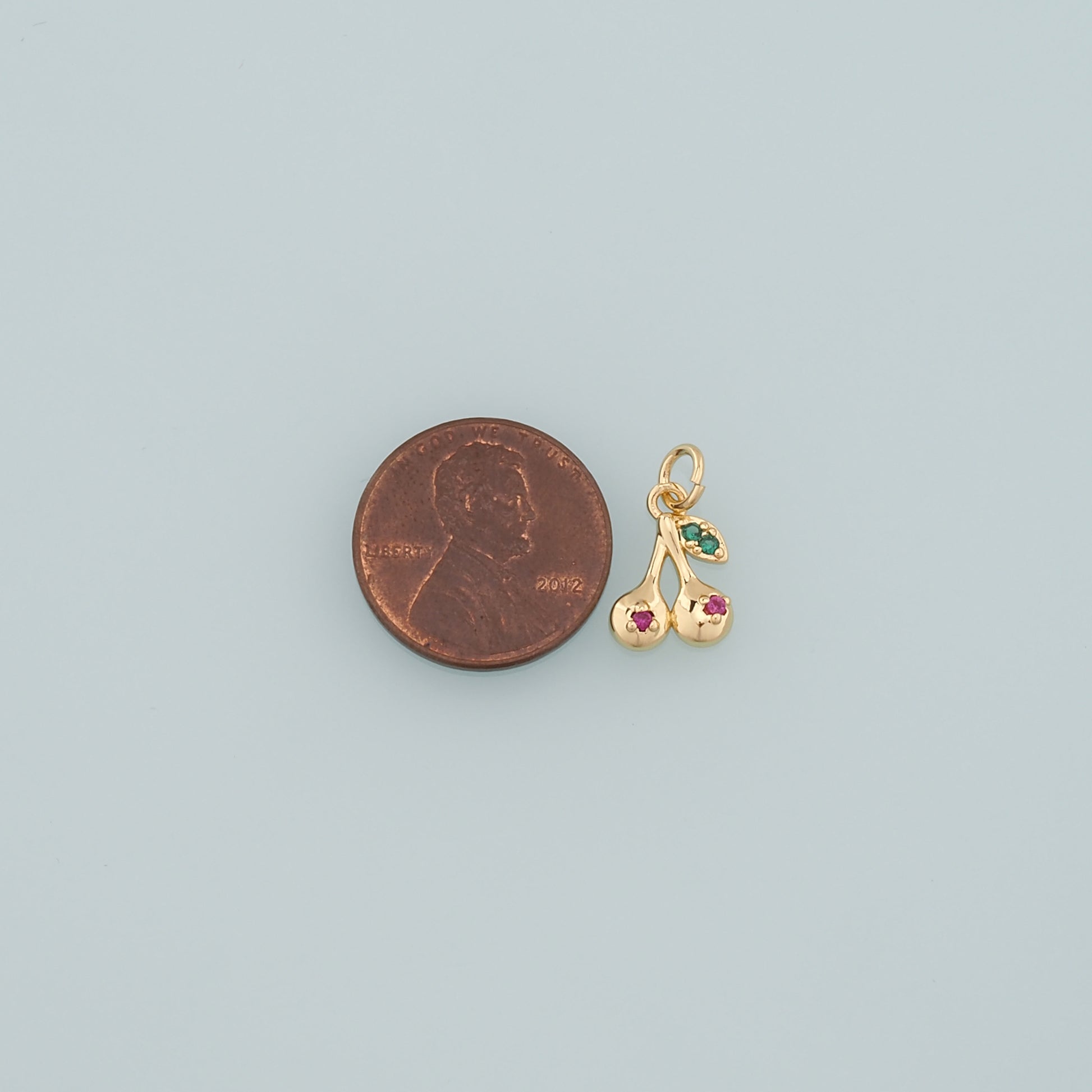 Gold Cherry Charms,18K Gold Filled Cherry Pendant,CZ Micro Pave Fruit Charm Bracelet Necklace for DIY Jewelry Making Supply