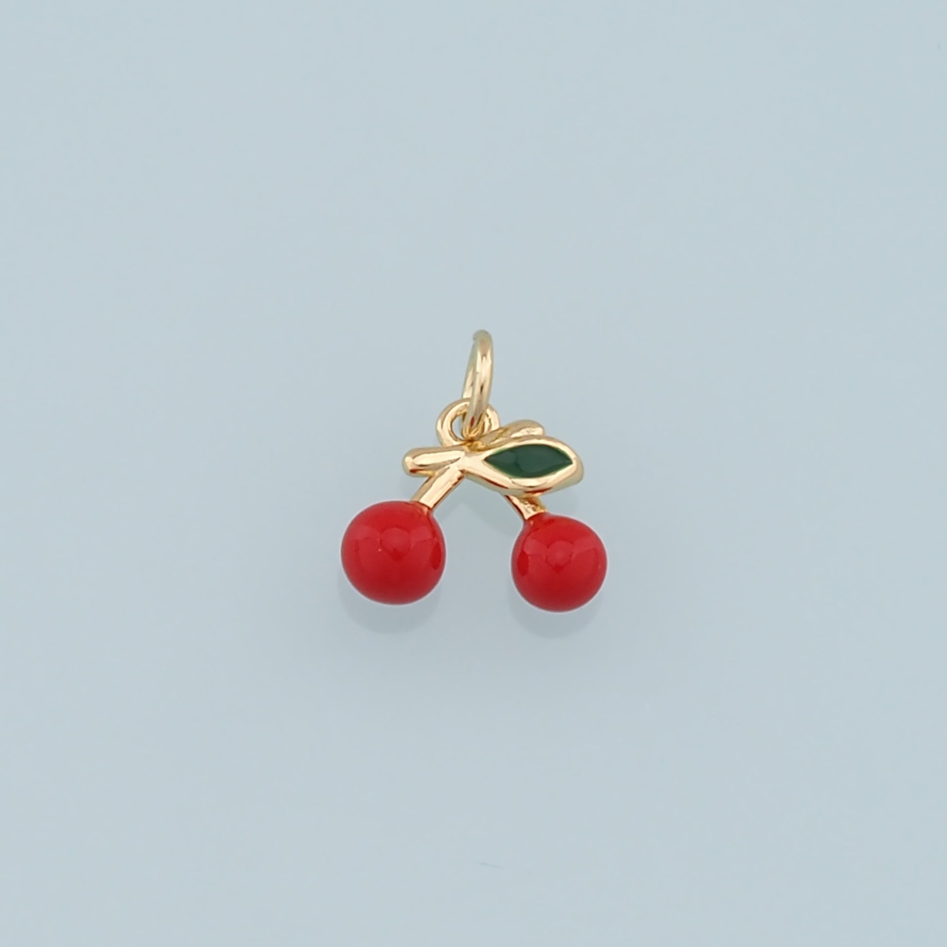 Gold Cherry Charms,18K Gold Filled Cherry Pendant,Enamel Fruit Charm Bracelet Necklace for DIY Jewelry Making Supply