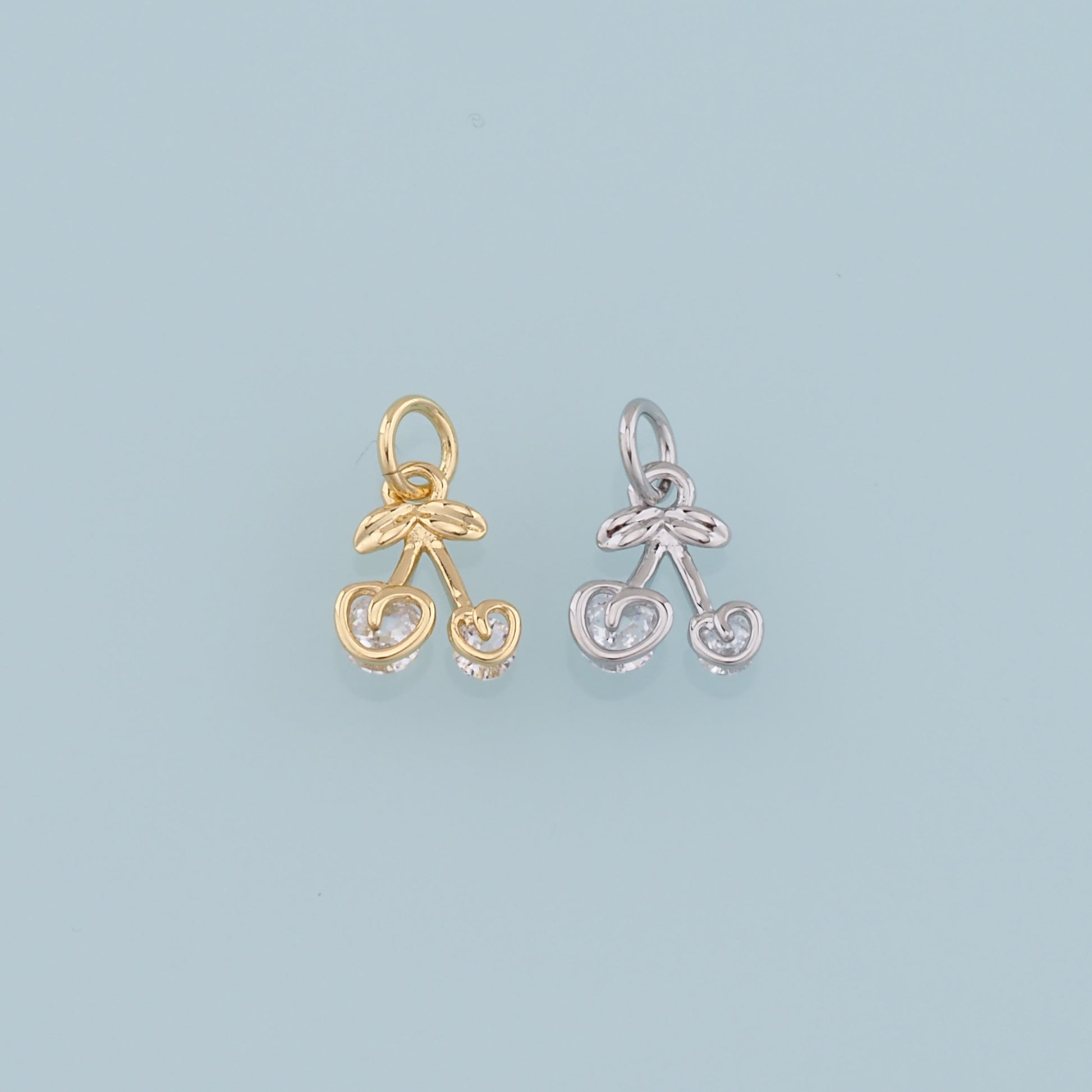 Gold Cherry Charms,18K Gold Filled Cherry Pendant,Fruit Charm Bracelet Necklace for DIY Jewelry Making Supply
