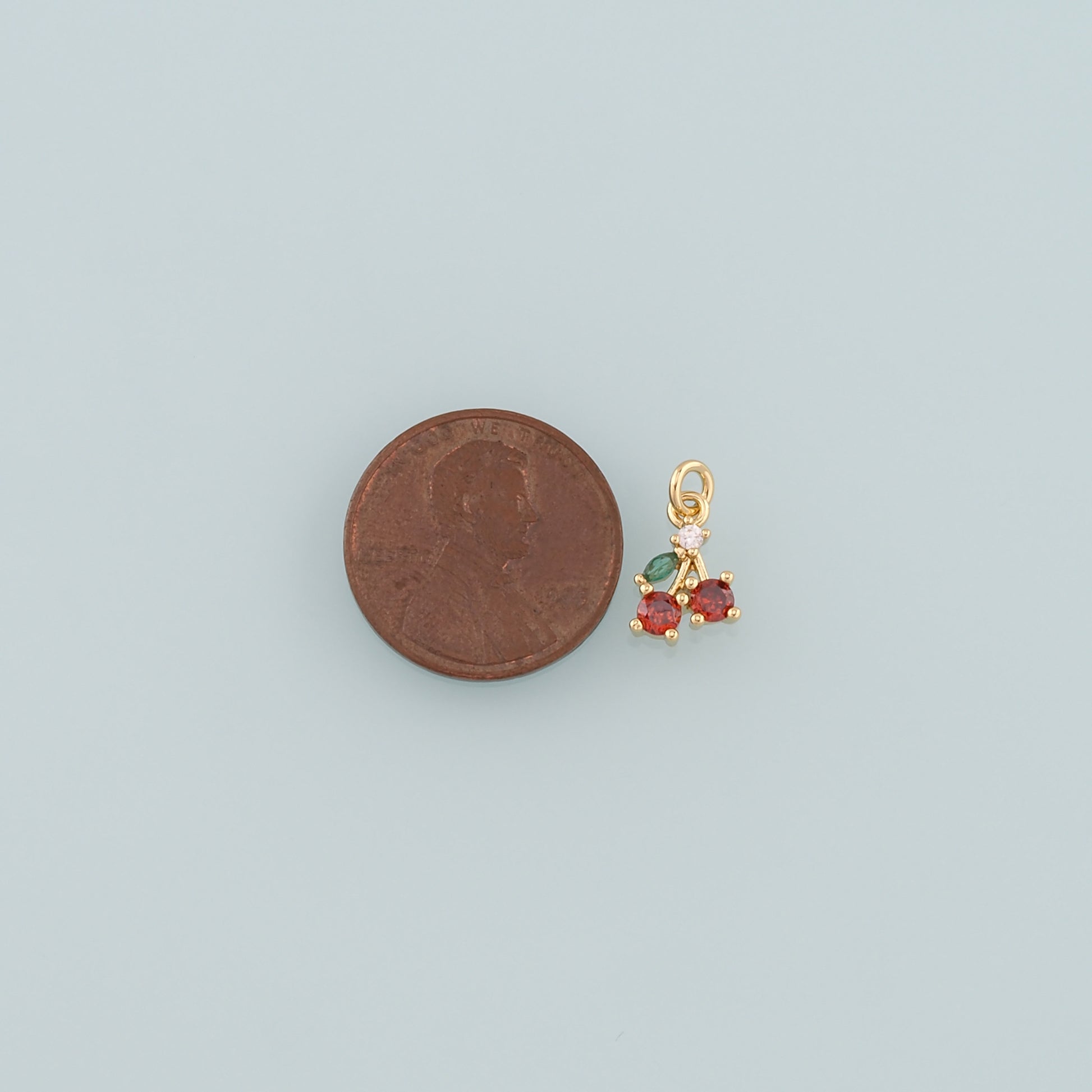 Gold Cherry Charms,18K Gold Filled Crystal Cherry Pendant,CZ Micro Pave Fruit Charm Bracelet Necklace for DIY Jewelry Making Supply