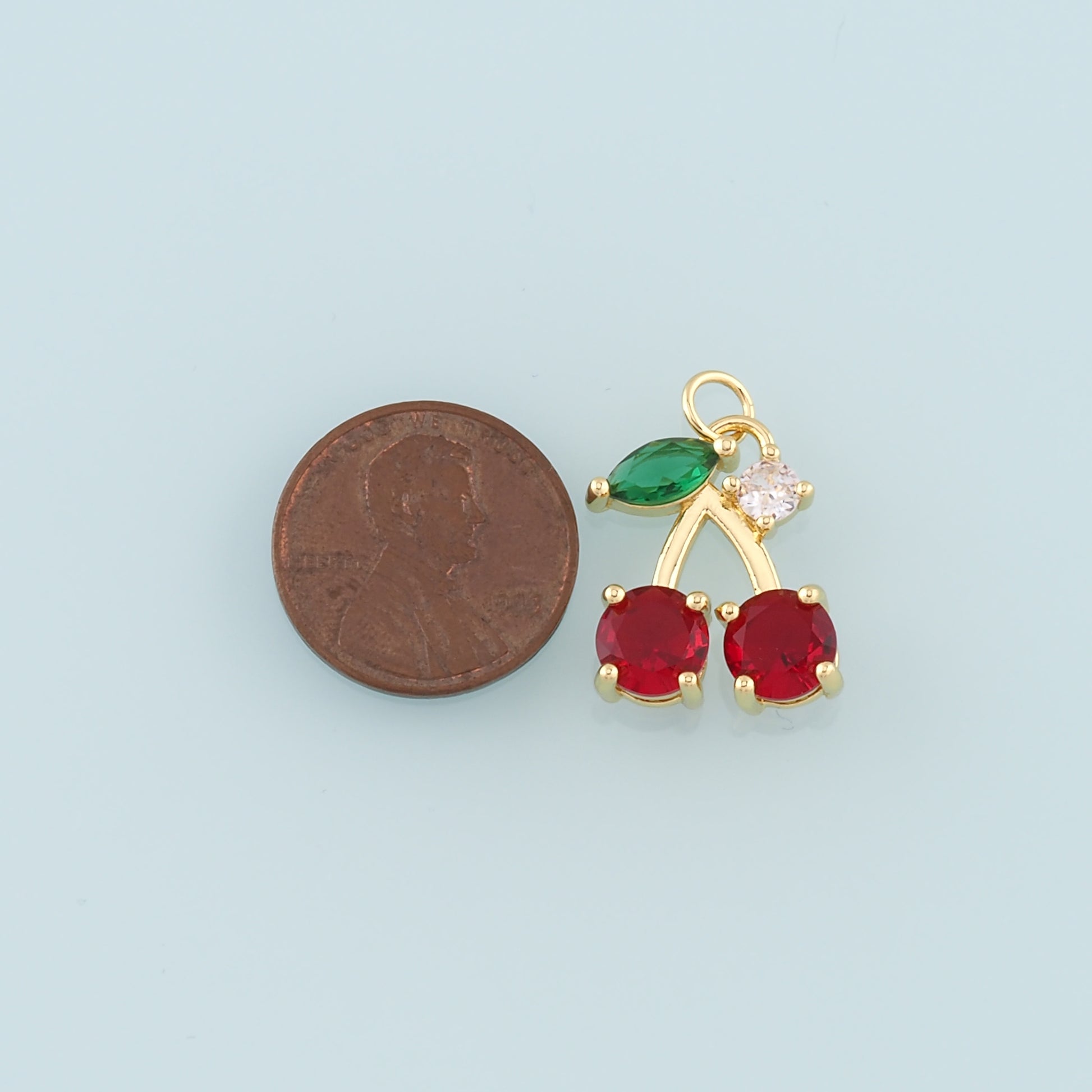 Gold Cherry Charms,18K Gold Filled Crystal Cherry Pendant,Fruit Charm Bracelet Necklace for DIY Jewelry Making Supply