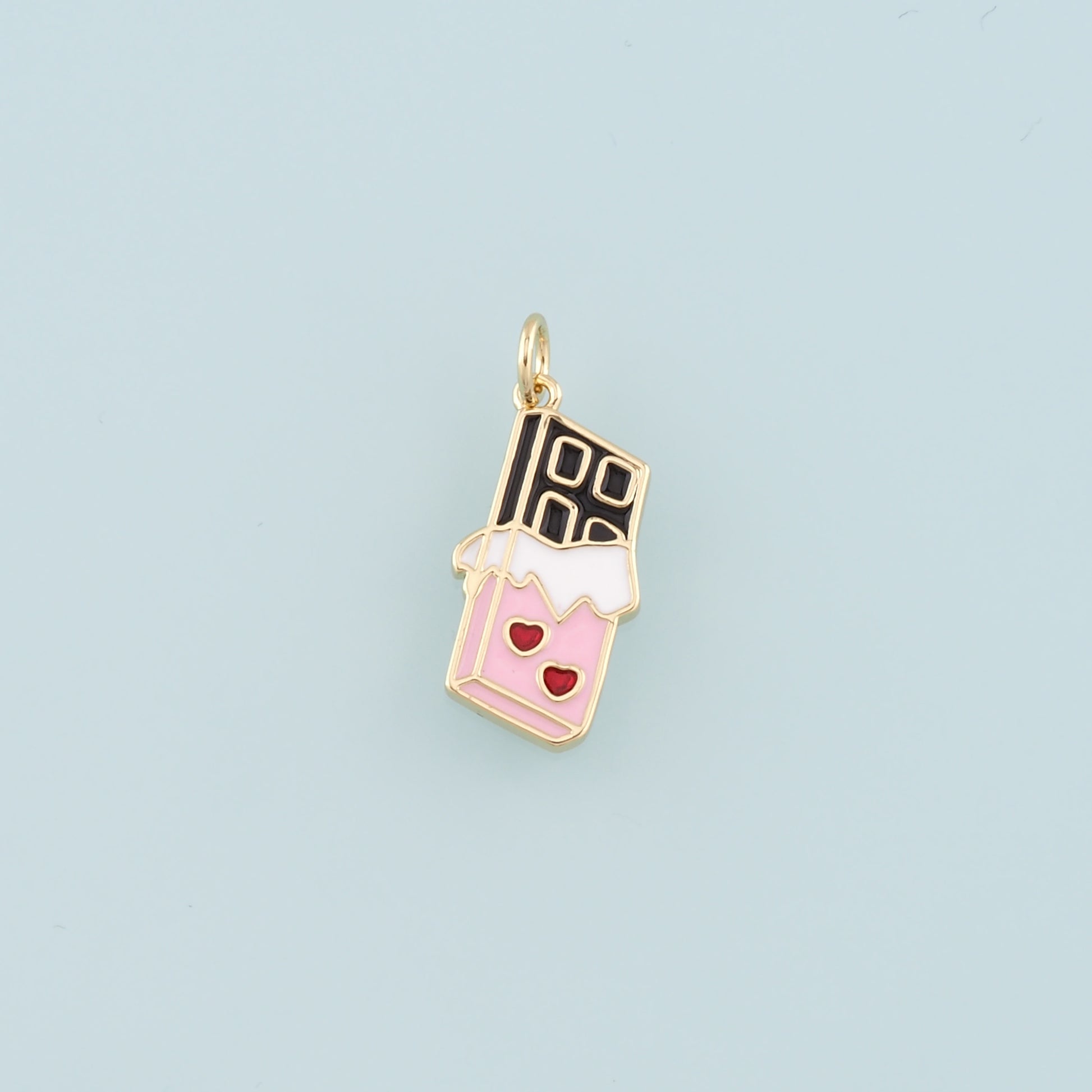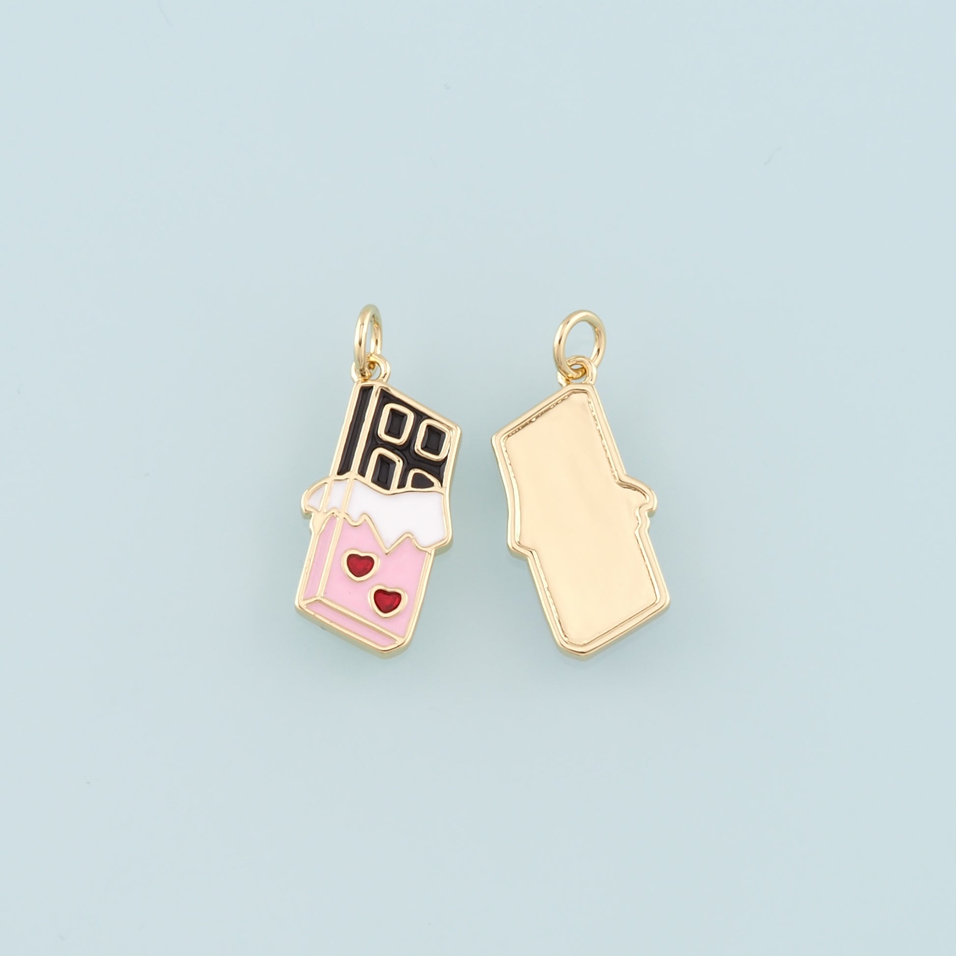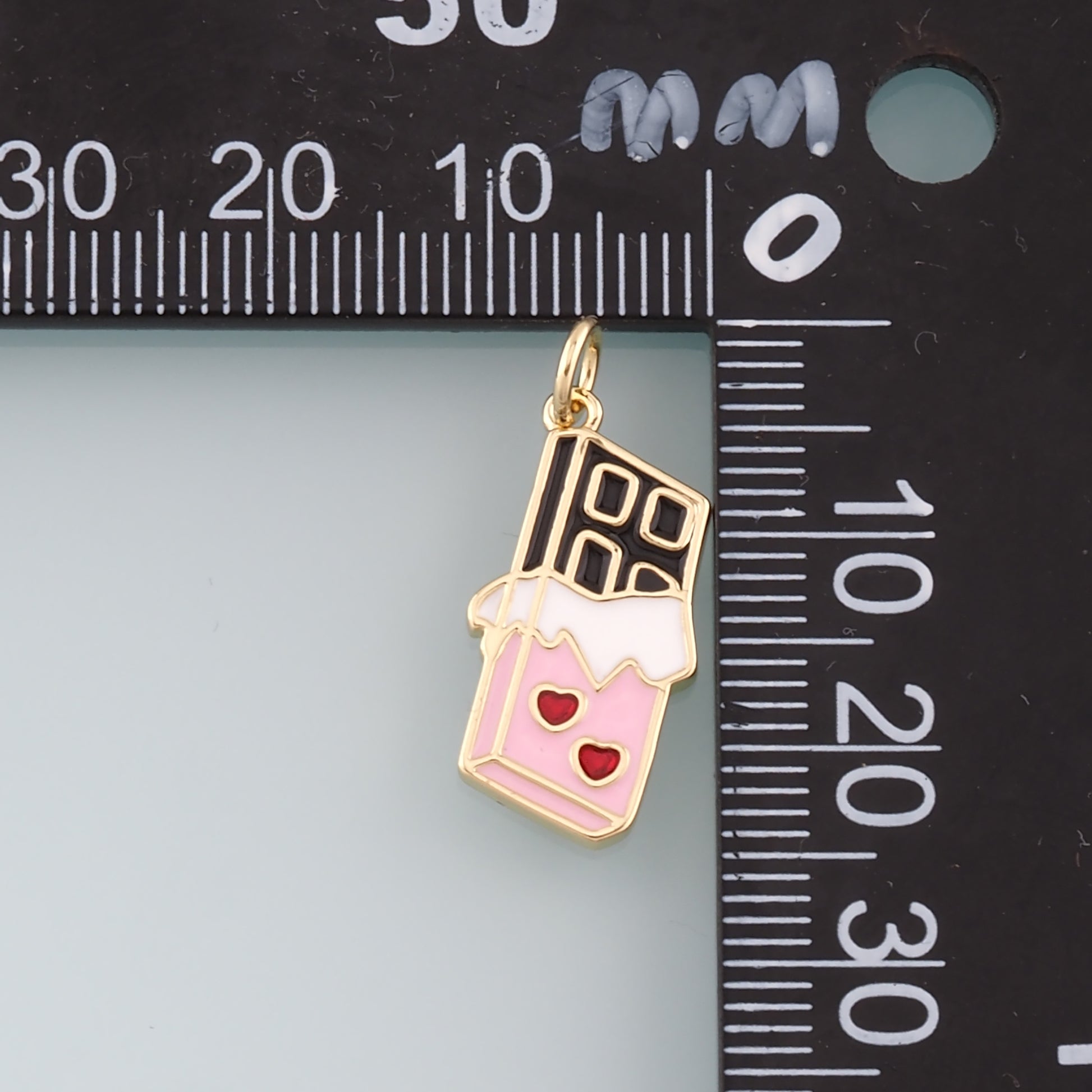 Gold Chocolate Charms,18K Gold Filled Candy Pendant,Enamel Chocolate Charm Bracelet Necklace for DIY Jewelry Making Supply