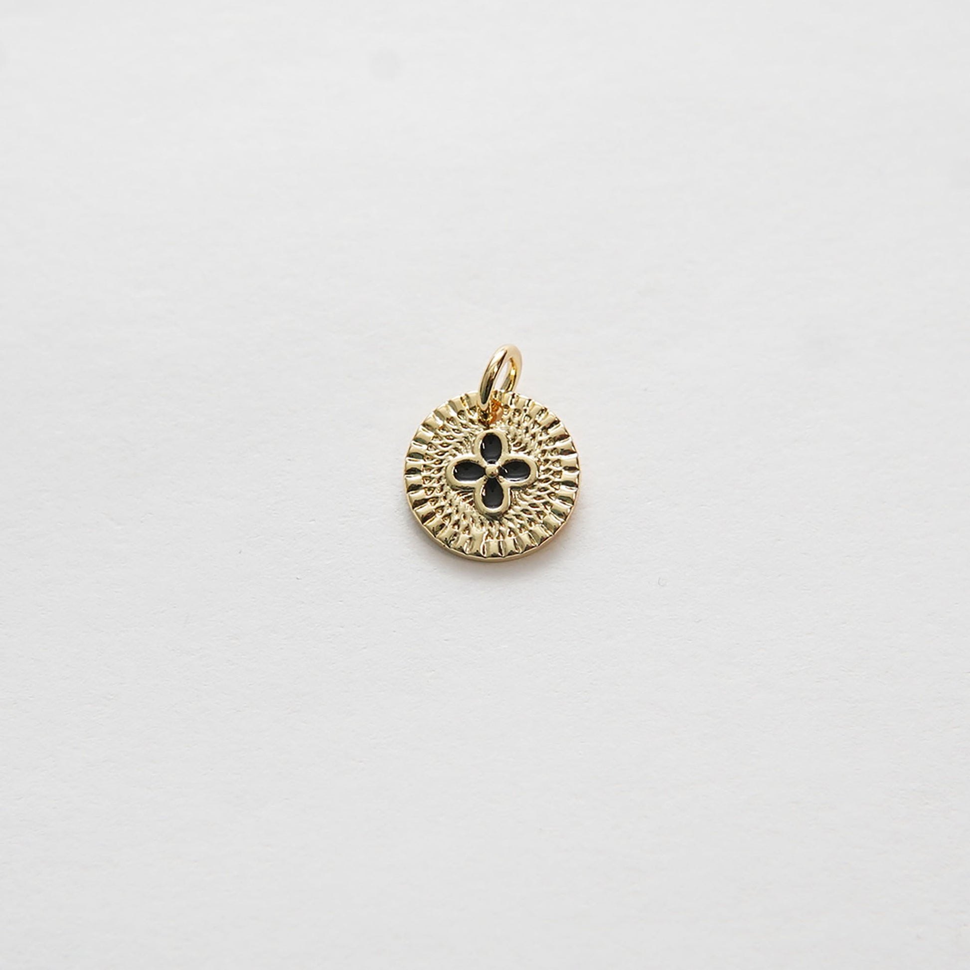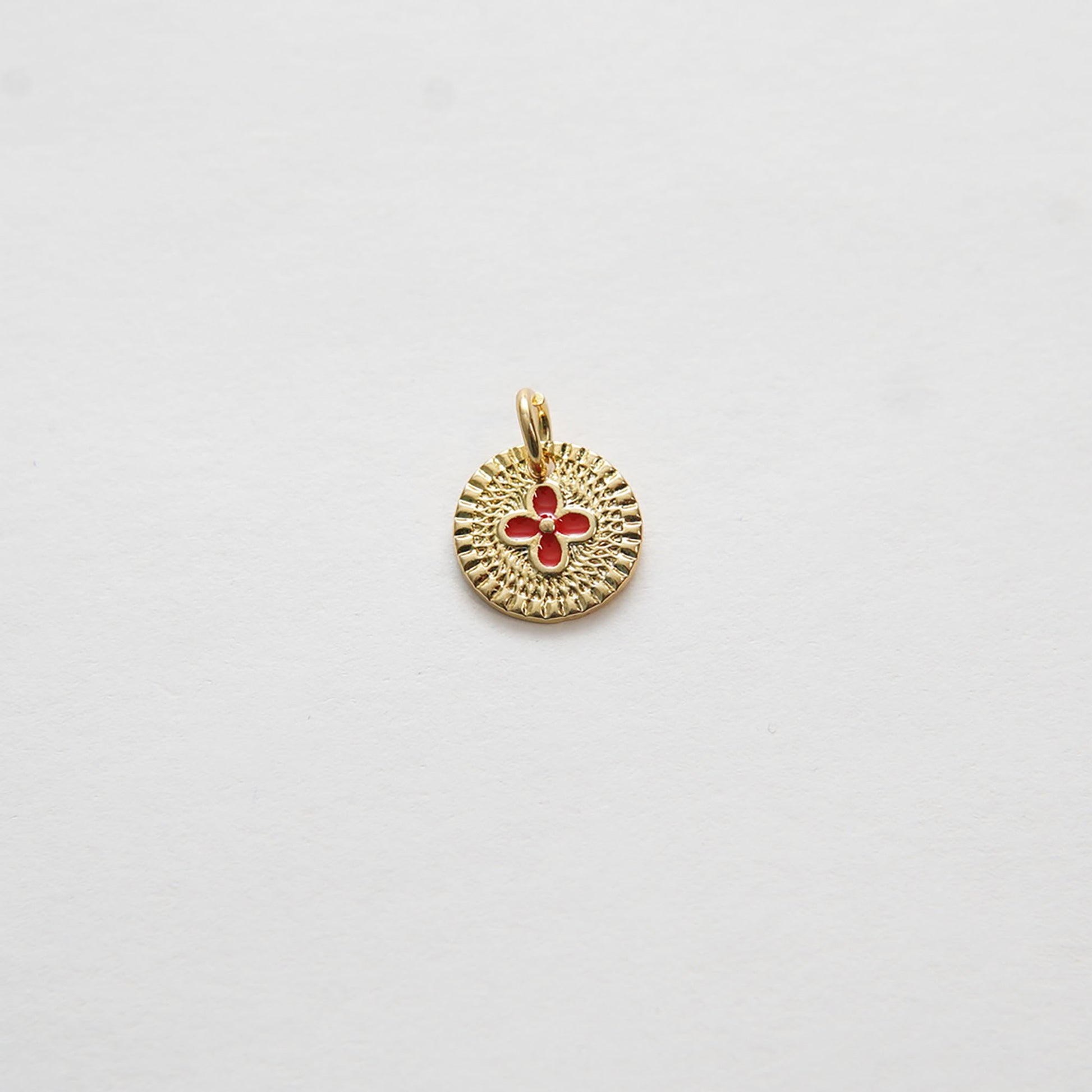 Gold Coin Charms,18K Gold Filled Round Flower Pendant,Enamel Charms Bracelet Necklace for DIY Jewelry Making Supply