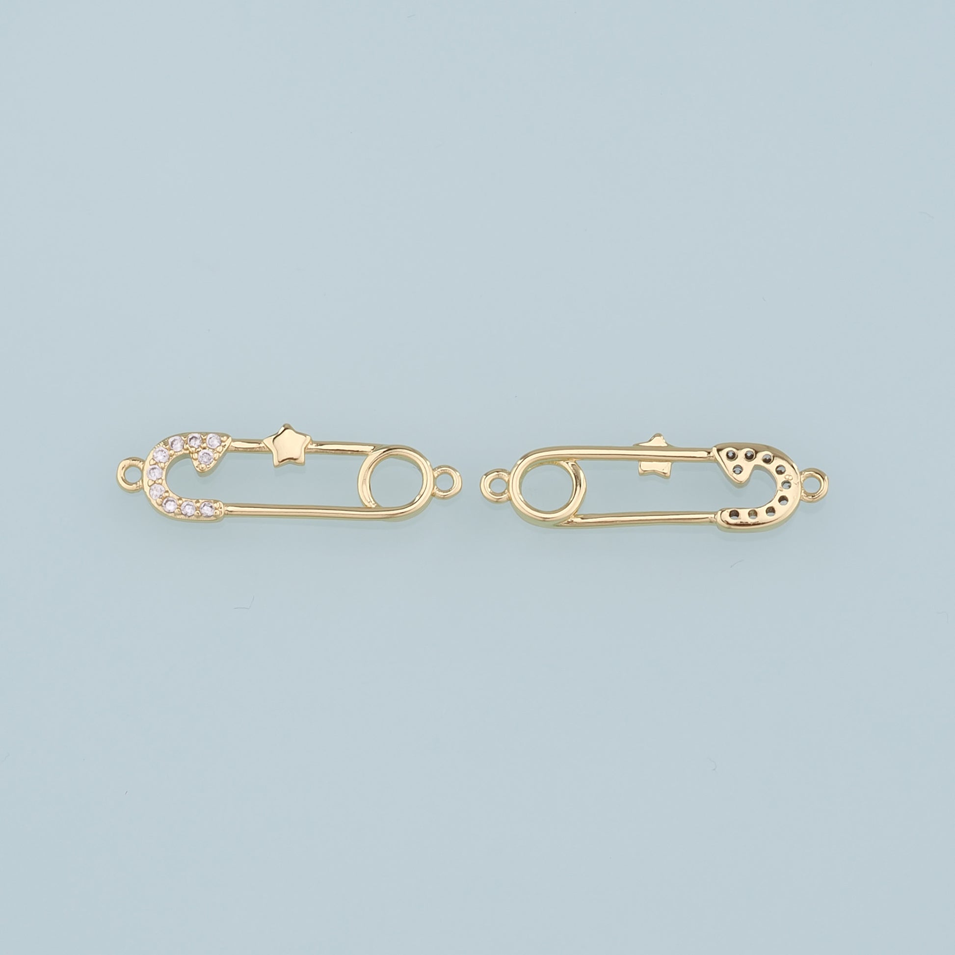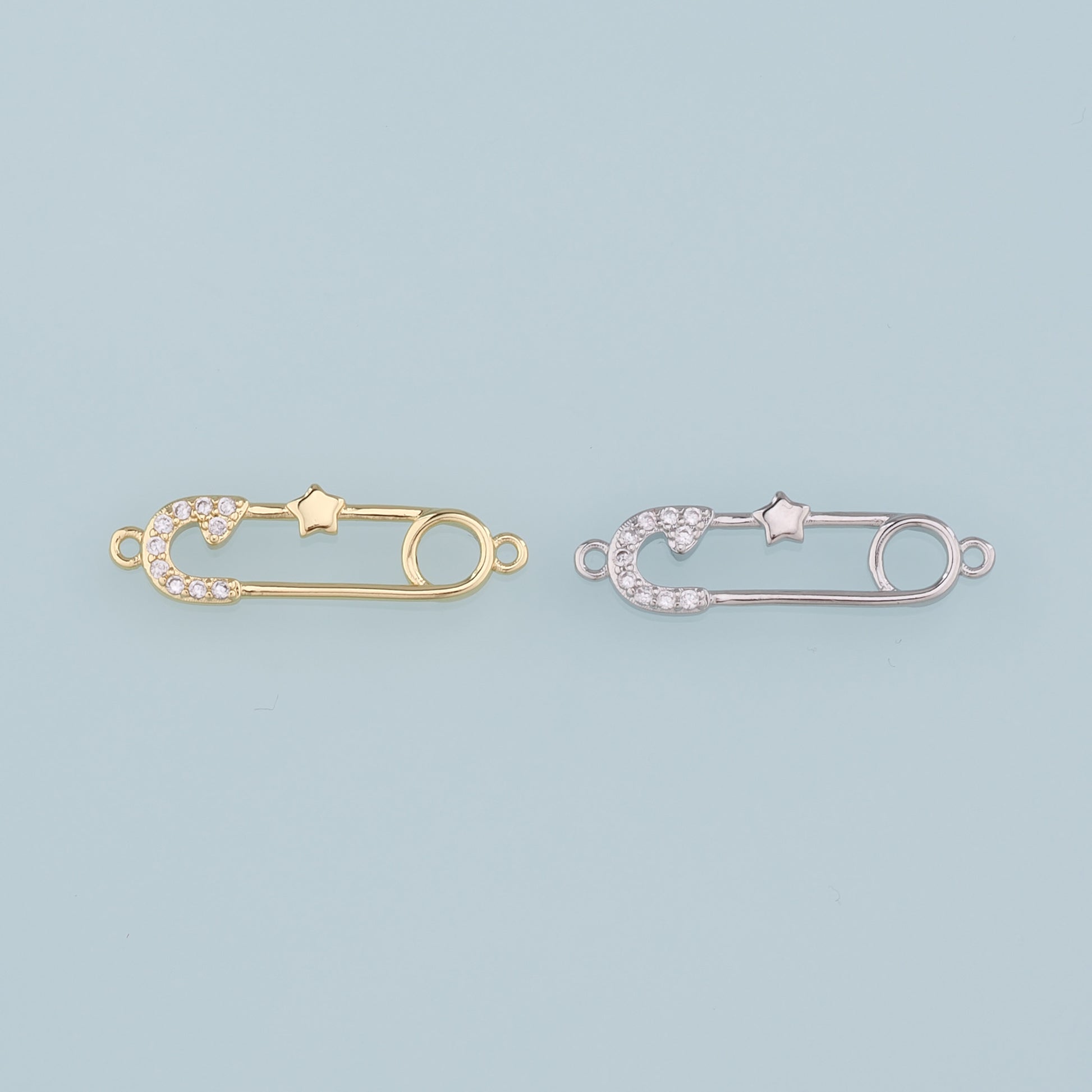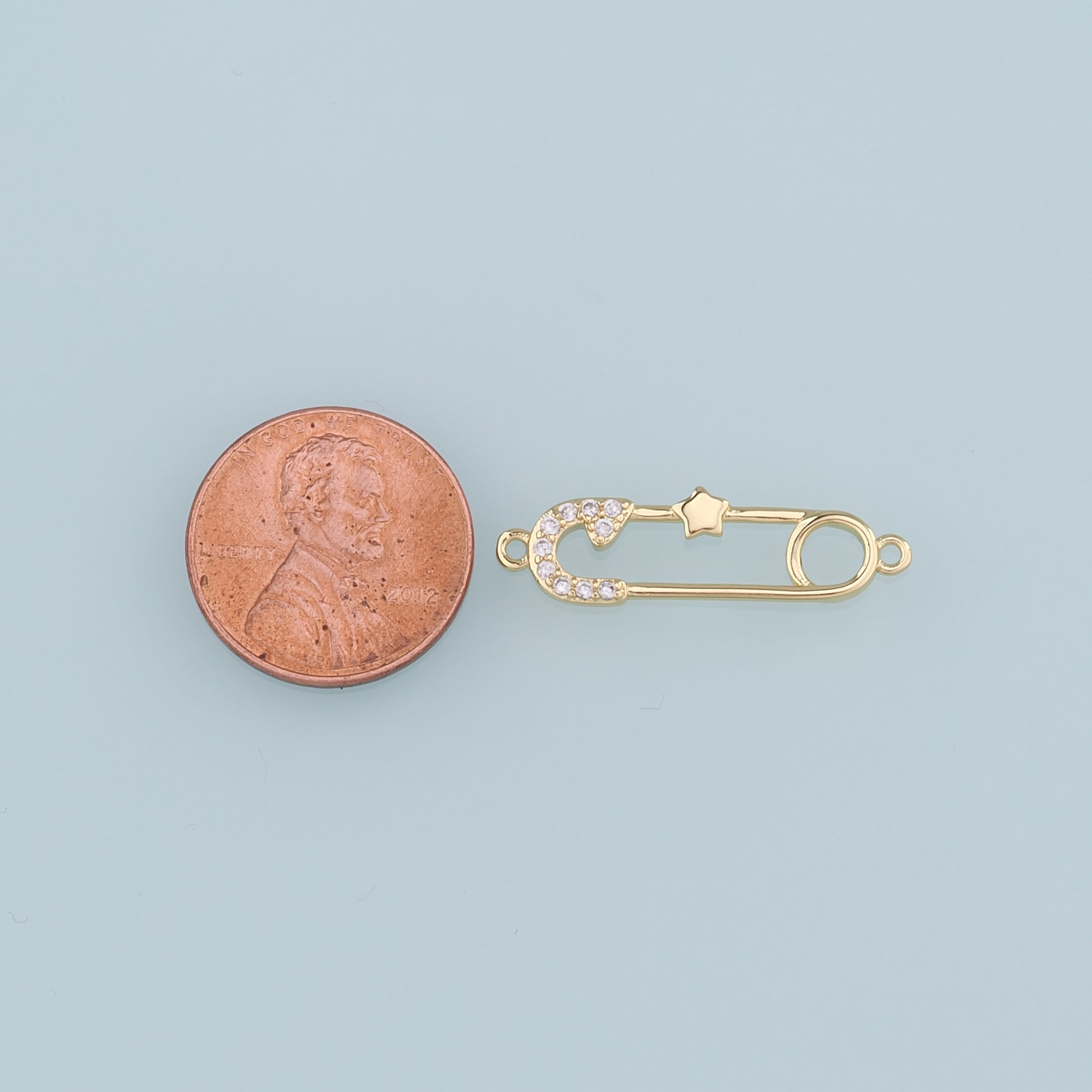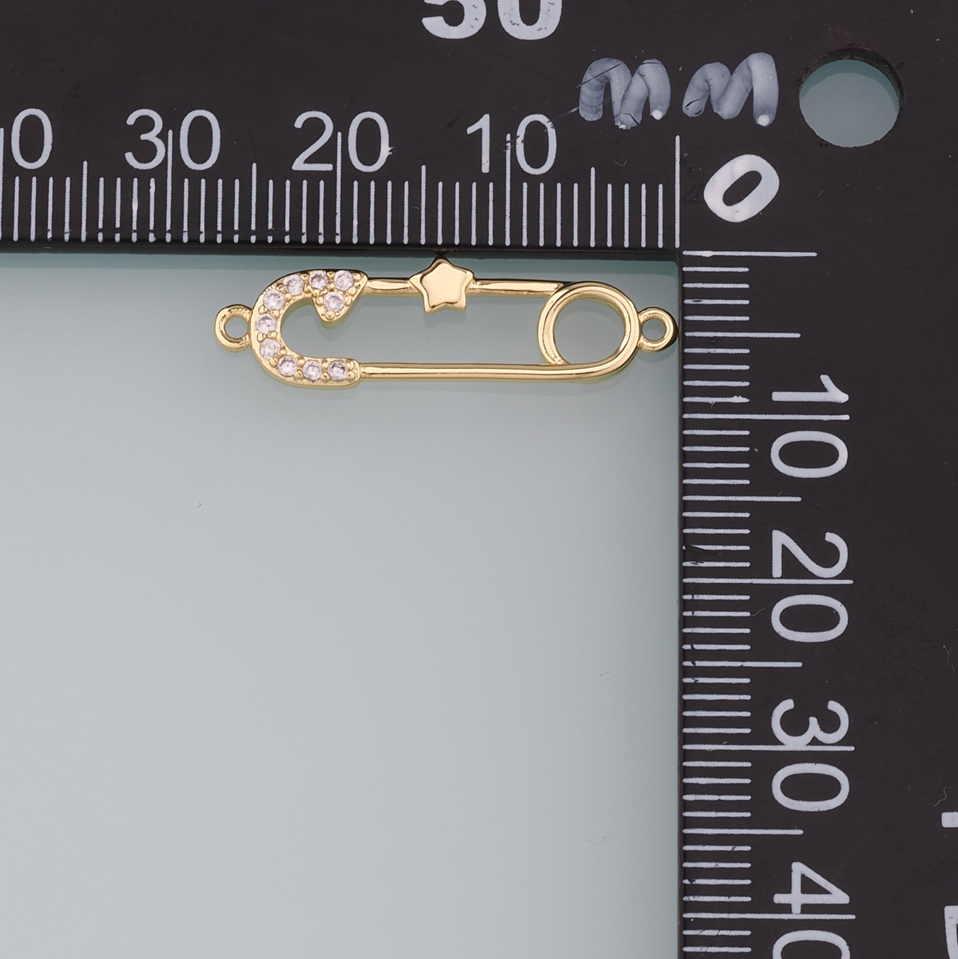 Gold Connector Chamr,18K Gold Filled CZ Micro Pave Paper Clip Pendant,Star Charm Bracelet Necklace for DIY Jewelry Making Supply