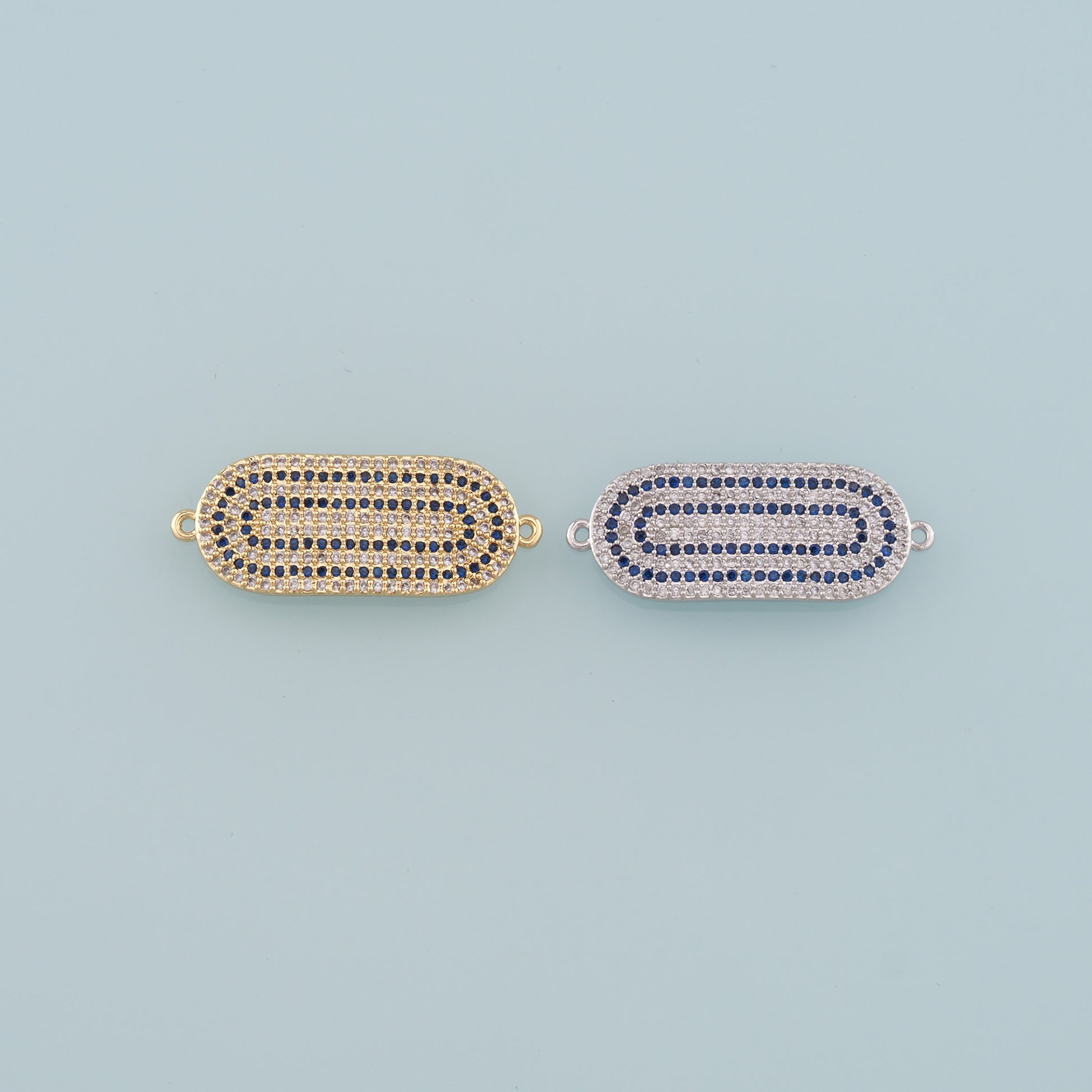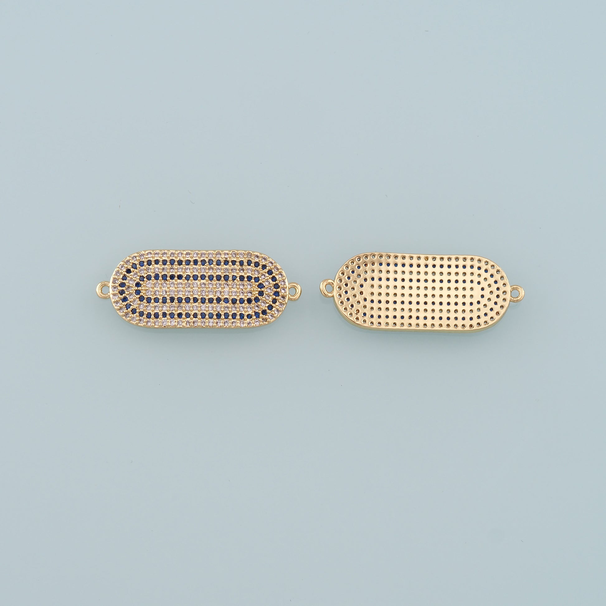 Gold Connector Charm,18K Gold Filled Oval Pendant,CZ Micro Pave Oval Charm Bracelet Necklace for DIY Jewelry Making Supply