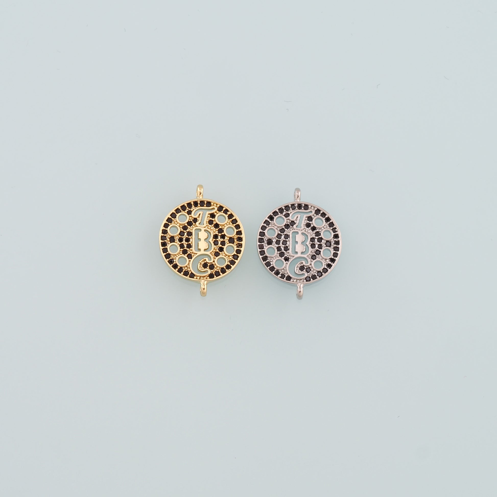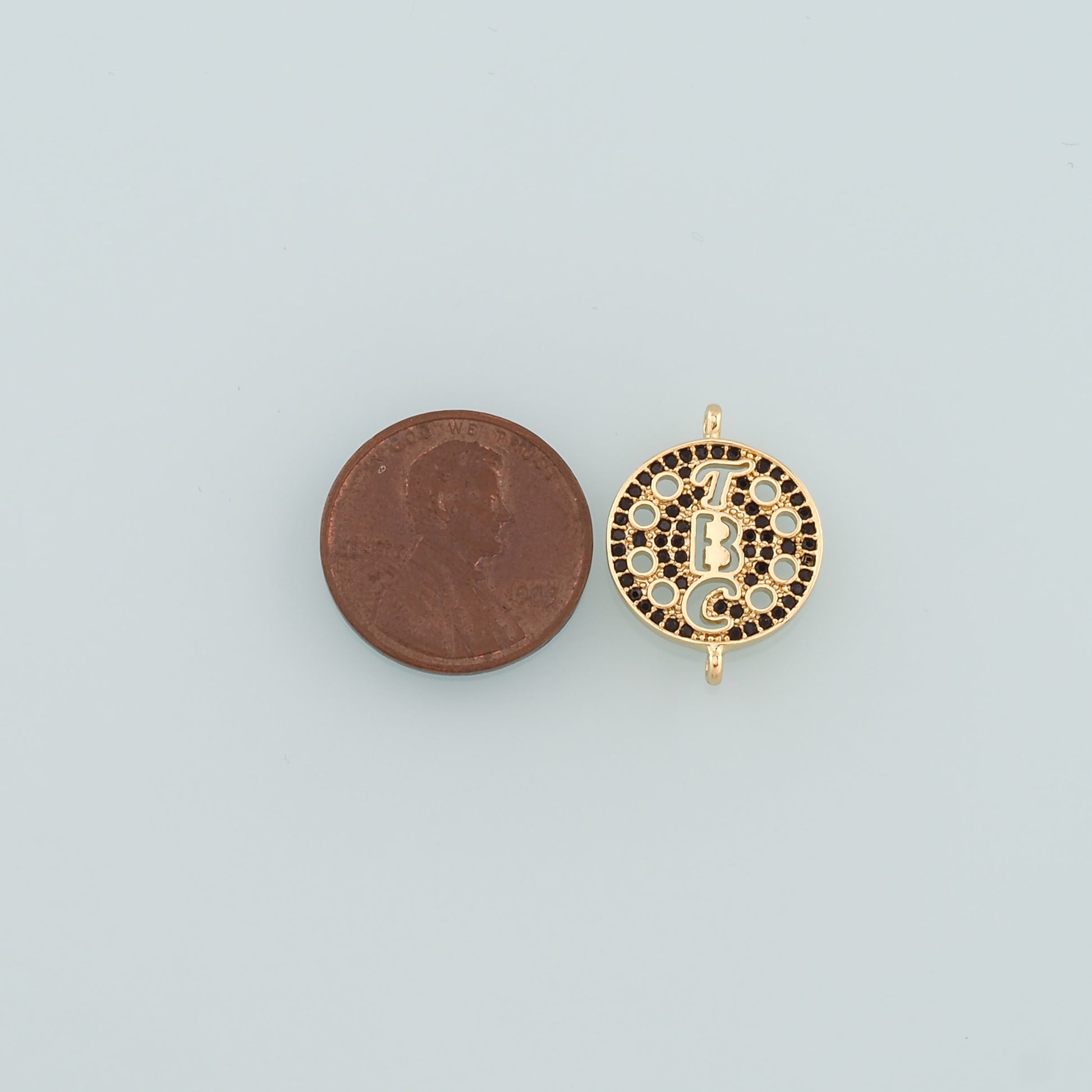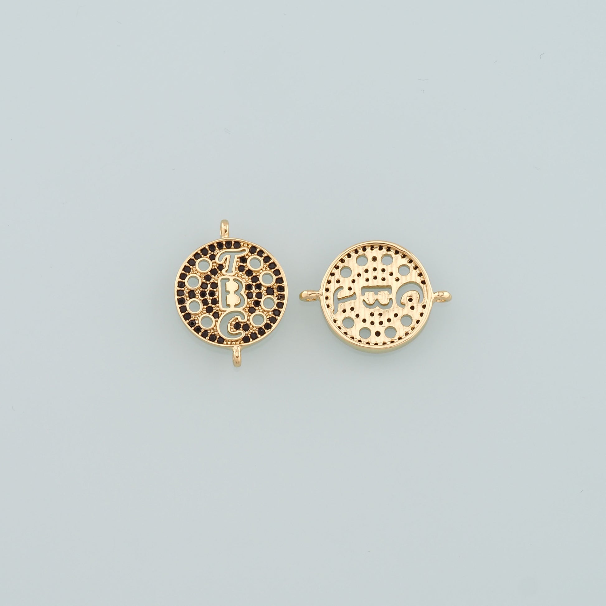 Gold Connector Charm,18K Gold Filled Round Pendant,CZ Micro Pave Round Charm Bracelet Necklace for DIY Jewelry Making Supply