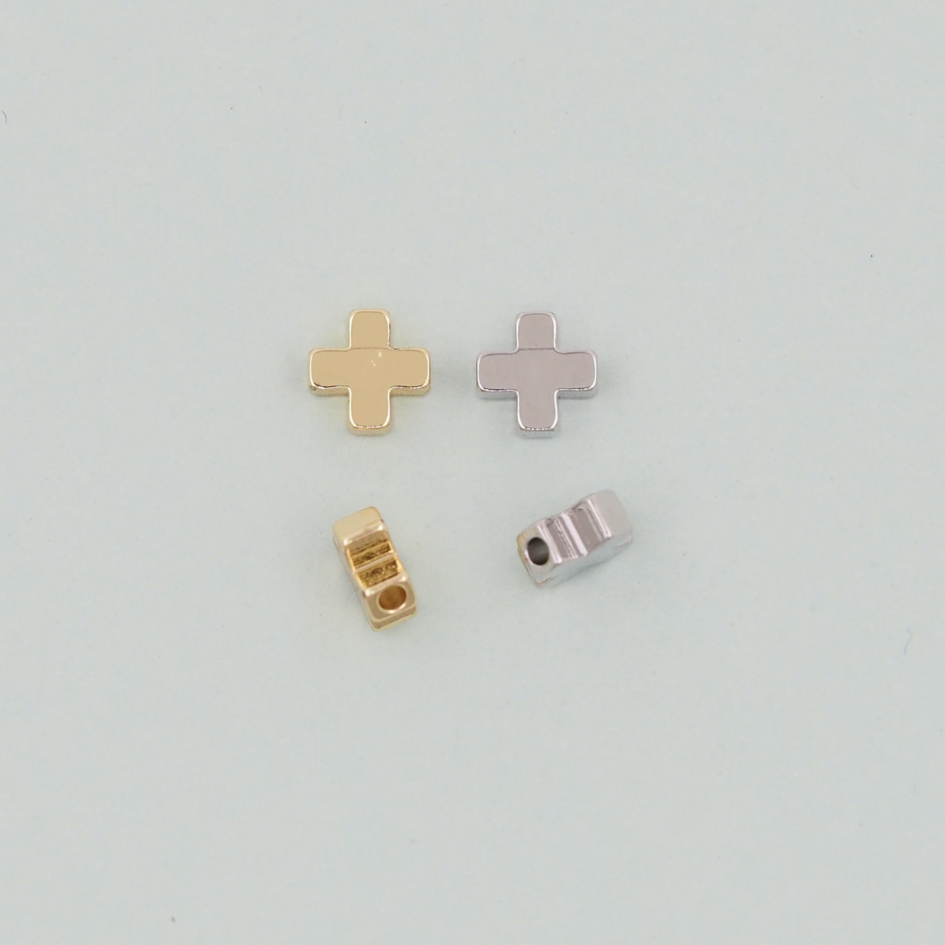 Gold Cross Beads Charms,18K Gold Filled Cross Bracelet Necklace for DIY Jewelry Making Supply hole 2mm