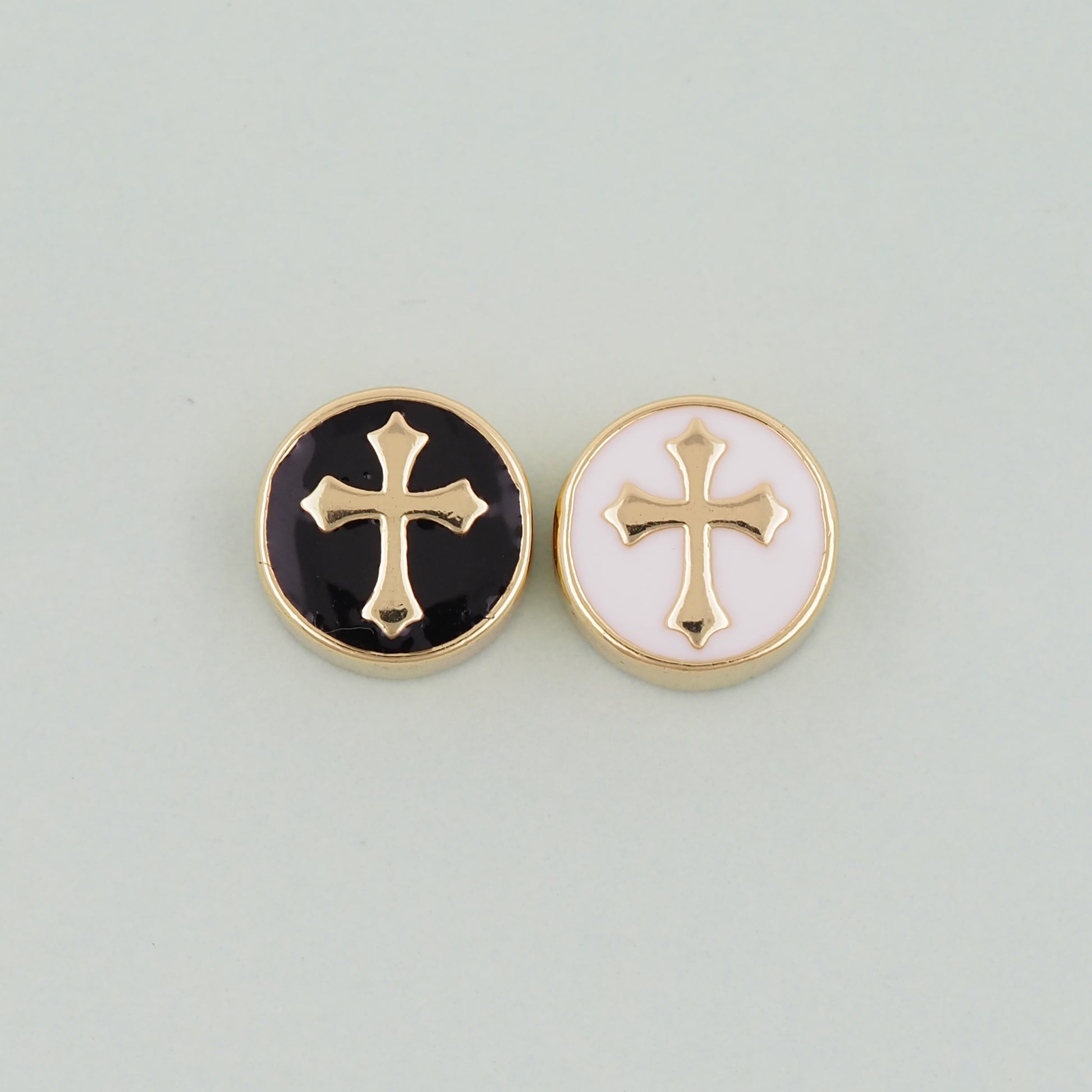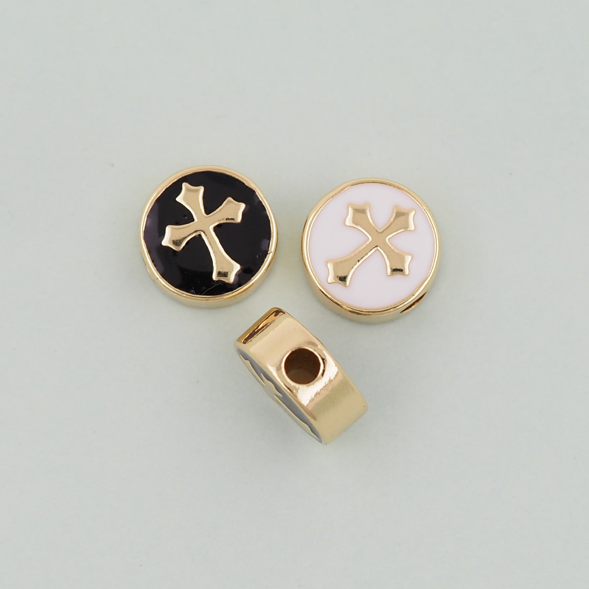 Gold Cross Beads Charms,18K Gold Filled Cross Bracelet Necklace for DIY Jewelry Making Supply hole 2mm