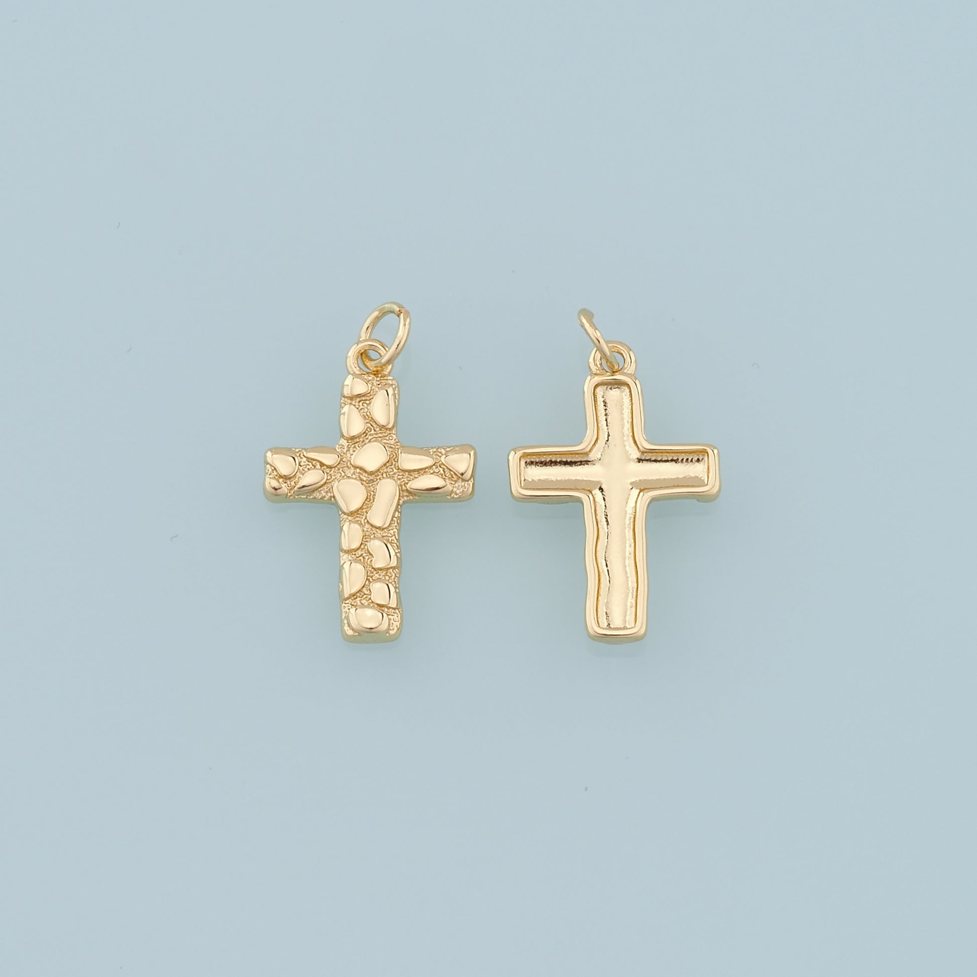 Gold Cross Charms,18K Gold Filled Cross Flower Pendant,Religion Charm Bracelet Necklace for DIY Jewelry Making Supply