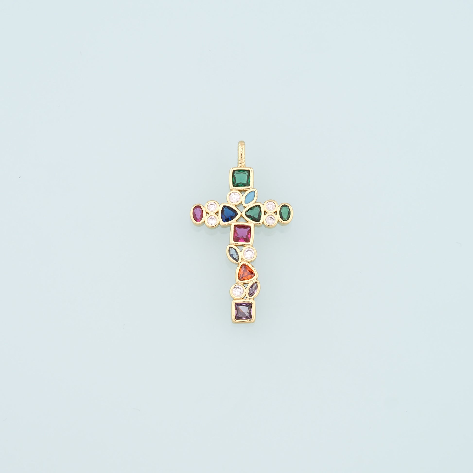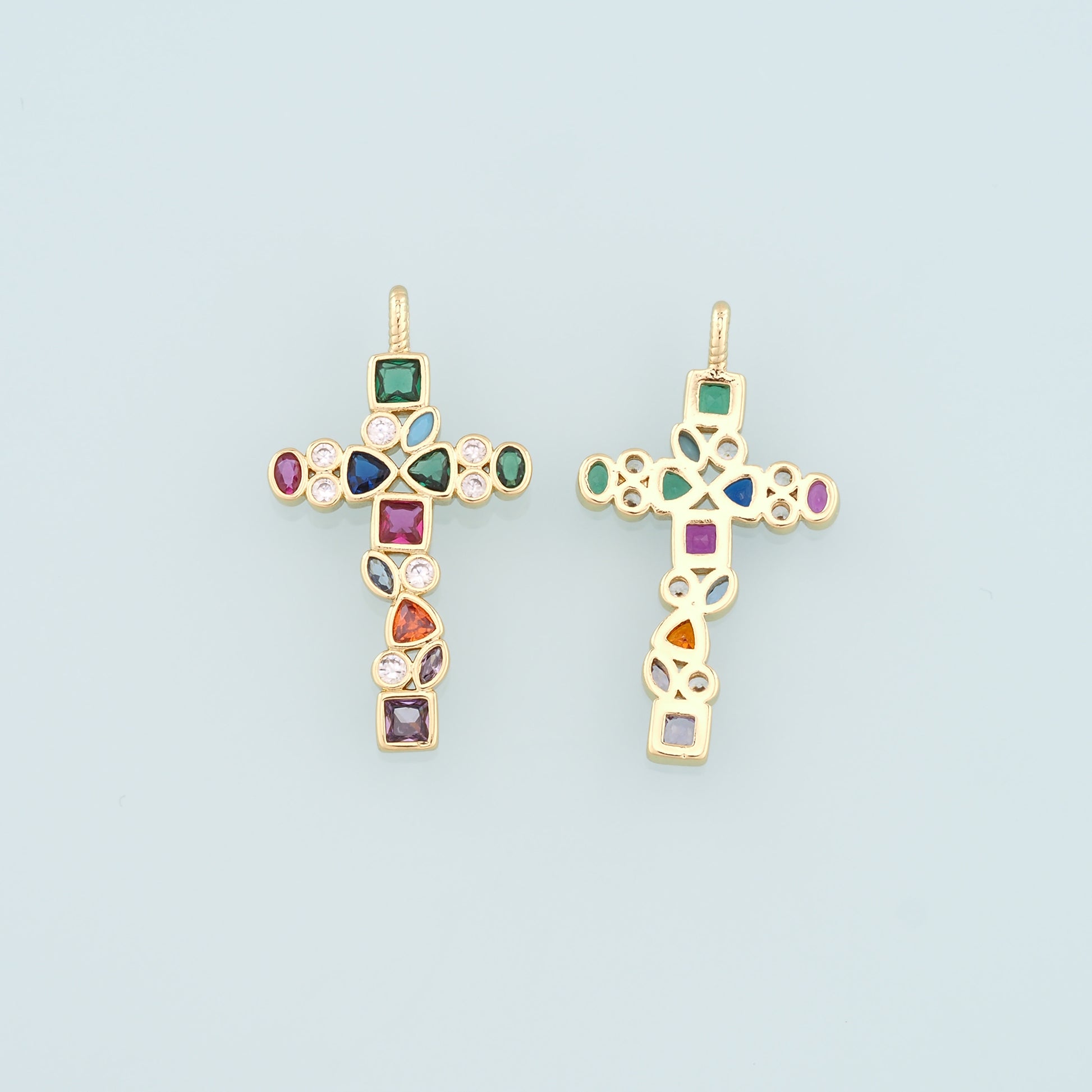 Gold Cross Charms,18K Gold Filled Cross Pendant,CZ Micro Pave Religion Charm Bracelet Necklace for DIY Jewelry Making Supply