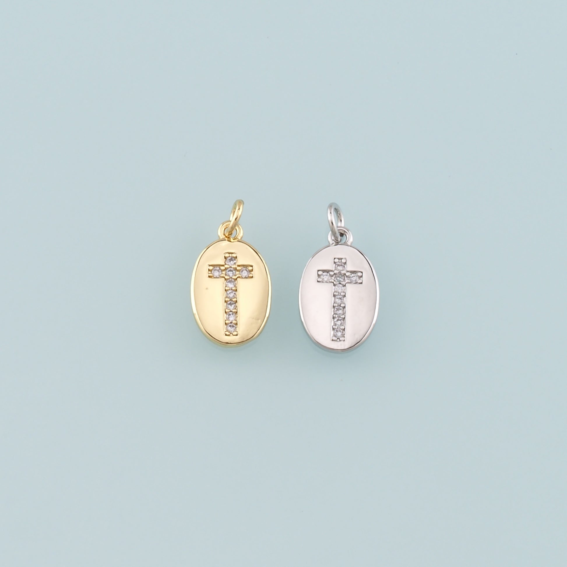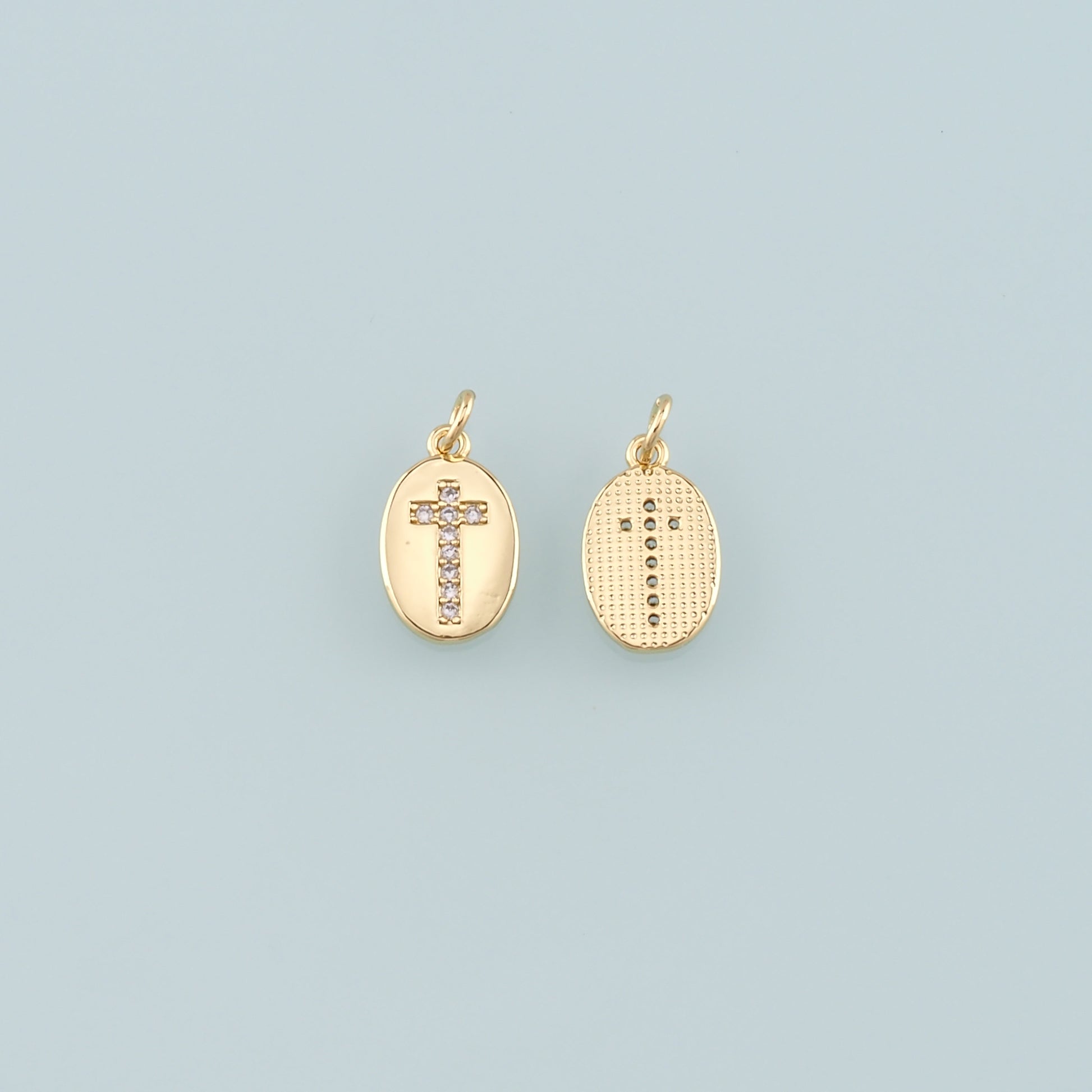 Gold Cross Charms,18K Gold Filled Cross Pendant,CZ Micro Pave Religion Charm Bracelet Necklace for DIY Jewelry Making Supply