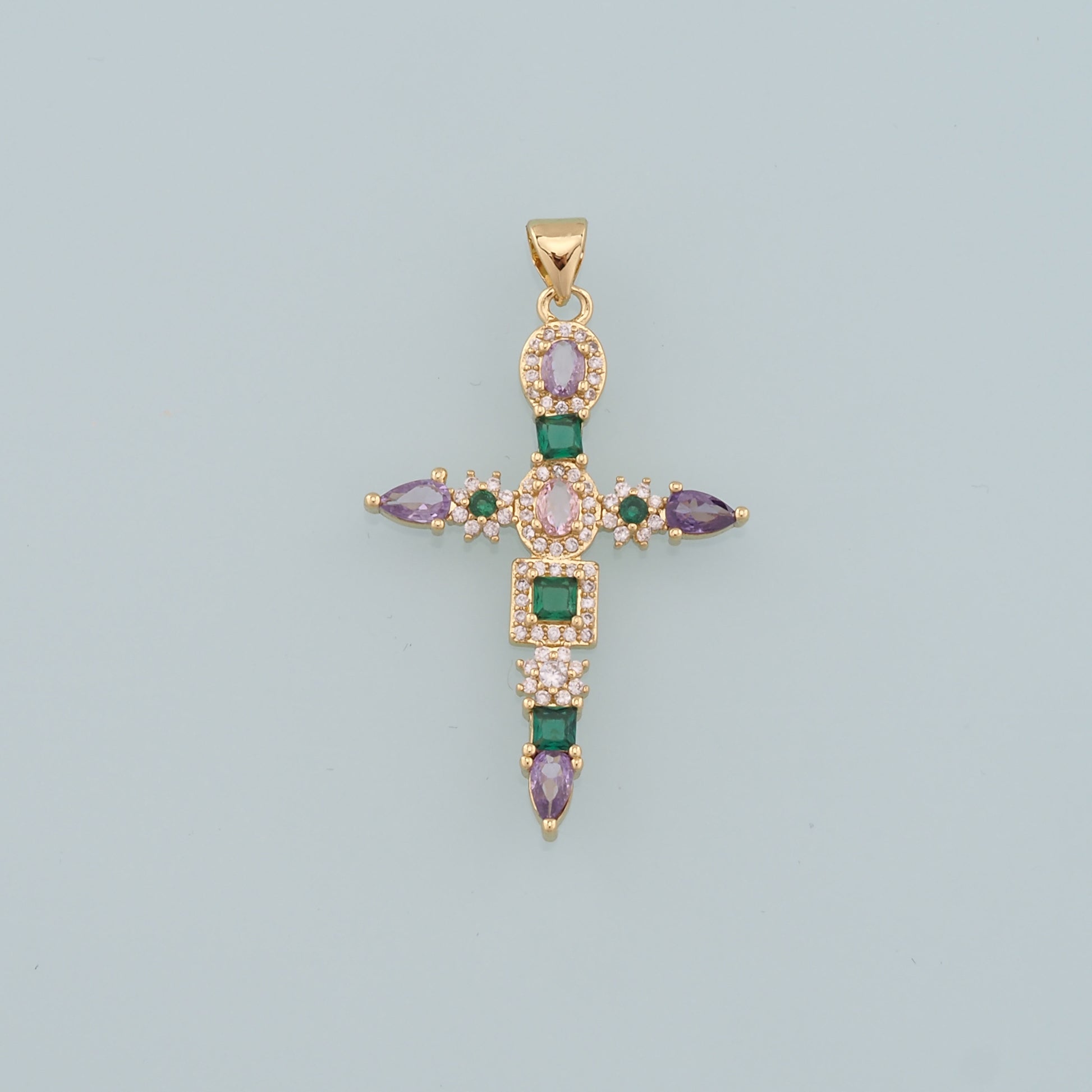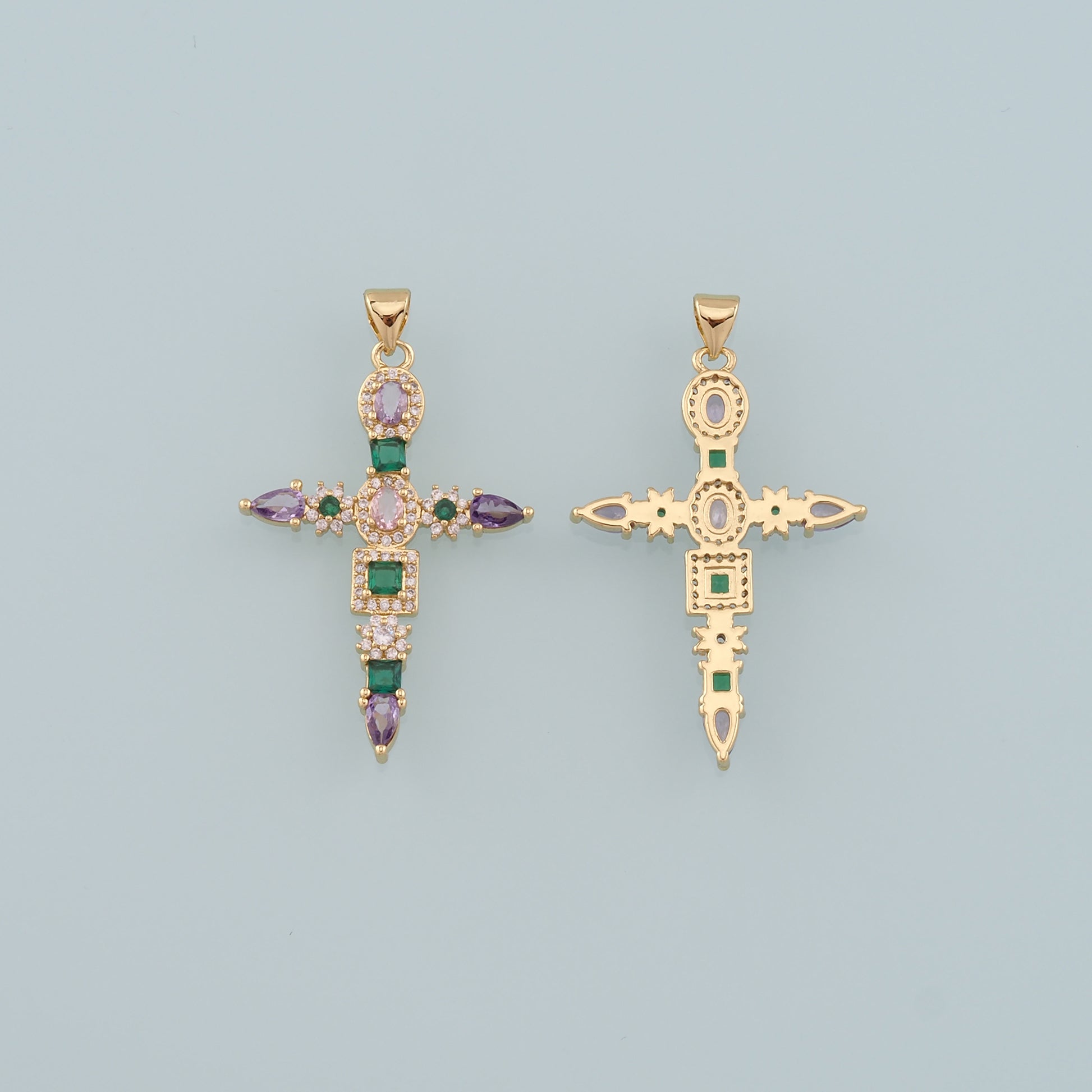 Gold Cross Charms,18K Gold Filled Cross Pendant,CZ Micro Pave Religion Charm Bracelet Necklace for DIY Jewelry Making Supply