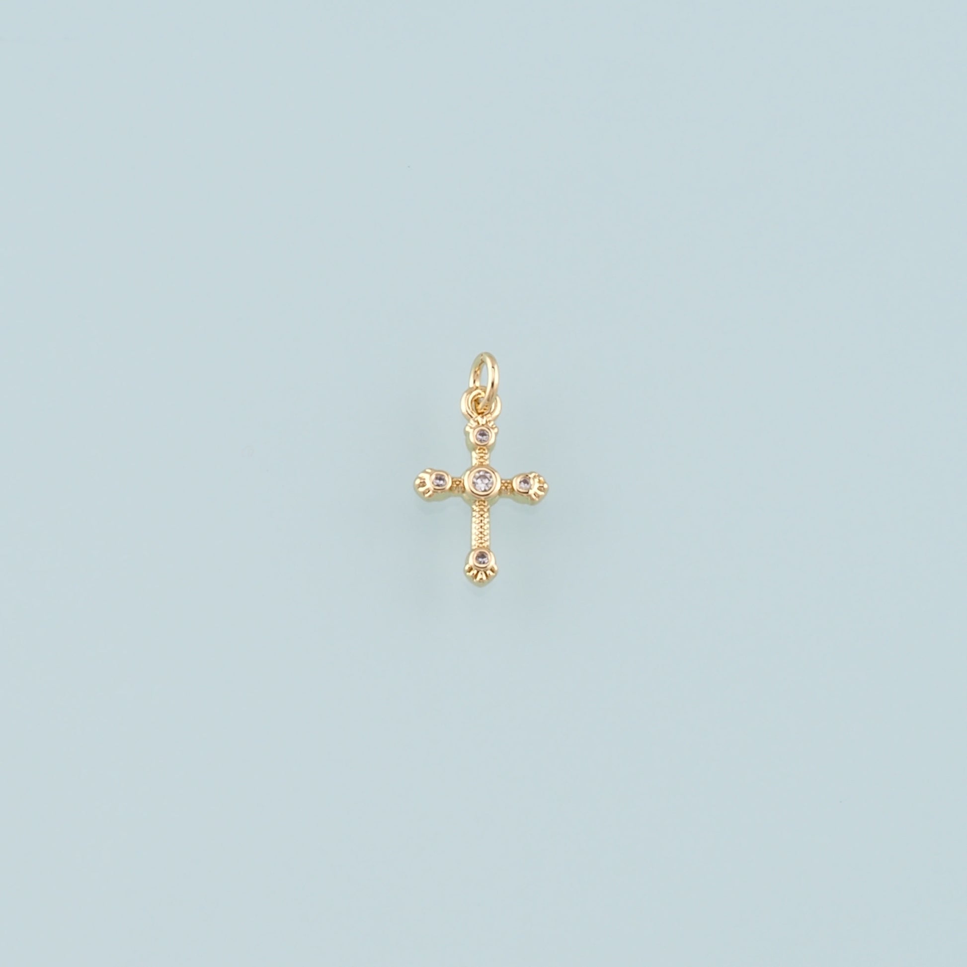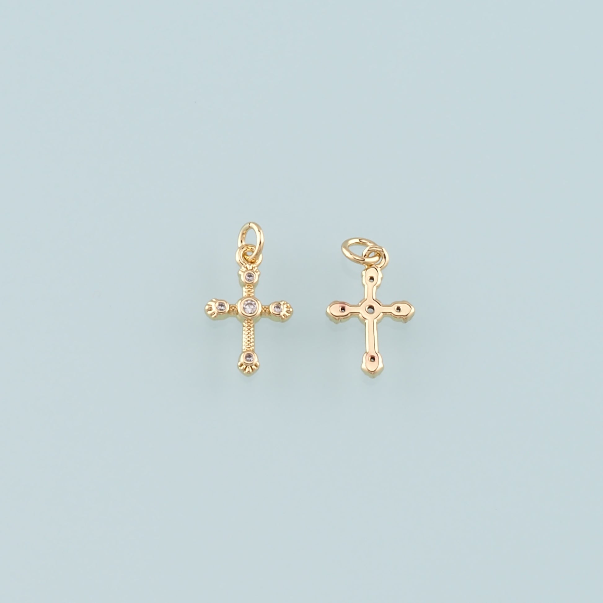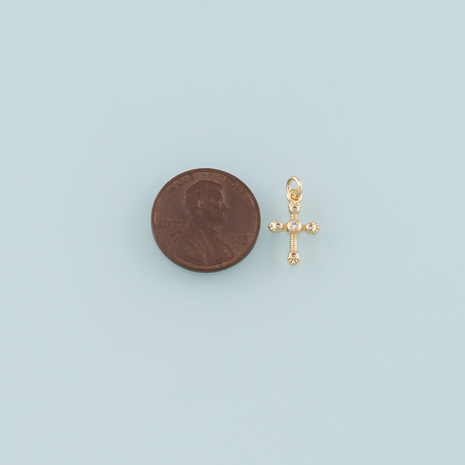 Gold Cross Charms,18K Gold Filled Cross Pendant,CZ Micro Pave Religion Charm Bracelet Necklace for DIY Jewelry Making Supply