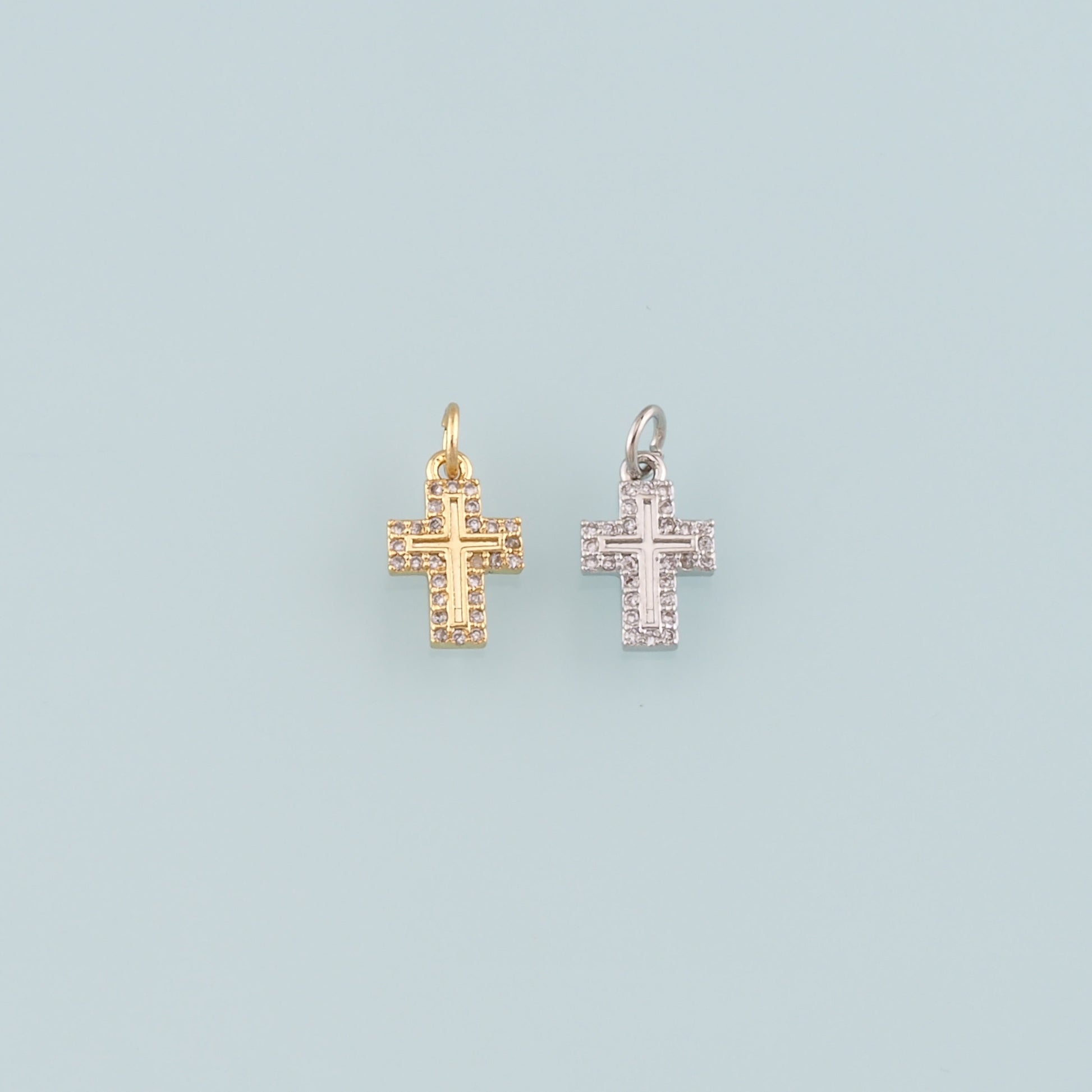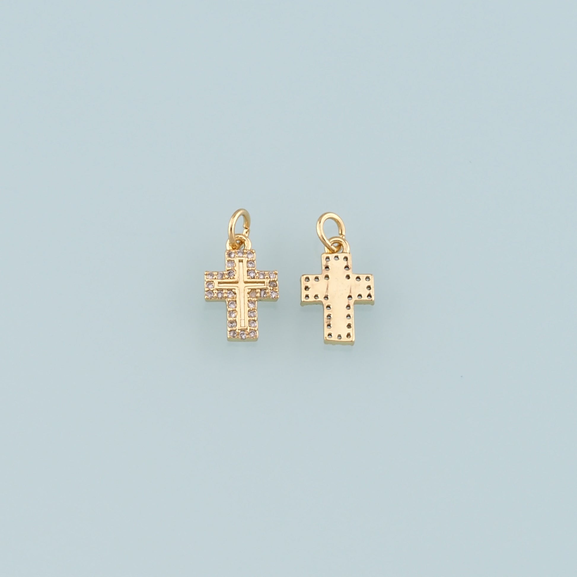 Gold Cross Charms,18K Gold Filled Cross Pendant,CZ Micro Pave Religion Charm Bracelet Necklace for DIY Jewelry Making Supply