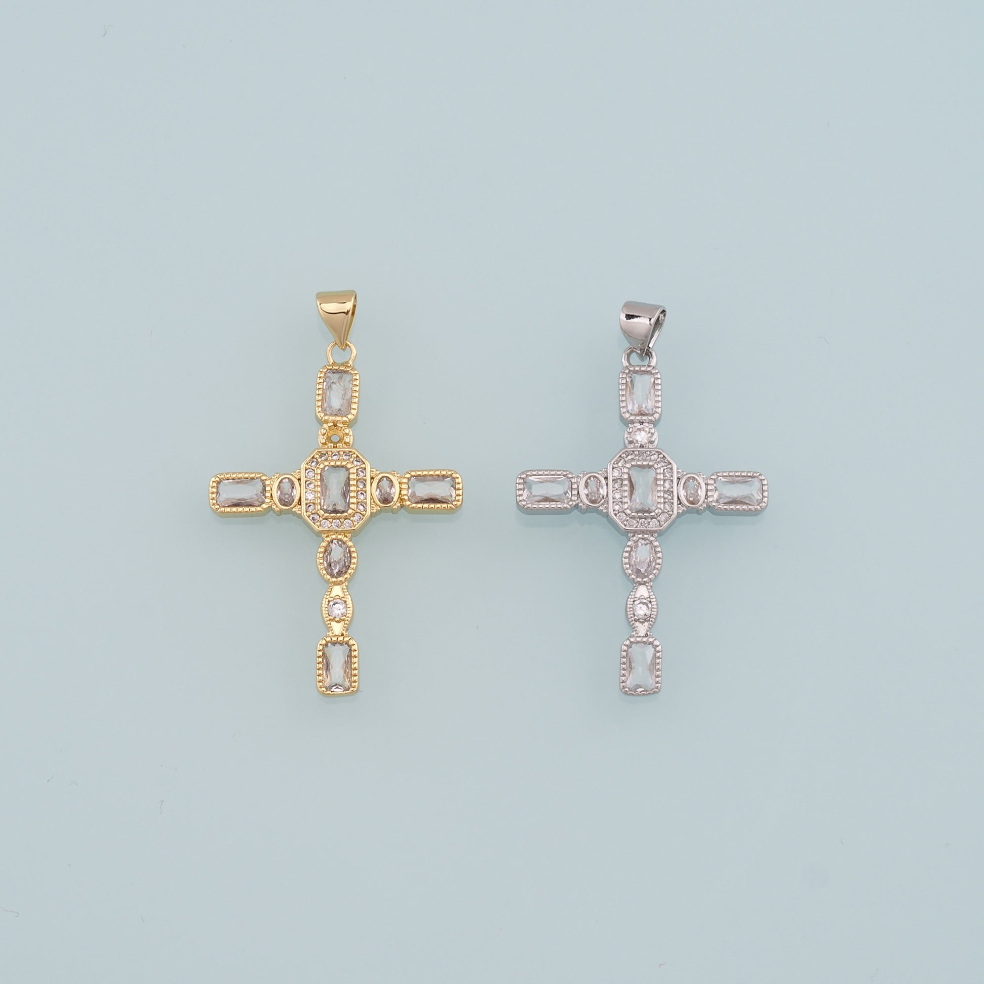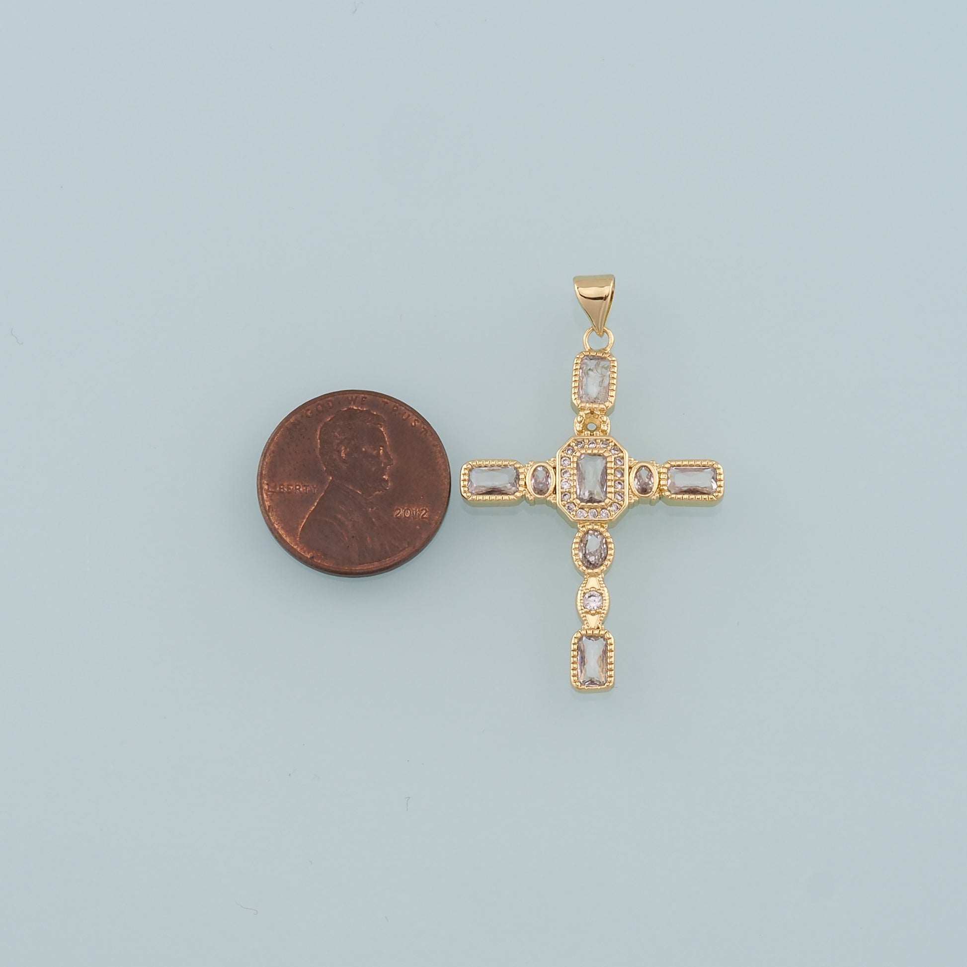 Gold Cross Charms,18K Gold Filled Cross Pendant,CZ Micro Pave Religion Charm Bracelet Necklace for DIY Jewelry Making Supply