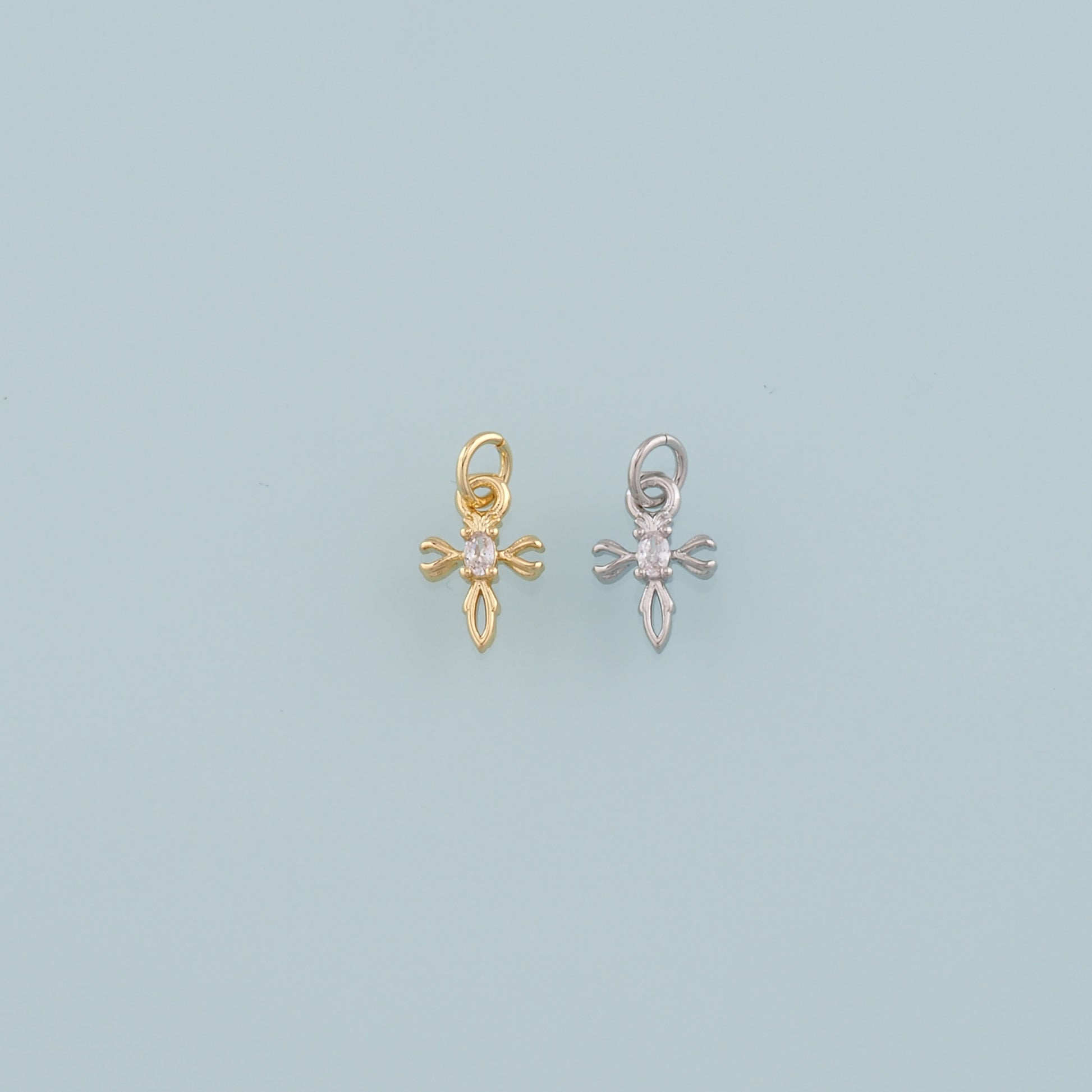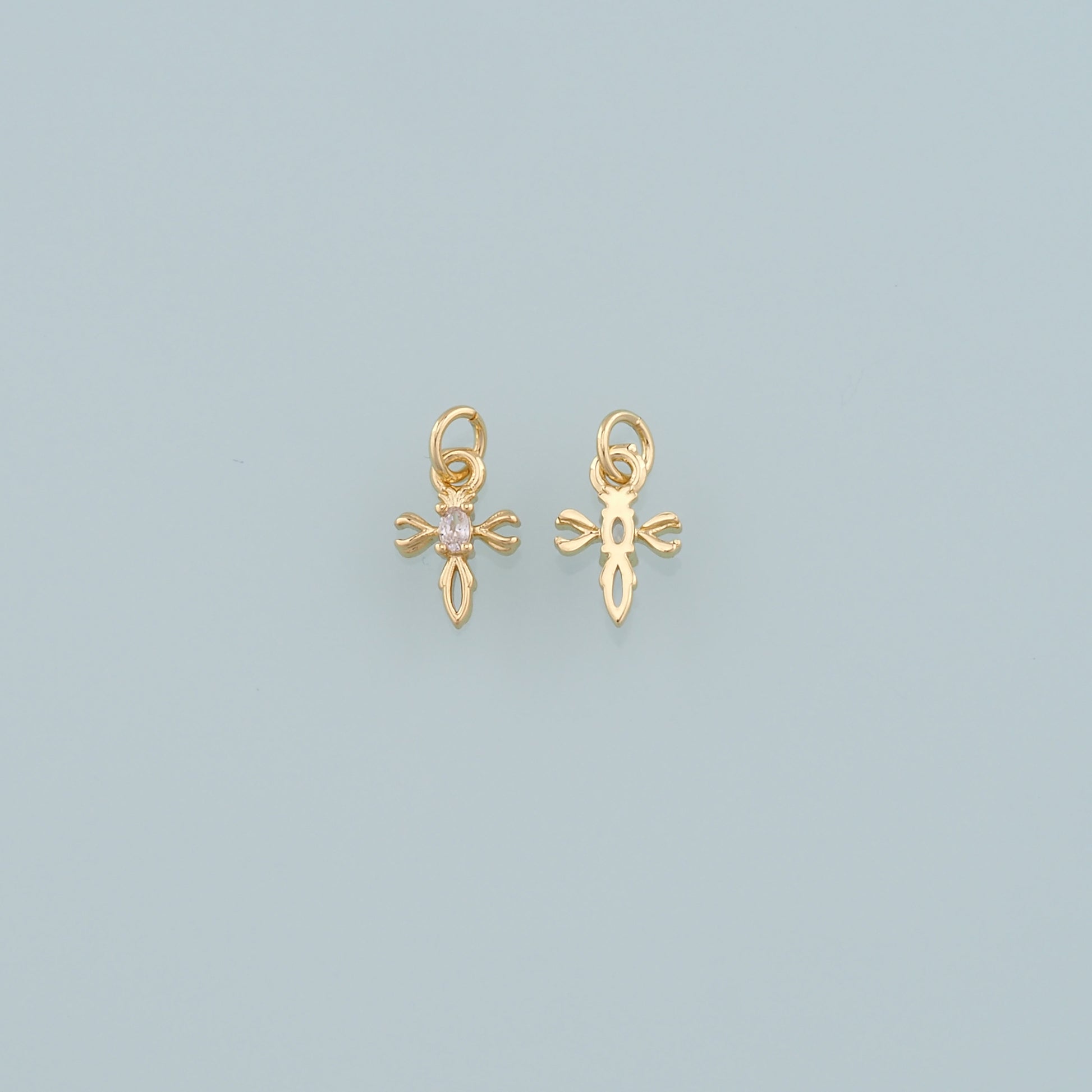 Gold Cross Charms,18K Gold Filled Cross Pendant,CZ Micro Pave Religion Charm Bracelet Necklace for DIY Jewelry Making Supply