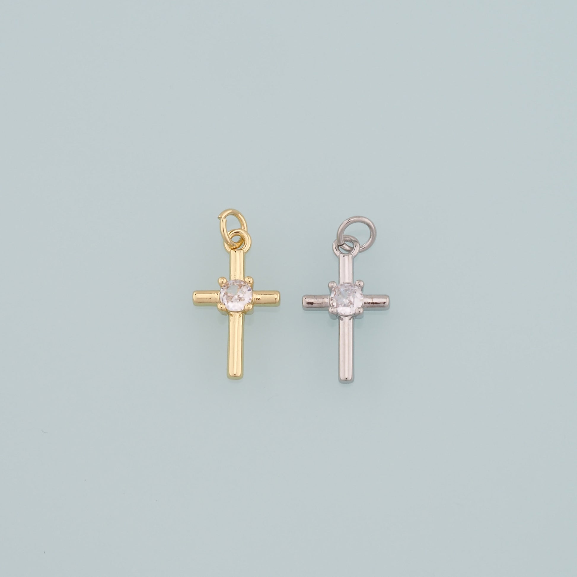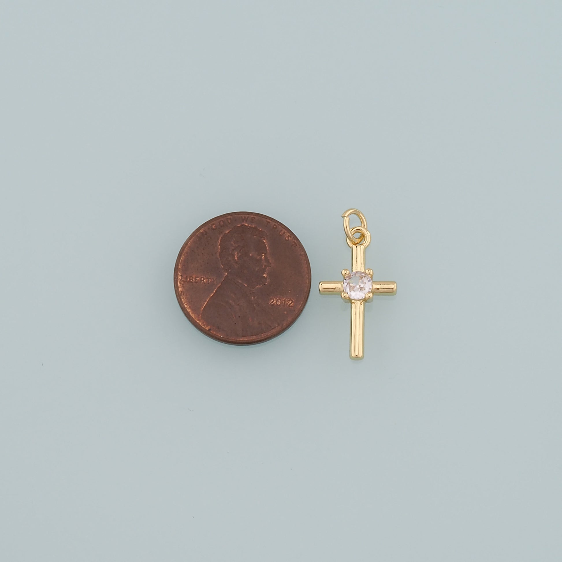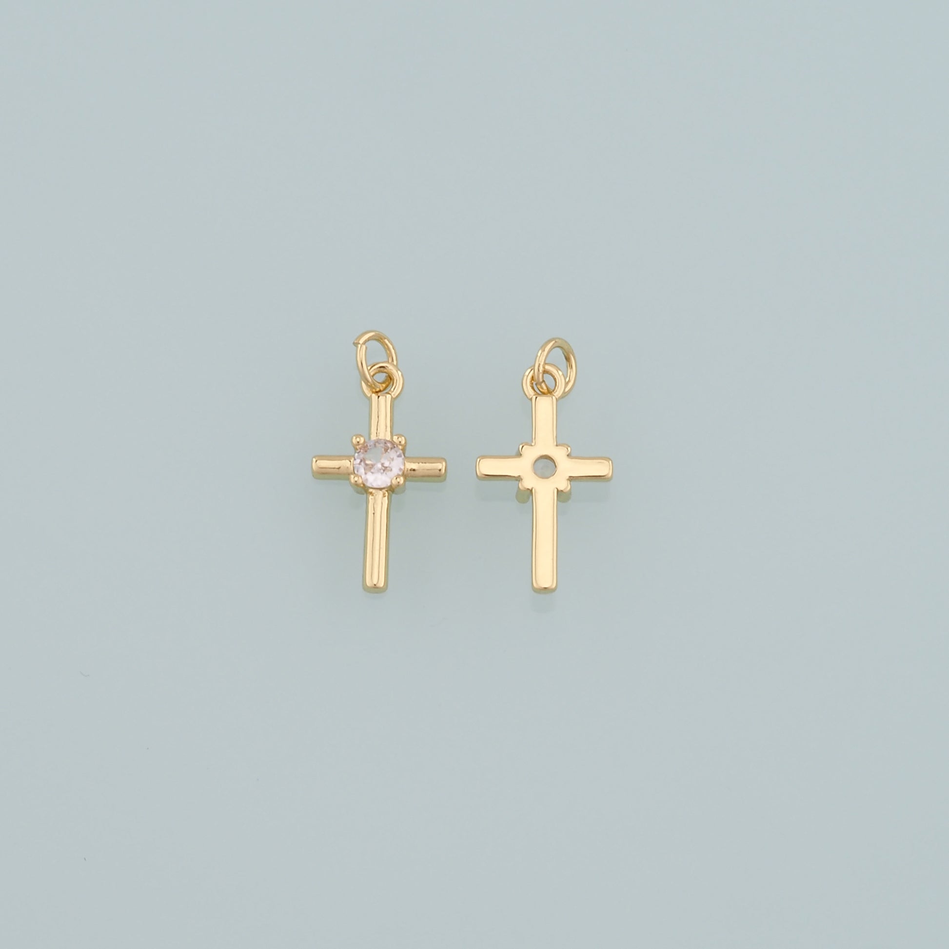 Gold Cross Charms,18K Gold Filled Cross Pendant,CZ Micro Pave Religion Charm Bracelet Necklace for DIY Jewelry Making Supply