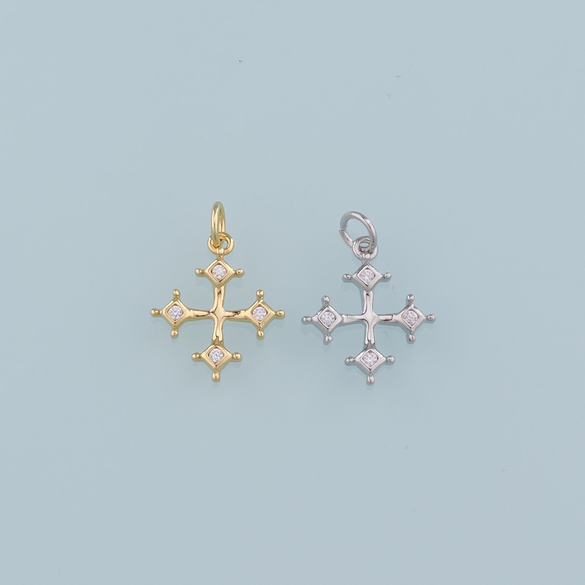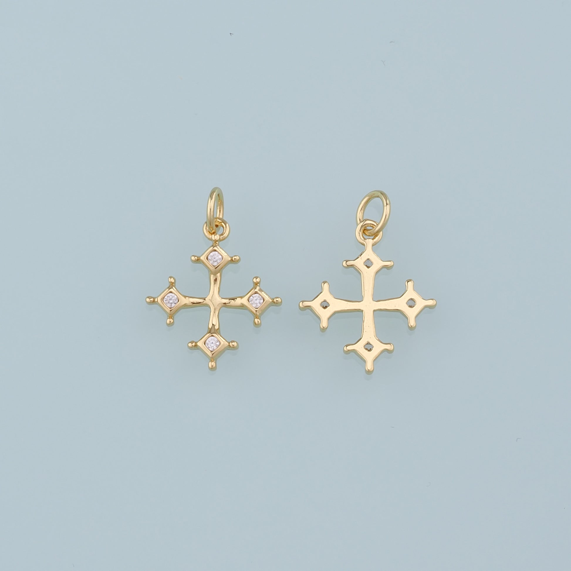 Gold Cross Charms,18K Gold Filled Cross Pendant,CZ Religion Charm Bracelet Necklace for DIY Jewelry Making Supply